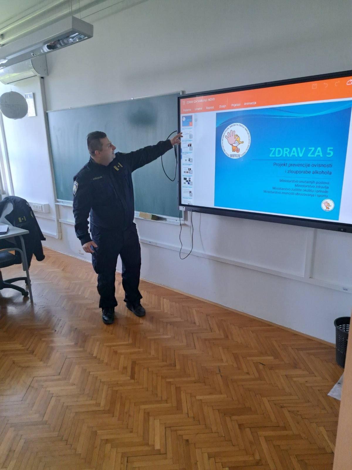 U sklopu projekta ,,Zdrav za 5 - prevencija ovisnosti i zloporabe alkohola", policijski službenik Zdravko Matičević iz PU Požeško - slavonske, održao je učenicima 8. razreda predavanje o toj temi.