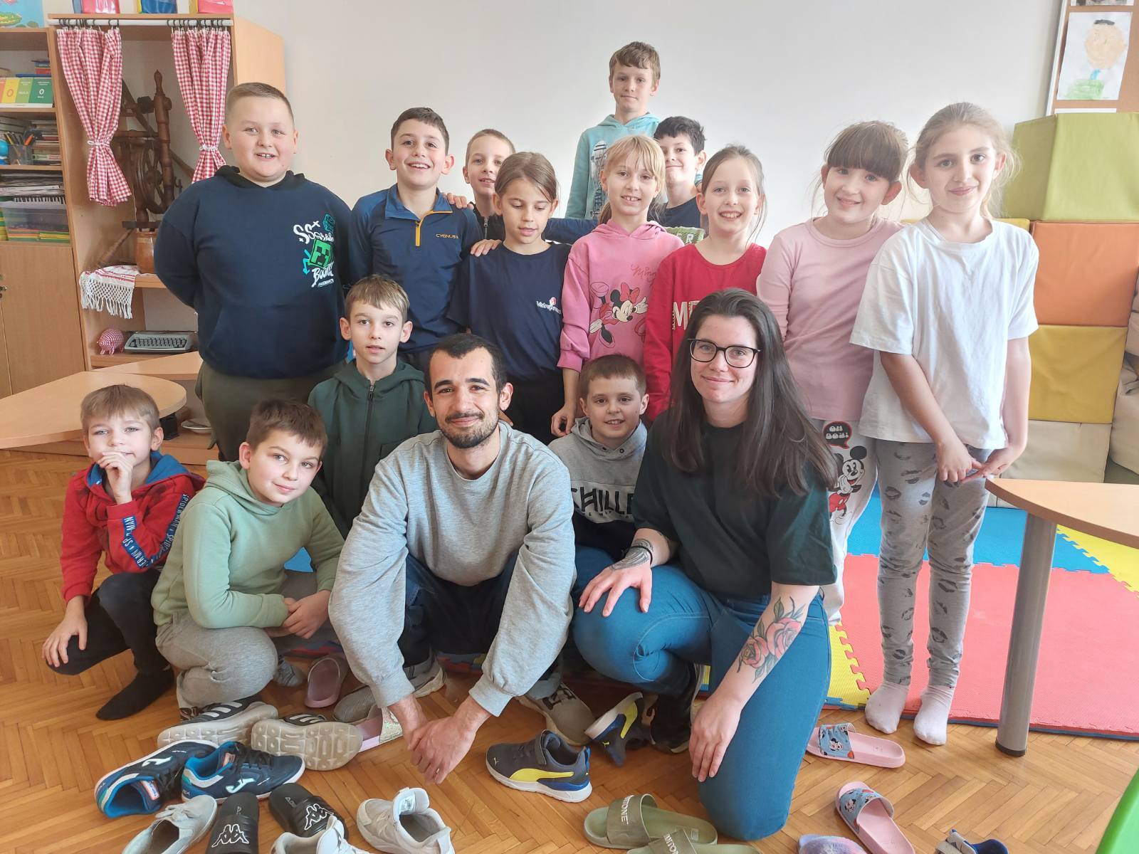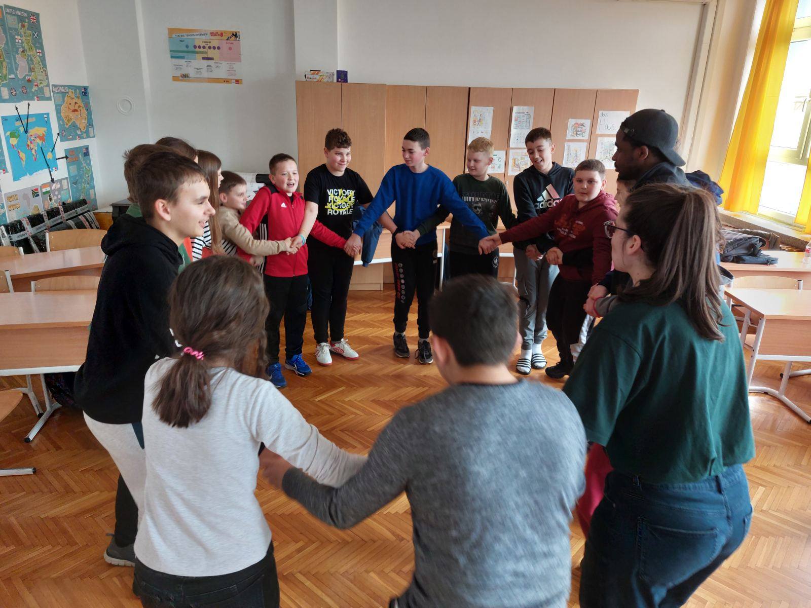 Na satu engleskog jezika učenici od 1.r. do 6.r. sudjelovali su u radionicama volontera iz Eko Centra Latinovac. Volonteri dolaze iz Francuske, Španjolske i Nigerije. Učenici su se zabavili te naučili nešto novo.
