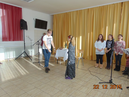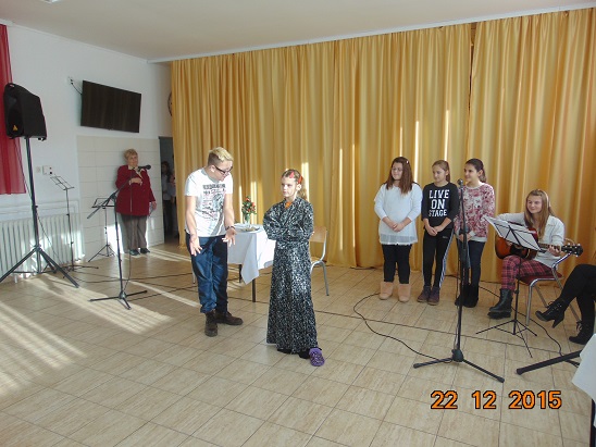 Nastavljajući dugogodišnju uspješnu suradnju s Domom za odrasle osobe u Ljeskovici i ove godine smo se rado odazvali pozivu ravnateljice gđe Rade Matoš da sudjelujemo u Božićnoj priredbi. Kraći igrokaz o Badnjaku u jednoj obitelji napisala je pedagoginja, a bračni par su odlično odglumili Claudia Pamer i Ivan Nekić. Poseban ,,štih,, je dala vokalna izvedba poznatih uspješnica koje su otpjevale učenice Dora Kavicki, Maja Stanković i Iva Vidmar. Naravno, uz izvrsnu gitarističku pratnje učenice Irene Poje, gđe Monike Lukas i gospodina Roberta Vojvodića. Članovi Tamburaškog orkestra predstavili su se spletom božićnih pjesama. Kraći kulturno-zabavni program priredili su i sami korisnici uz pomoć svojih radnih terapeuta.