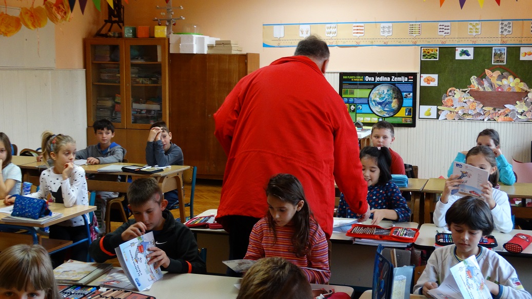 U posjeti našoj školi bio je gospodin Marijan Babić iz Auto kluba Požega. Povod je bio darivanje učenika razredne nastave edukativnim bojankama, slikovnicama, letcima, vrećicama za papuće i reflektirajućim ovratnicima (svaki razred dobio je ponešto od toga). Učenici su mu veselo zahvalaili uz opećanje kako će svakodnevno biti pažljivi sudionici u prometu.