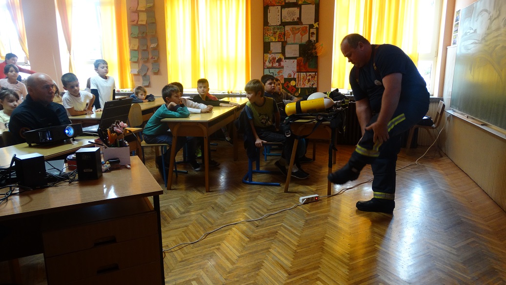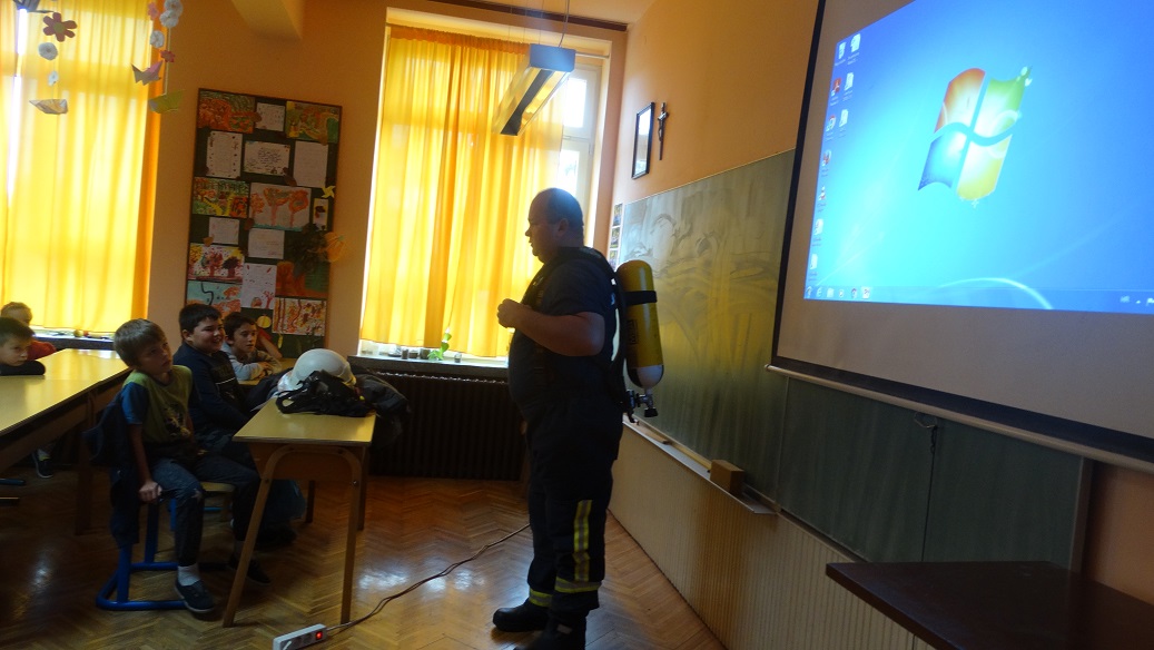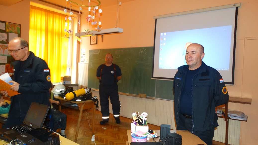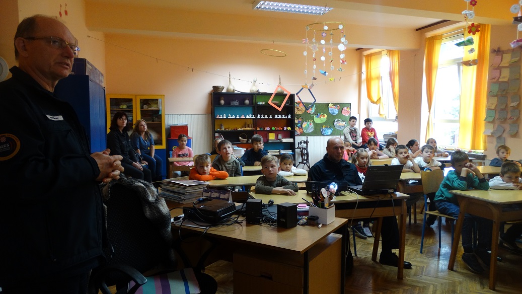 Svaka škola ima obvezu surađivati i organizirati predavanja djelatnika Državne uprave za zaštitu i spašavanje, odnosno Centra za uzbunjivanje i izvješćivanje 112. Suradnja naše škole i DUZZS podružnice u Požegi traje već nekoliko godina. Obvezno sudjelujemo u njihovim likovnim i literarnim natječajima koje raspisuju svake godine i često naši učenici osvajaju i nagrade. Kako se ponašati u slučaju izbijanja požara, što ne smijemo činiti kako ne bi izazvali požar, koga pozvati u tom slučaju i još puno toga zanimljivog i poučnog učenici su mogli čuti tijekom predavanja koje su održali gospodin Antun Širac i gospodin Damir Samardžija. Uz njih je predavanju nazočio i zaposlenik Javne vatrogasne postrojbe Požeško - slavonske županije gospodin Ivan Kukić koji je učenicima pokazao dio vatrogasne opreme koja se koristi u gašenju požara. Na kraju predavanja podijelili su edukativne slikovnice, letke i rasporede sati našim učenicima koji su ih zajedno sa svojim učiteljicama Gordanom Ereiz i Ivanom Razumović pažljivo slušali.
