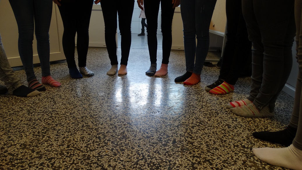 21. 3. 2018. godine učenici osmog razreda i nekolicina drugih učenika s učiteljima obilježili su DAN OSOBA S DOWNOVIM SINDROMOM šarenim i neparnim čarapama.