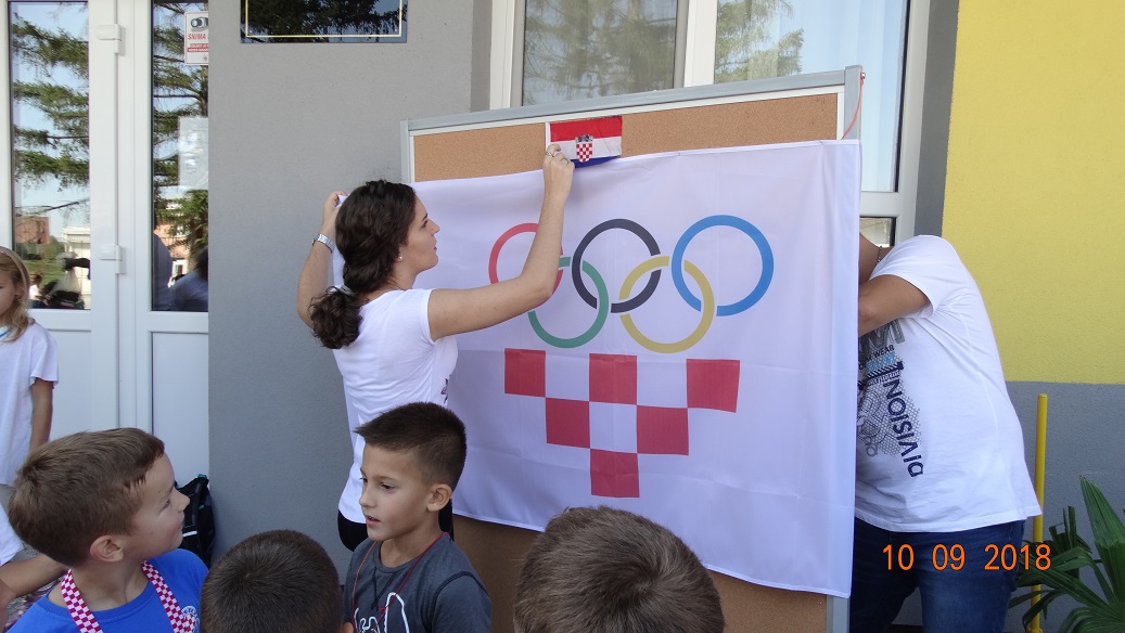 Čast da skinu olimpijsku zastavu imali su učiteljica hrvatskog jezika Mihaela Kolar i vjeroučitelj Krunoslav Pečur.