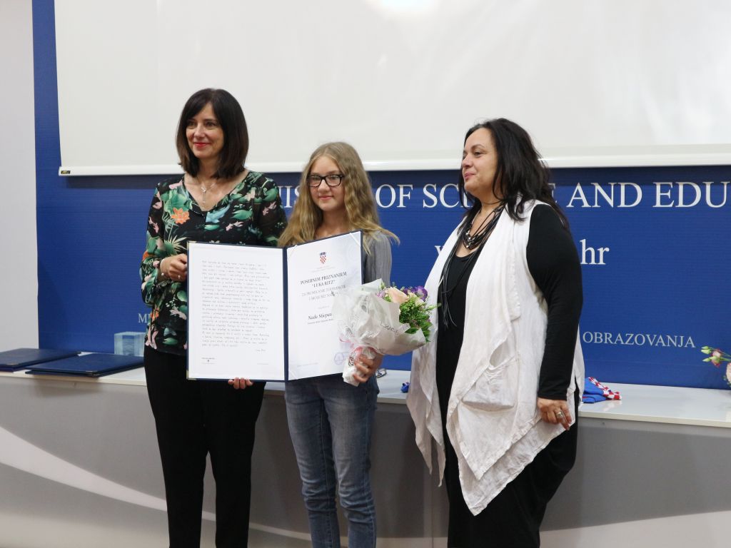 S nestrpljenjem smo čekali rezultate ovogodišnjeg natječaja. I kada je u OŠ Stjepana Radića Čaglin došao dopis kako se učenici Nadi Stjepanović dodjeljuje Posebno priznanje i stipendija u iznosu od 12.000,00 kuna za daljnje školovanje., sreći i ponosu nije bilo kraja. Uz tu vrijednu nagradu našoj učenici i škola će dobiti 10.000,00 kuna za nastavak edukacija i rada na prevenciji suzbijanja nasilja, netolerancije i netrpeljivosti prema drugima i drugačijima od sebe. Istu nagradu Škola je dobila i prošle godine.