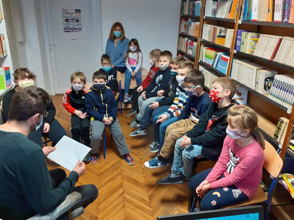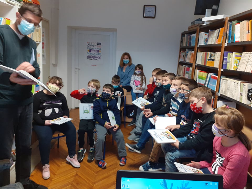 Jutros su naši prvašići sa svojom učiteljicom Gordanom Ereiz prvi puta posjetili školsku knjižnicu. Bili su jako znatiželjni, imali brojna pitanja, puno toga su znali od prije, ali naučili su i ponešto novo. Možda bi najbitnije bilo izdvojiti da su naučili da je knjižnica namijenjena svim učenicima i zaposlenicima škole te da je ona mjesto učenja i znanja, ali i druženja. S knjižničarem Emirom Džaferovićem razgovarali su o slikovnicama, uživali su u priči o tri kunića, koju su kasnije ilustrirali, te su posudili svoju prvu knjigu - Pale sam na svijetu.