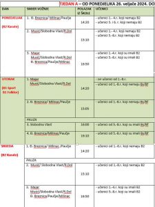 Rasporedi se smjenjuju. Ovaj tjedan vozi po rasporedu B. Slijedeći po rasporedu A i tako u krug.
