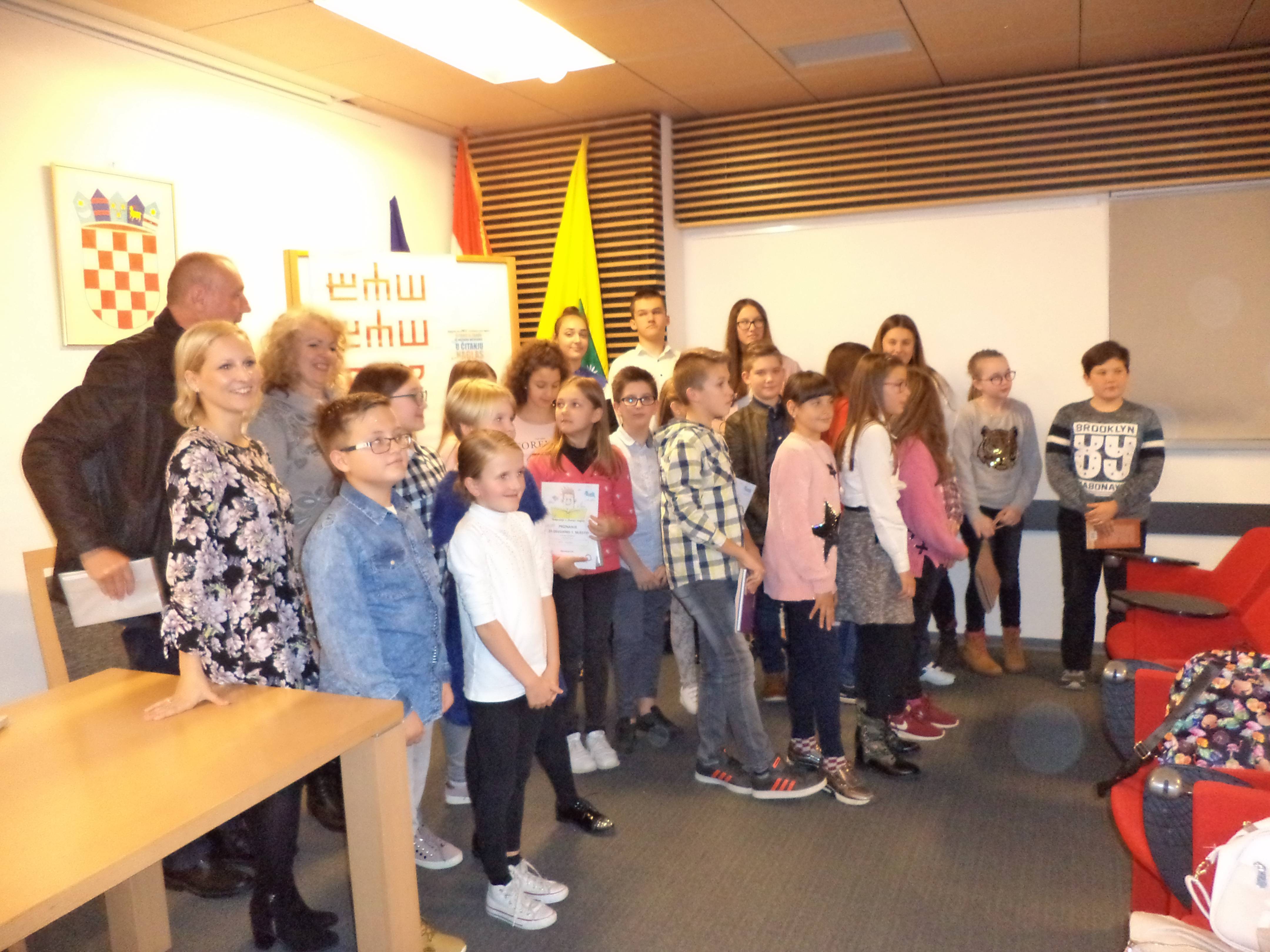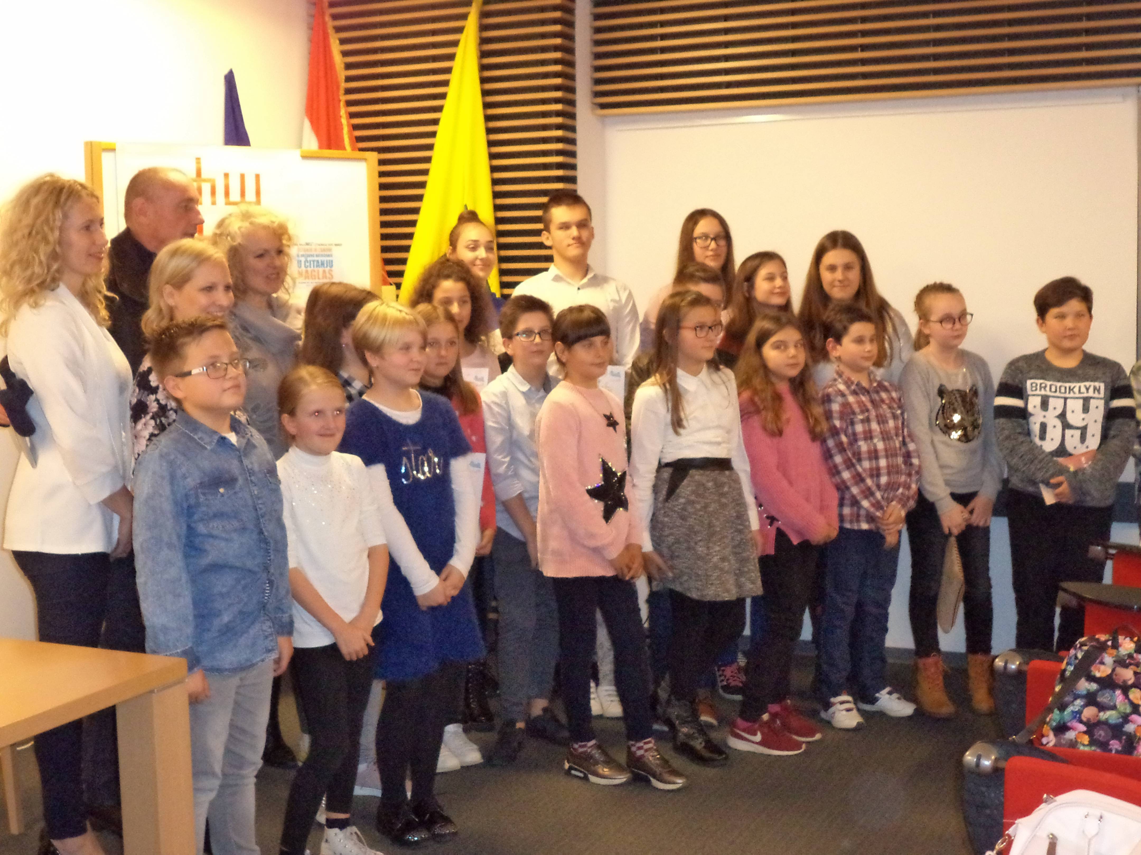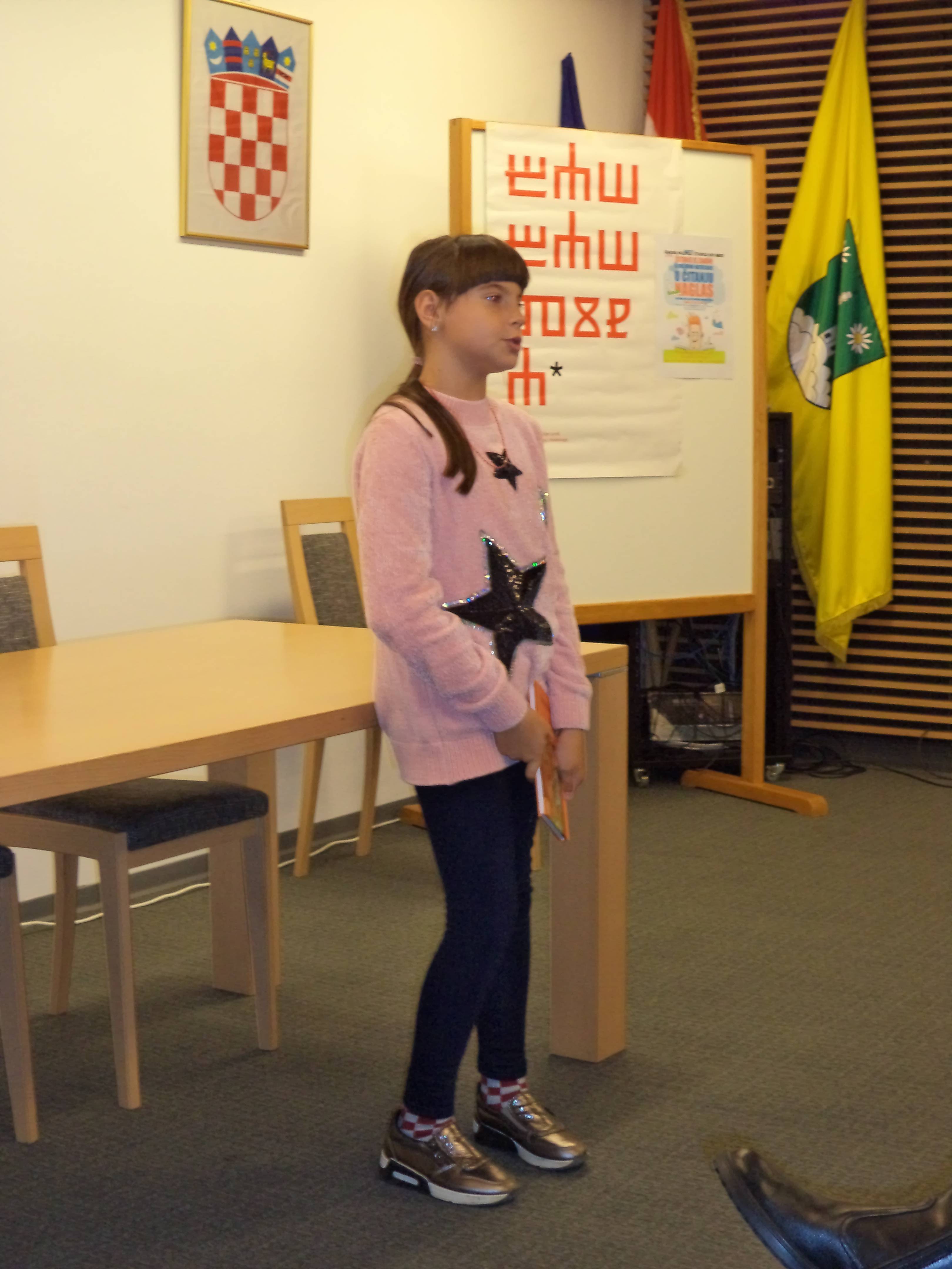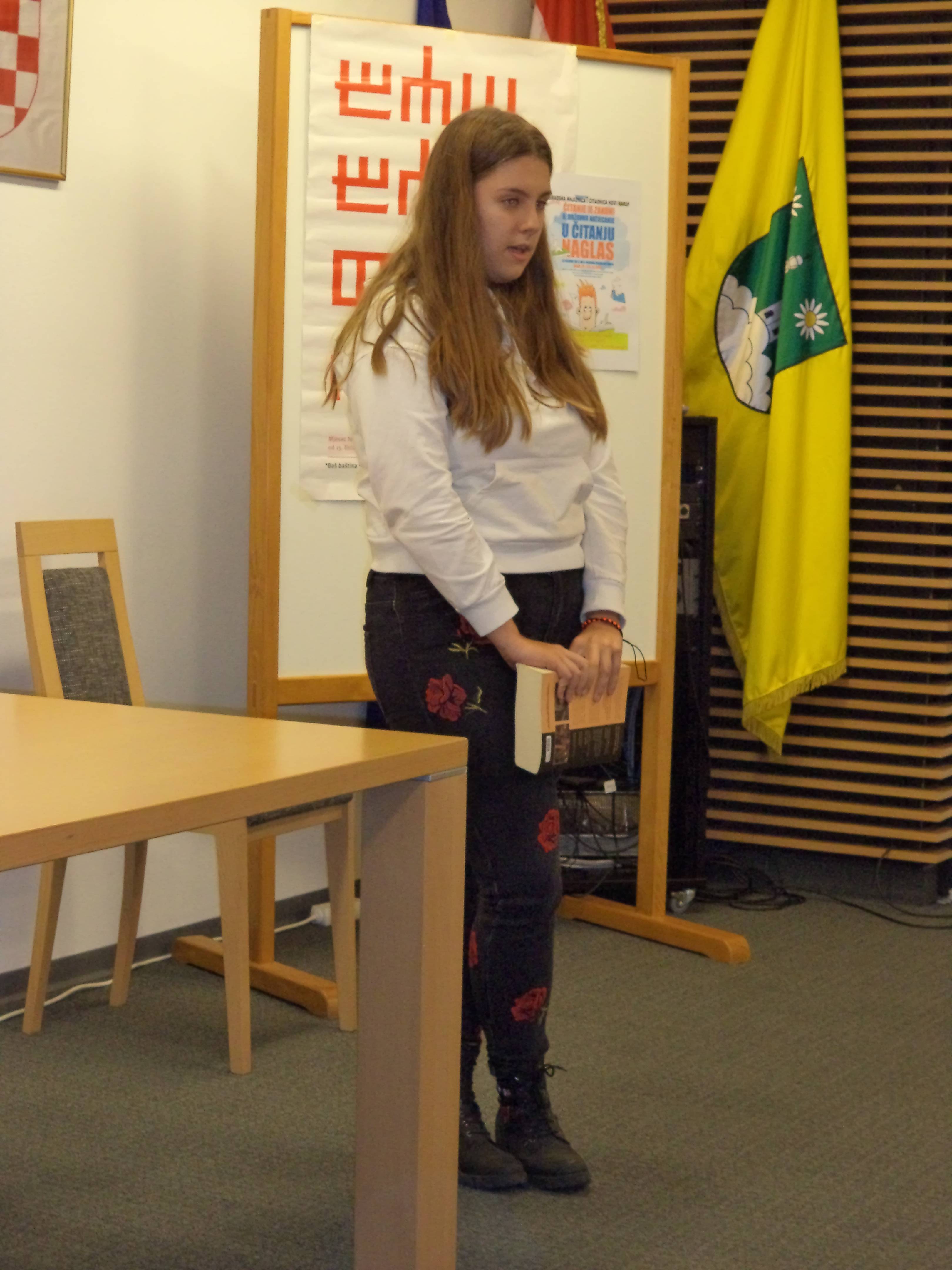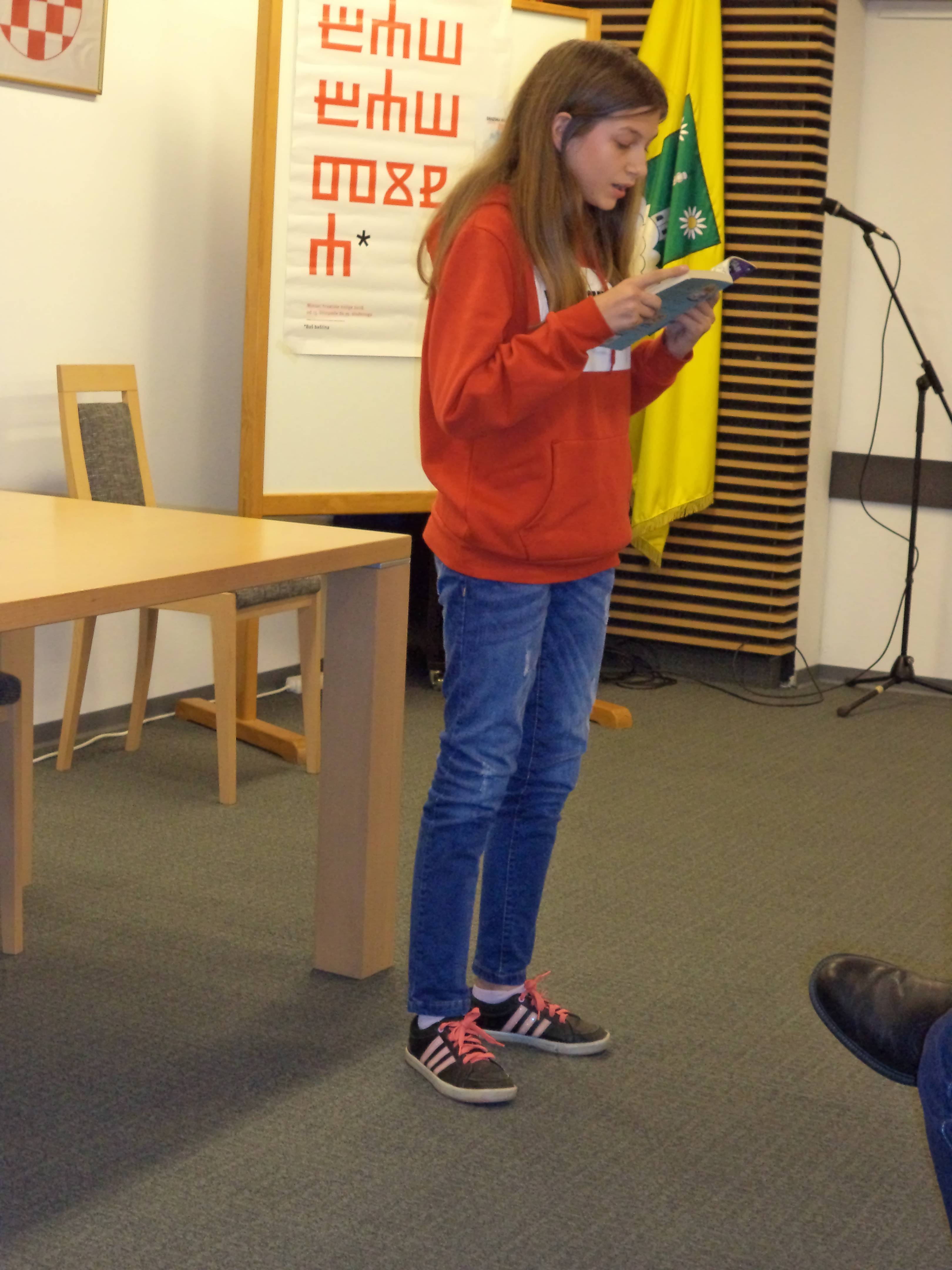 Lorena je pročitala ulomak iz knjige Šuma Striborova, Adrian ulomak iz knjige Mama je kriva za sve, Lina je izabrala Kradljivicu knjiga, a Hana Kapetana Gaćešu. I što reći! Bili su izvrsni, a nastup i scena odlični. Sve pohvale i čestitke.