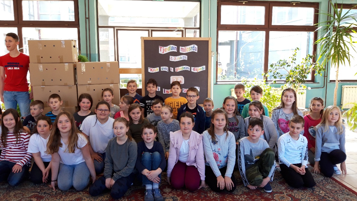 Učenici i djelatnici OŠ Trnovec u Tjednu milosrđa, 25. – 29. ožujka 2019. godine, za potrebe korisnika socijalne samoposluge „Kruh sv. Antuna“ u Varaždinu, prikupljali su živežne namirnice i higijenske potrepštine.