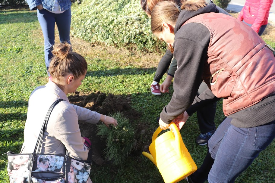 Ni mi, djelatnici Osnovne školeTrnovec, ne želimo biti "panjevi" pa smo tako u subotu 26.listopda, dan nakon 90.rođendana škole i velike svečanosti, u školskom dvorištu zasadili 9 hrasta lužnjaka i kitnjaka i 4 sadnice bora - školi u čast. Posao smo započeli i završili našom eko himnom.