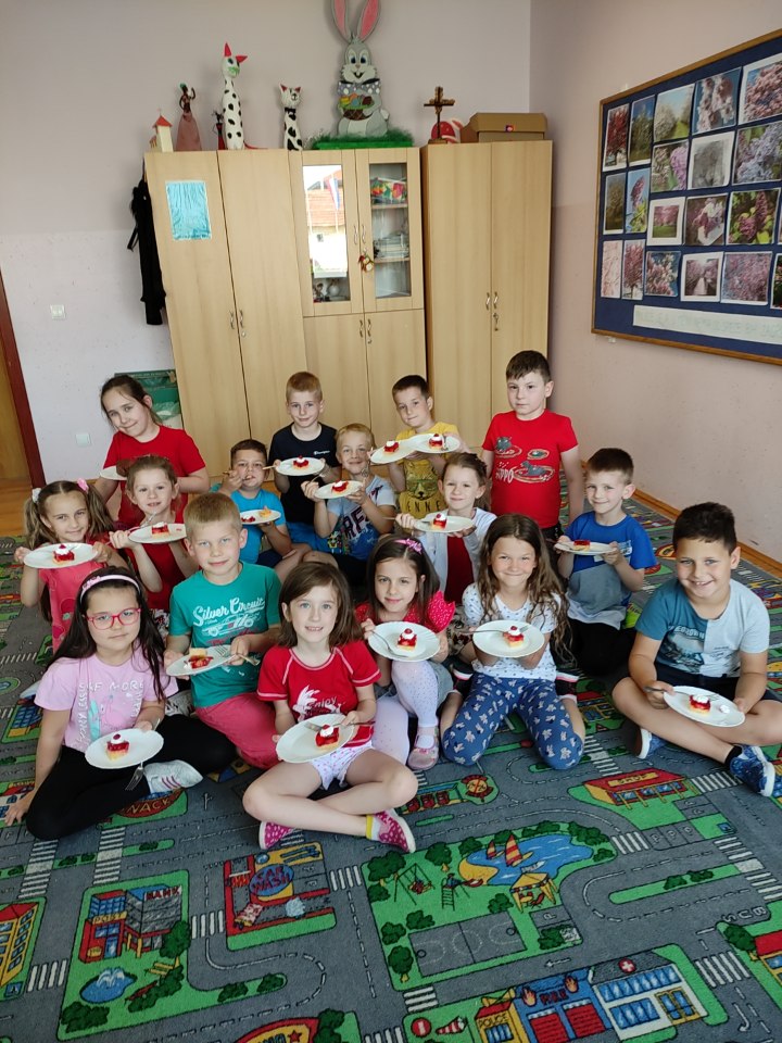 Bilo je tu i pekmeza od jagoda, slatkih sokova, ali i prefinih kolača od jagoda koje su ispekle njihove vrijedne mame i bake,a đaci su ih pojeli s posebnom slašću.