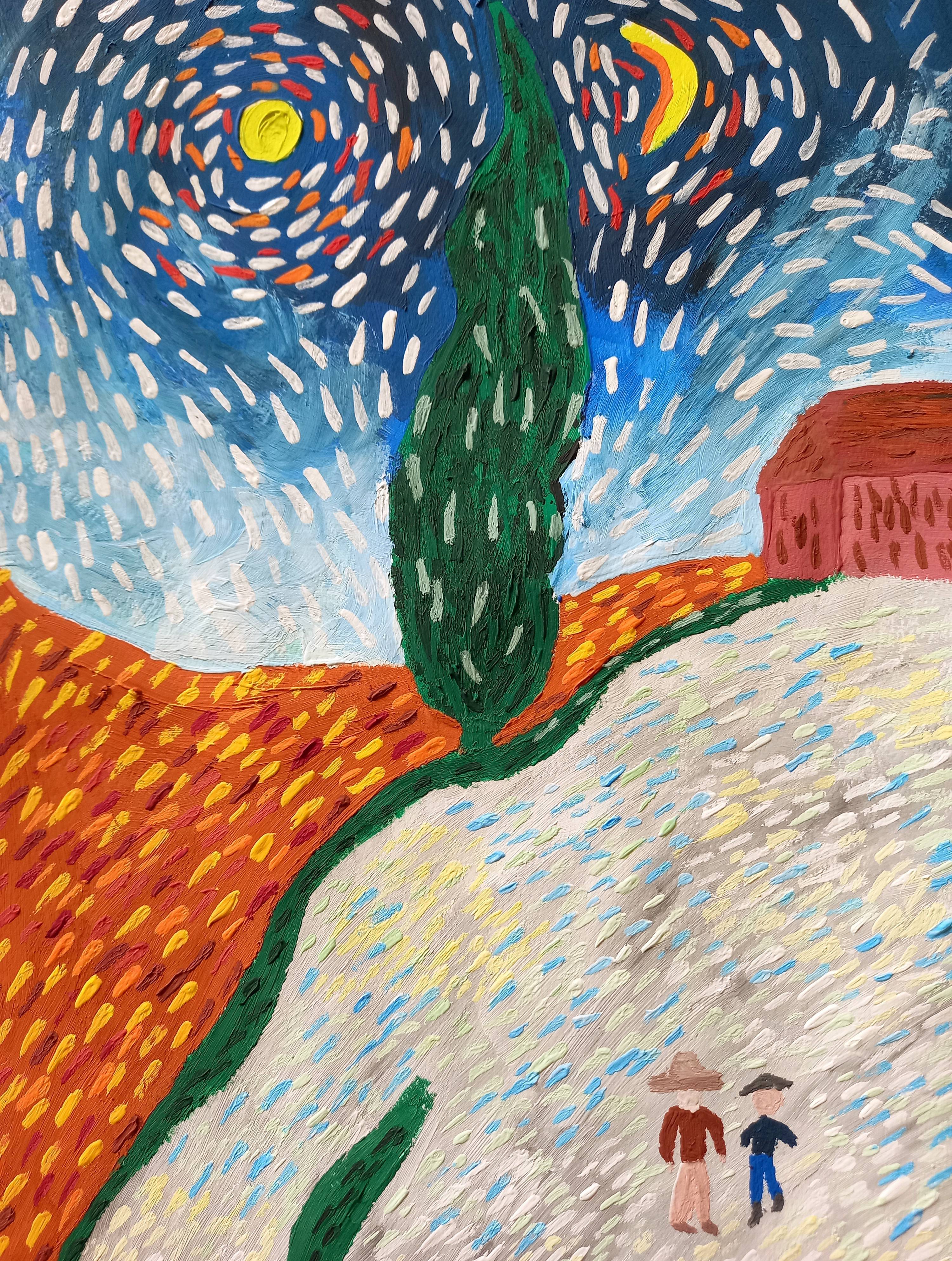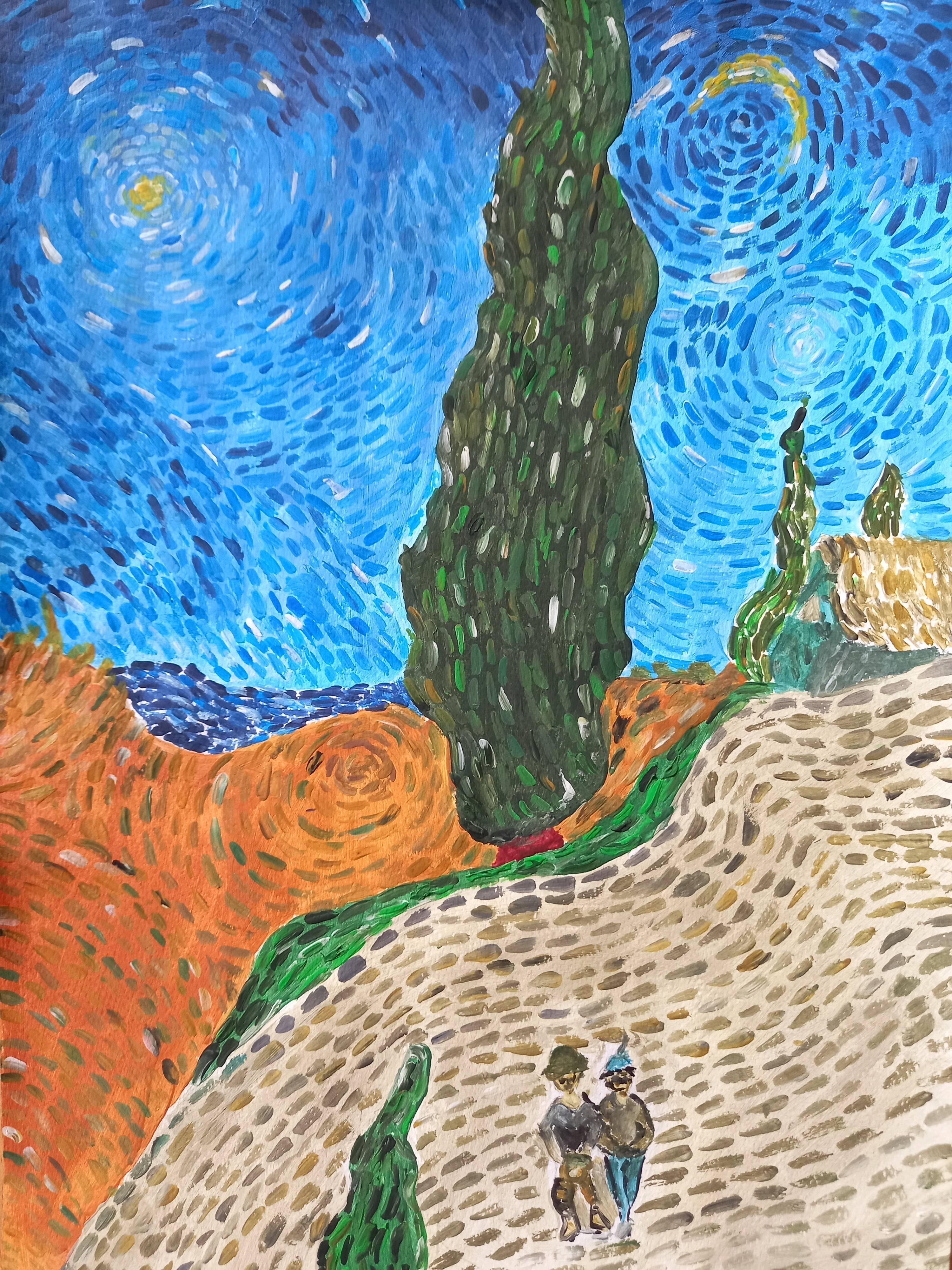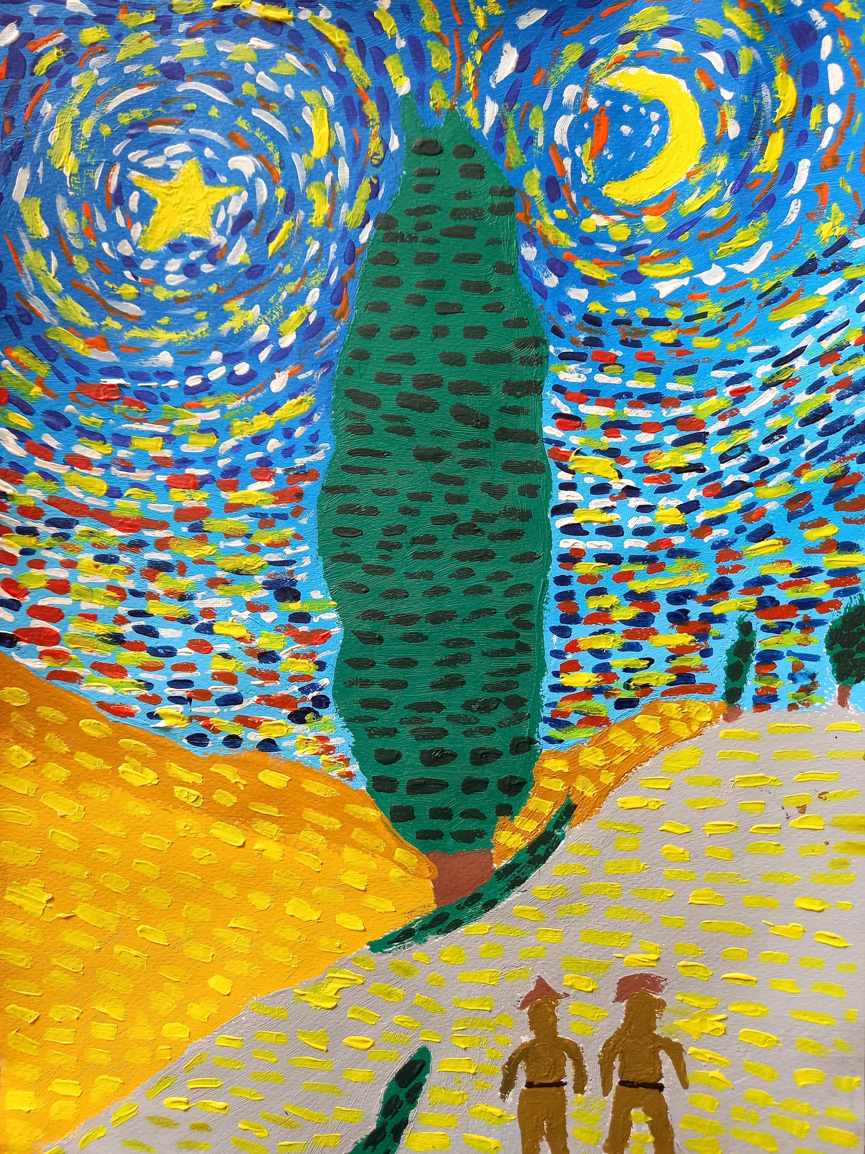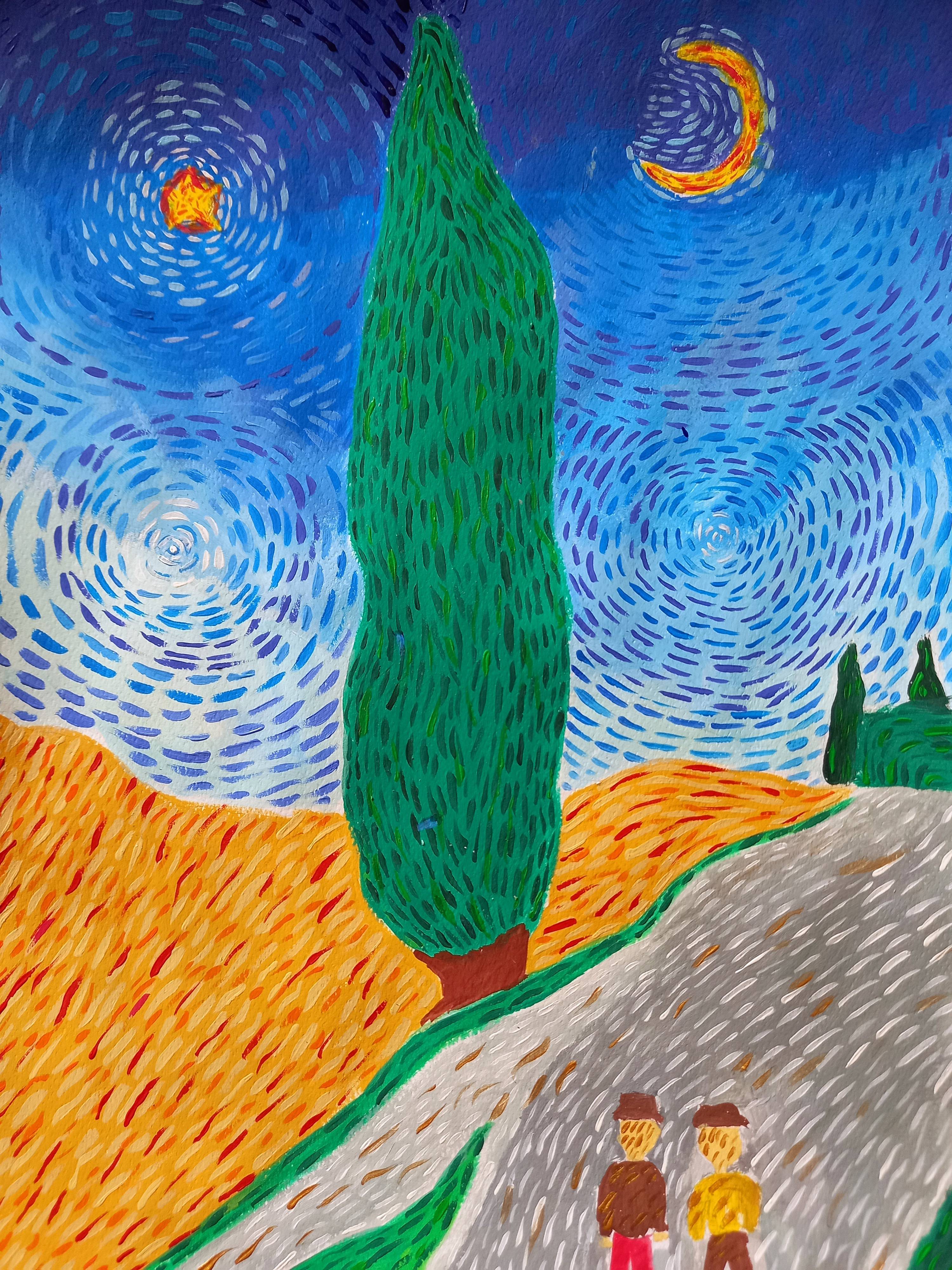 Učenici 7.a razreda na satu Likovne kulture u tehnici: tempera