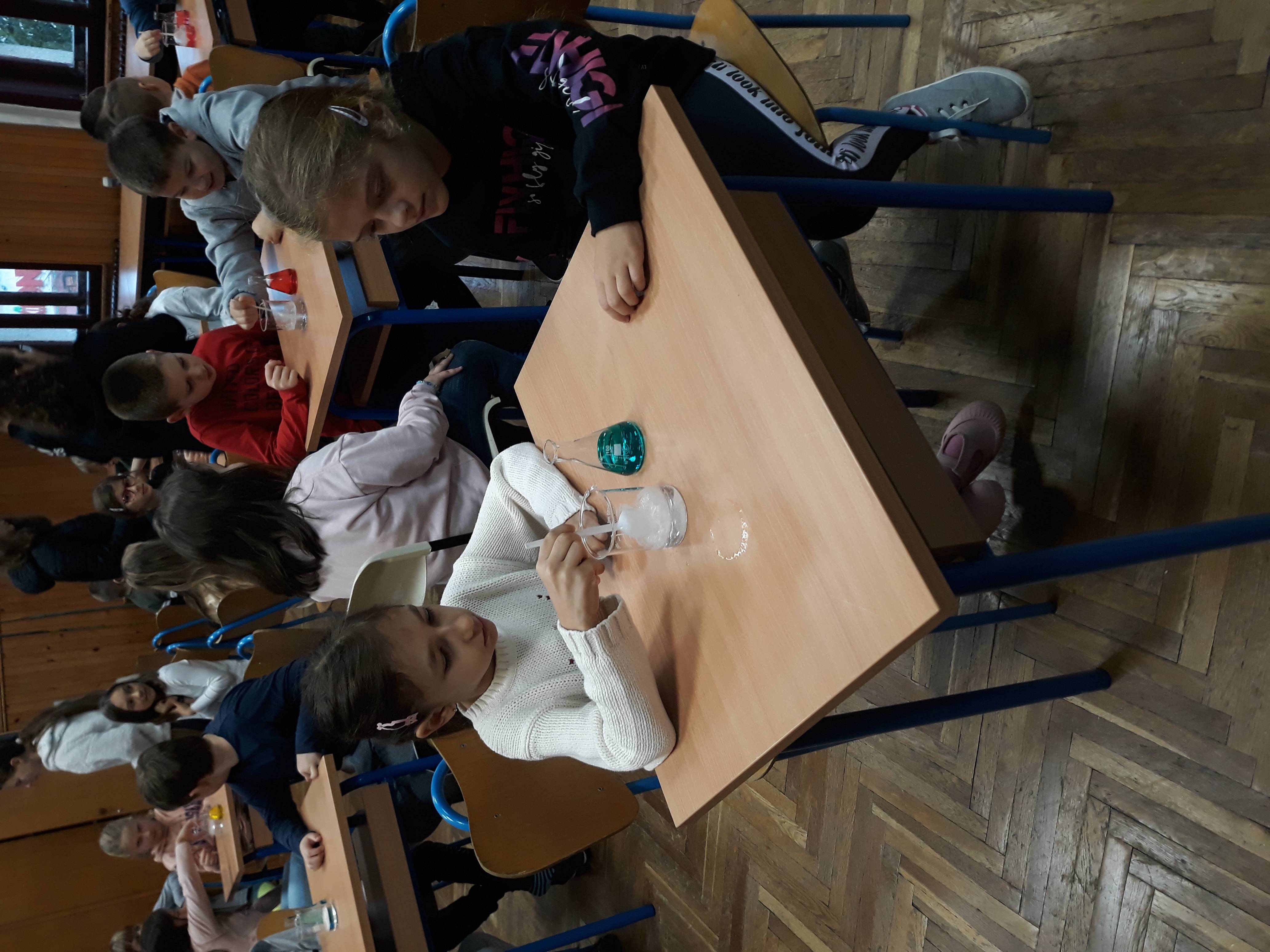 Učiteljica Mirjana Lončar upoznala je učenike s pravilima ponašanja prilikom izvođenja pokusa, s laboratorijskim posuđem koje se koristi u izvođenju pokusa, ali i izvela nekoliko demonstracijskih pokusa kroz koje su učenici upoznali svojstva vode.