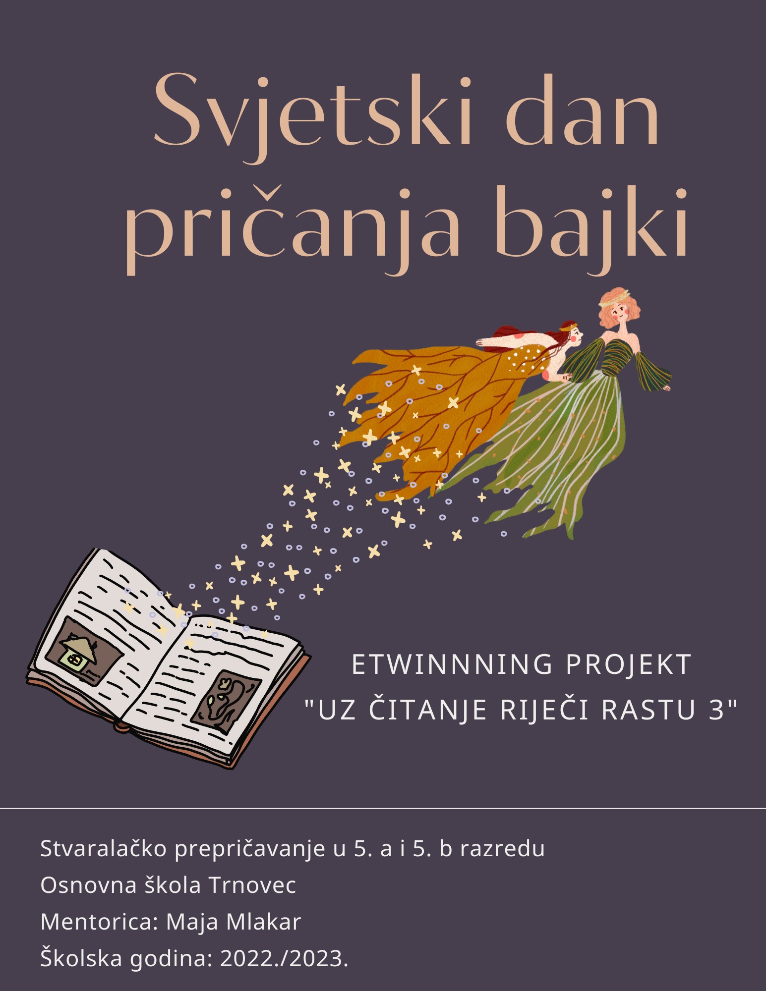 Učenici 5. razreda Osnovne škole Trnovec obilježili su Svjetski dan pričanja bajki na satu Hrvatskog jezika. Najprije su se prisjetili bajke Zlatna jabuka, a zatim su tu bajku prepričavali. Uz sažeto prepričavanje, naučili su i stvaralački prepričavati pa su dodavali likove, nove događaje, mijenjali osobine likovima, promijenili su mjesto i vrijeme radnje, ali i osmislili potpuno novi završetak. Učenici su ispričali mnoge poznate bajke (Crvenkapica, Pepeljuga, Tri praščića, Ružno pače, Bajka i ribaru i ribici…), a neke od njih možete pročitati na sljedećoj poveznici: