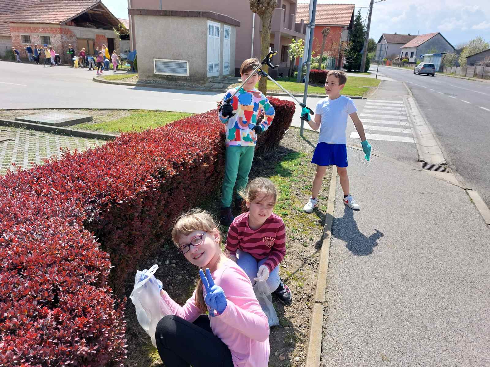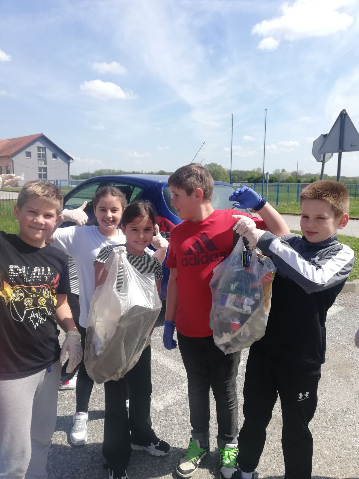 Učenici su zasukali rukave te naoružani rukavicama, vrećama, štapovima i grabljama krenuli su u akciju čišćenja. Prikupljeno smeće smo odložili u za to predviđene kontejnere, zadovoljni odrađenim jer i najmanji korak u očuvanju Zemlje je važan.