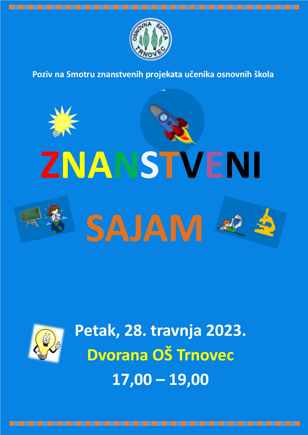 Osnovna škola Trnovec organizira 2. Znanstveni sajam za učenike osnovnih škola Varaždinske županije. Sajam će se održati 28.4.2023. s početkom u 17 sati, u sportskoj dvorani Osnovne škole Trnovec.
