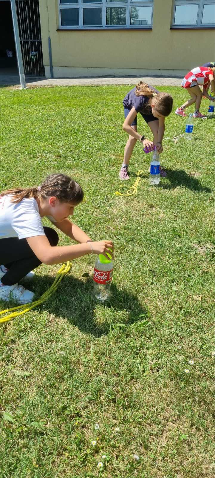 Svemu lijepom brzo dođe kraj pa je tako i naša nastavna godina, koja je bila ispunjena brojnim edukativnim i zabavnim aktivnostima, došla kraju. Svoje druženje završili smo natjecanjem u dječjim seoskim igrama u kojima su sudjelovale sve tri skupine produženog boravka. Učenici su bili ravnopravno podijeljeni u pet mješovitih skupina. Natjecali su se u pet starih seoskih igara. Tijekom prve igre pokazali su nam svoje umijeće skakanja u jutenim vrećama. Drugom igrom vježbali su spretnost i koncentraciju nošenjem loptice u žlici. U trećoj igri trebali su dobro surađivati sa svojim parom kako bi tenisku lopticu prenijeli držeći je glavama. Najzabavnija, ali i najzahtjevnija bila je igra „vožnja tački“. Igra koja je odlučivala o pobjedniku bila je posljednja. Učenici su trebali napuniti bocu od 2 litre vodom koju su od startne do ciljne linije prenosili u čaši. Cijelo vrijeme učenici su glasnim navijanjem bodrili jedni druge. Tijekom igara prevladavala je dobra, natjecateljska atmosfera. Posebno čestitamo pobjednicima, ali i zahvaljujemo svim učenicima produženog boravka na sudjelovanju te fair playu.