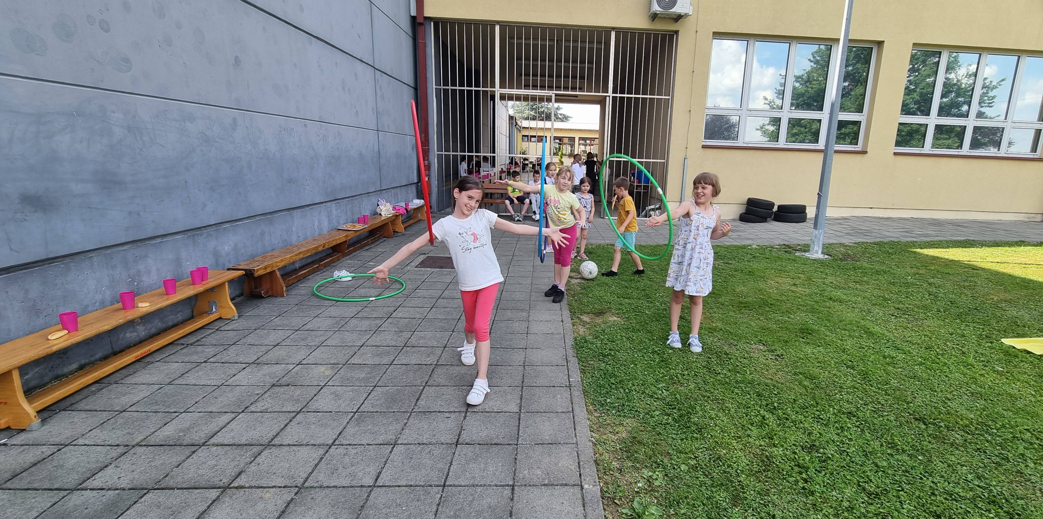 U sklopu eTwinning projekta „Škola je škola, a boravak je baš fora 4“ boravkaši su u petak 7. lipnja, ugostili učenike produženog boravka iz III. osnovne škole Varaždin. Druženje je otvorila ravnateljica kratkim pozdravom, a naši učenici s nekoliko recitacija. Potom je ravnateljica goste provela po školi i upoznala ih s najvažnijim školskim prostorijama. Natjecateljski dio susreta održao se u školskom dvorištu. Više od 80 učenika, pomiješanih u skupine, odigrali su dječje seoske igre. Okušali su se u skakanju u vrećama, nošenju loptica u žlici, kotrljanju auto gume, vožnji živih tački i štafetnoj igri pretakanja vode. Nakon seoskih igara svi su se učenici okrijepili vodom, sokićem, klipićima i grickalicama, a potom se družili na školskom igralištu. Svi su se lijepo zabavili i sklopili nova prijateljstva. Učenici i učiteljice s nestrpljenjem iščekuju uzvratni susret u III. OŠ Varaždin.