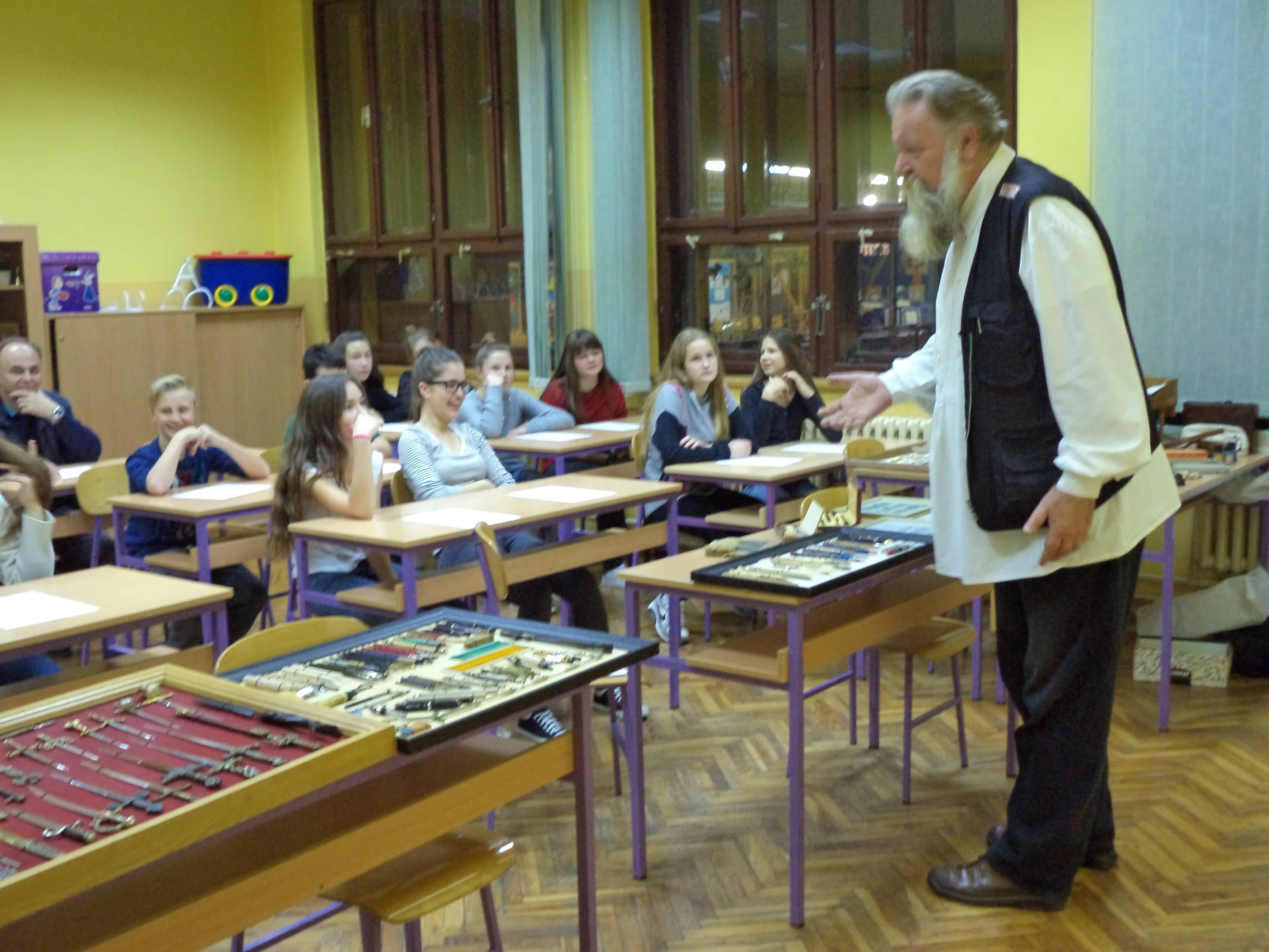 Učenici su potom sudjelovali u radionici Kaligrafsko pismo, koje je održao popularni varaždinski notar Krunoslav Čolo. Gospodin Čolo se godinama profesionalno bavi kaligrafijom i heraldikom te grafičkim dizajnom. Proučava nastanak pisma istražuje vrste pisaćeg pribora, a lijepim pismom ispisuje zahvalnice, diplome prema željama. Vrlo smo sretni što je našao vremena te zakoračio u našu školu.
