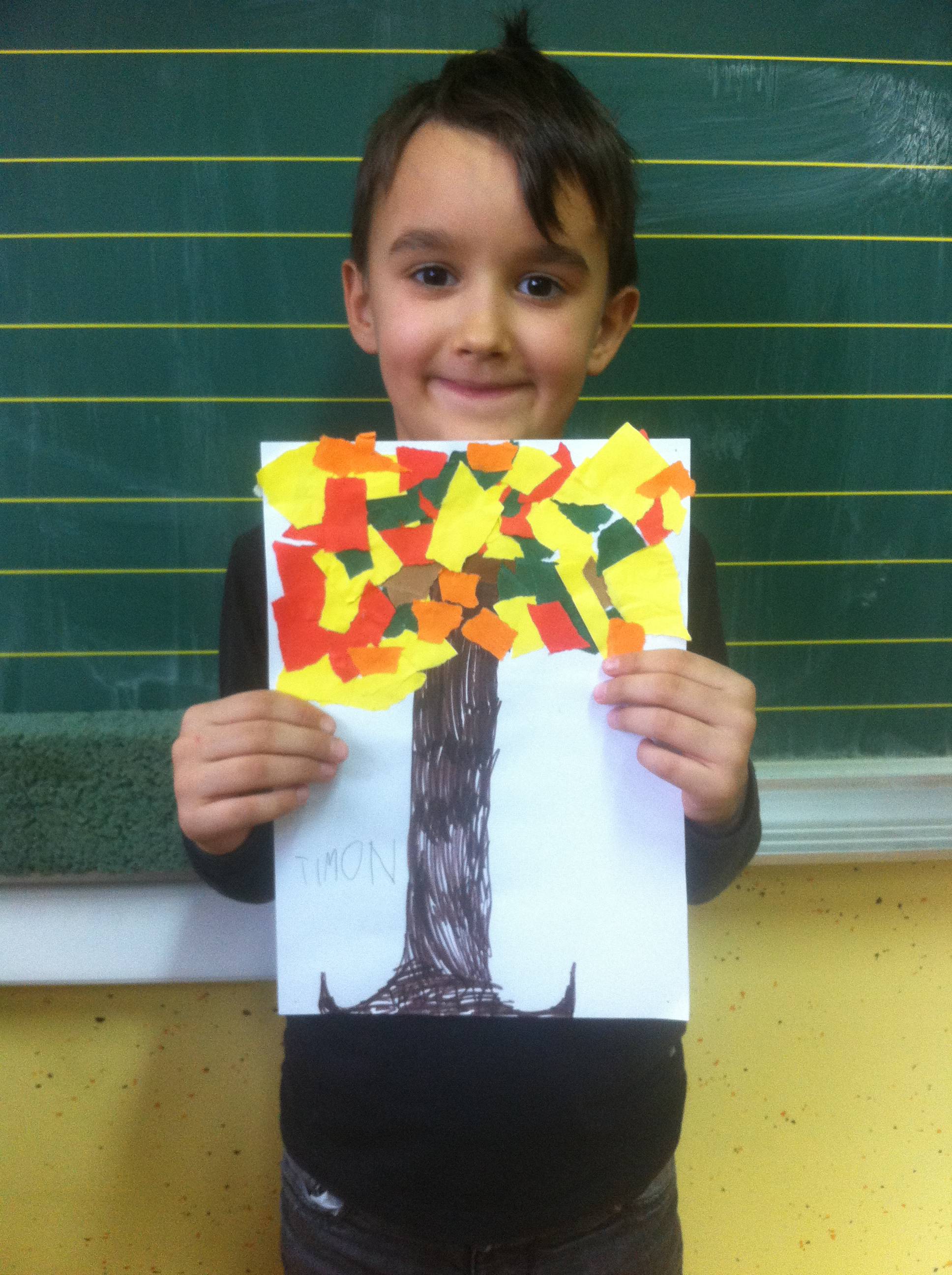 Jučer smo prošetali okolicom škole promatrajući krošnje jesenjeg drveća. Promatrali smo boje koje se pojavljuju na krošnjama drveća ujesen: žuta, narančasta, smeđa, crvena... Imenovali smo listopadno drveće koje poznajemo.