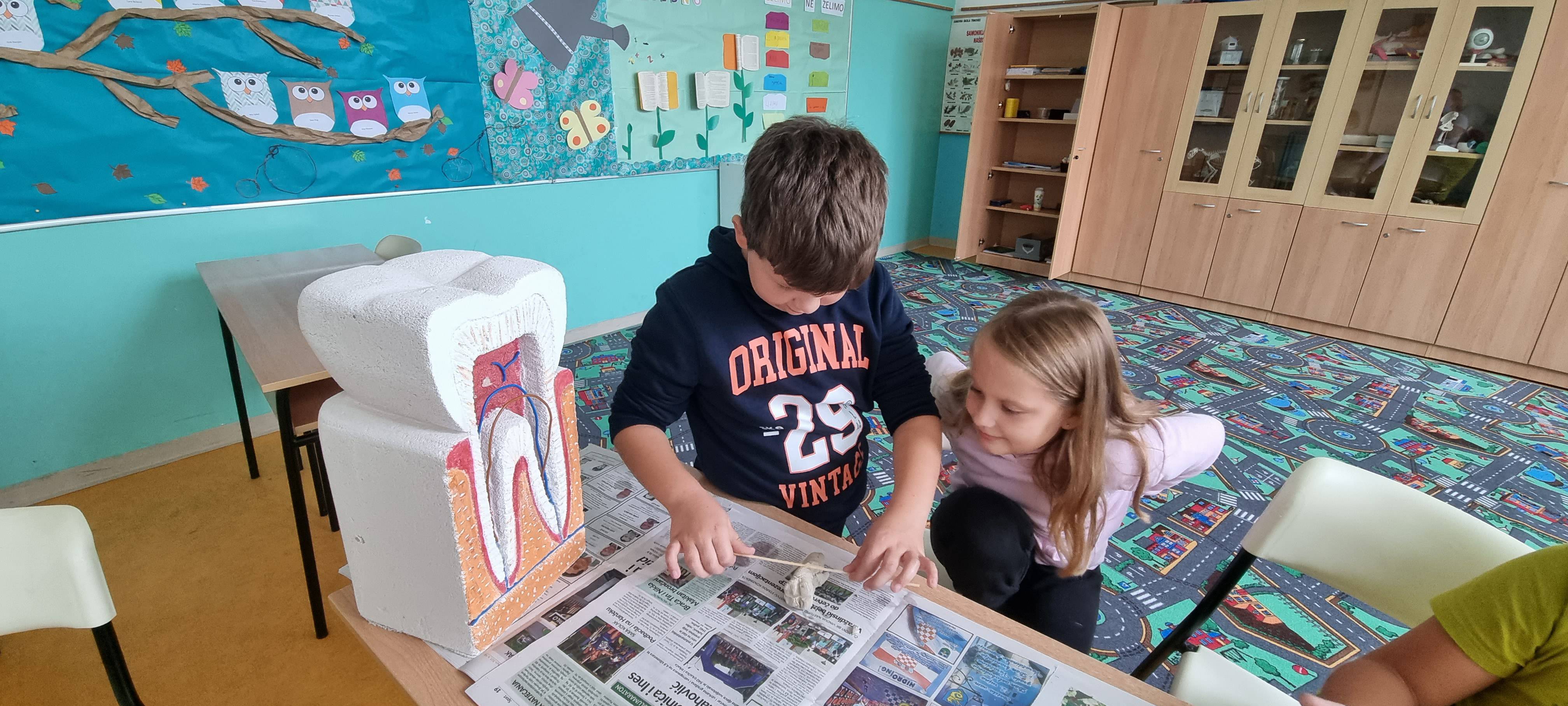 Aktivnost smo proveli promatrajući model zuba te razgovorom o izgledu, funkciji i zaštiti zubiju. Koliko često peremo zube, kako peremo zube, koja hrana može pridonijeti kvarenju zubi, što radi zubar, a što dentalni tehničar.