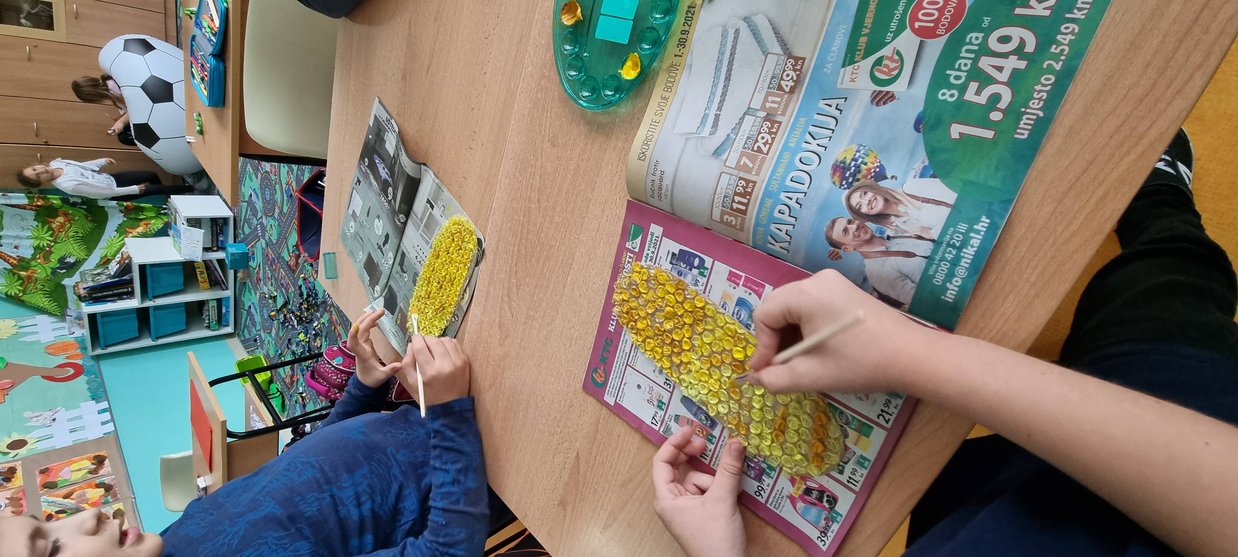 Likovna aktivnost: kukuruz (kolaž papir, tempera i pucketajuća folija)