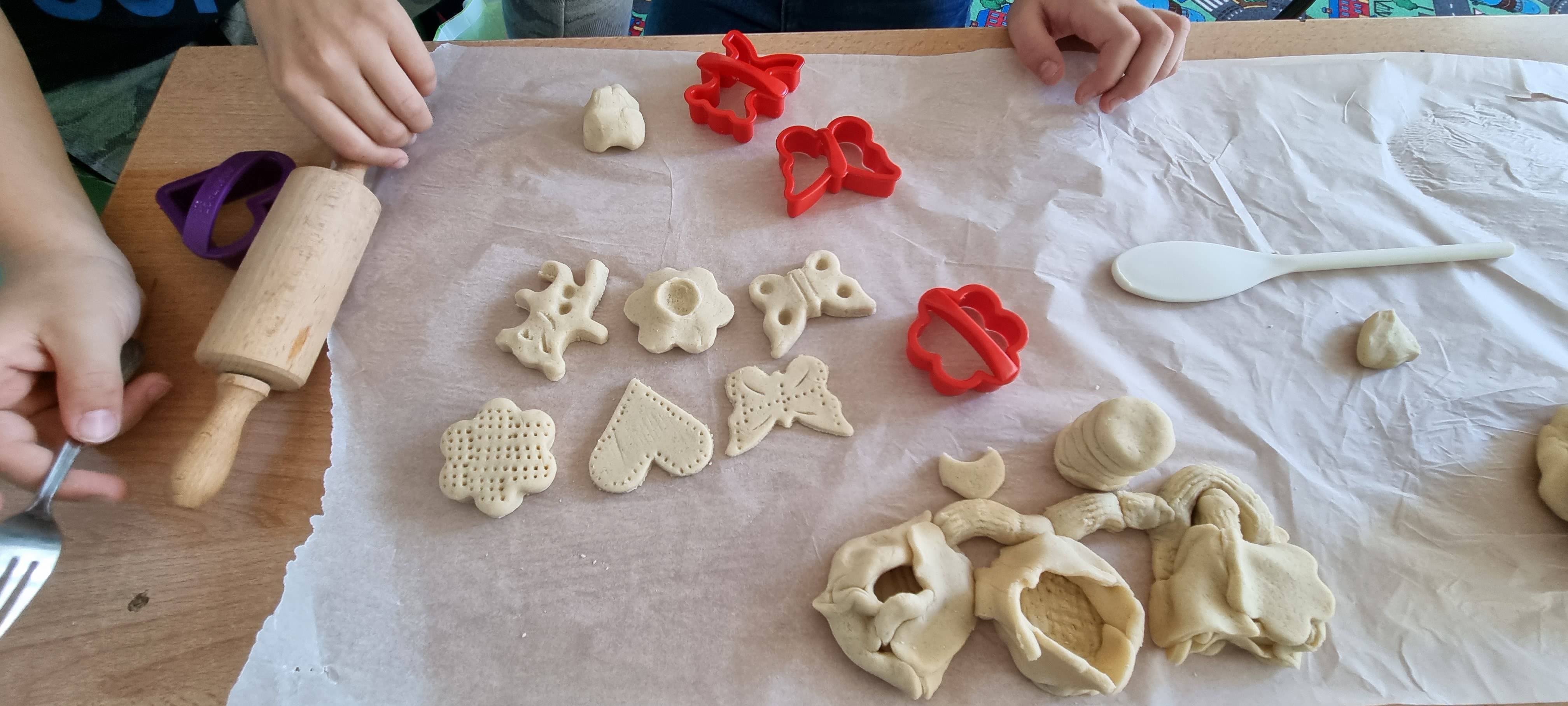 Djeca su uživala valjajući tijesto od kojega su izrađivali razna peciva i kolačiće.