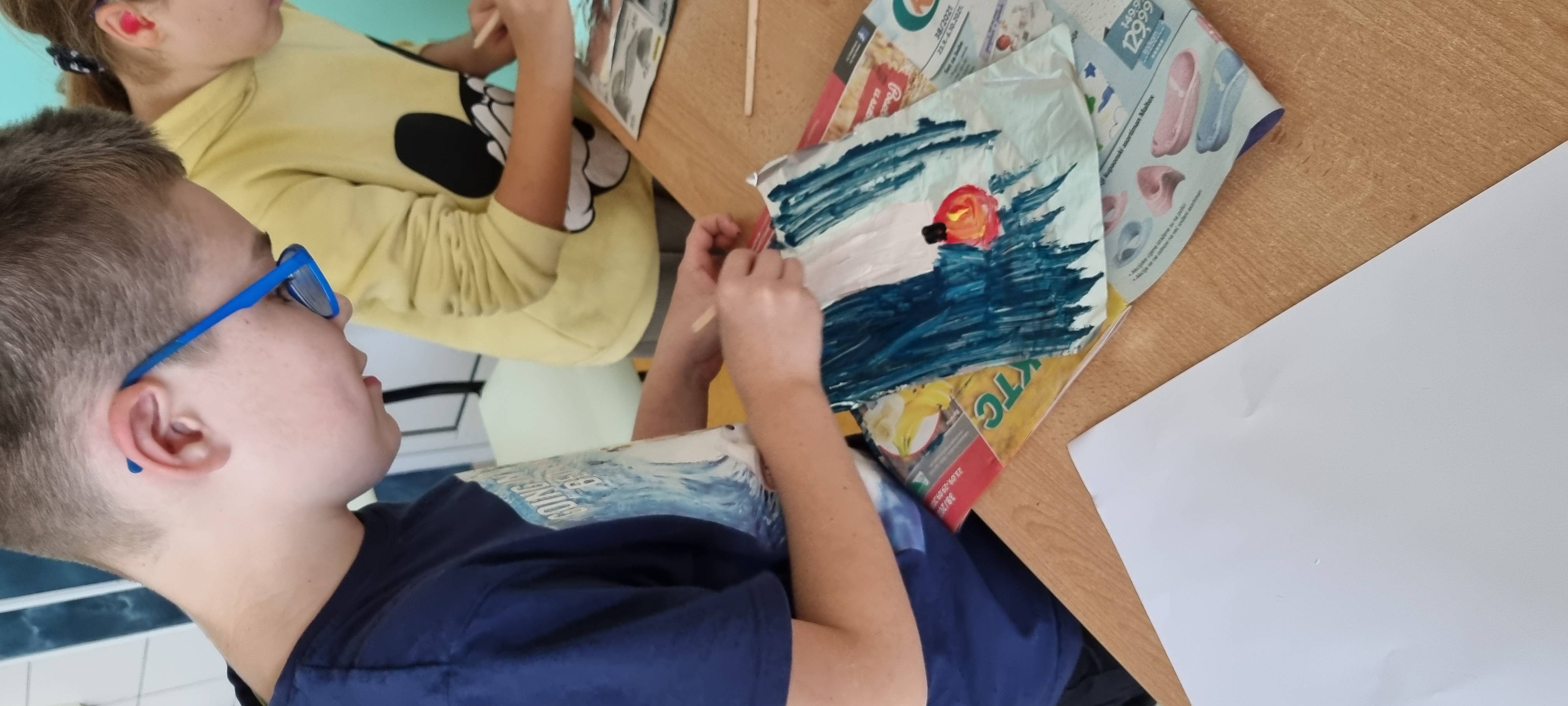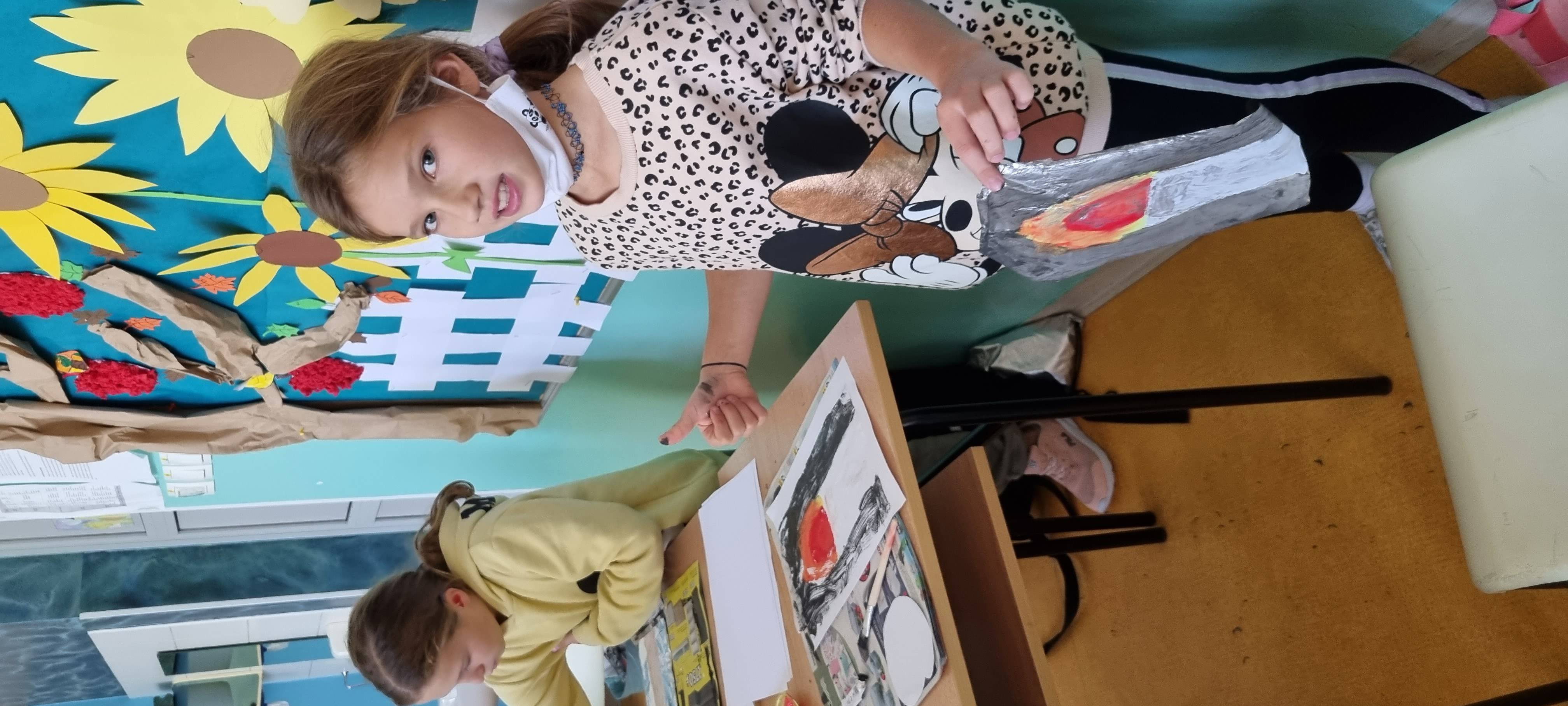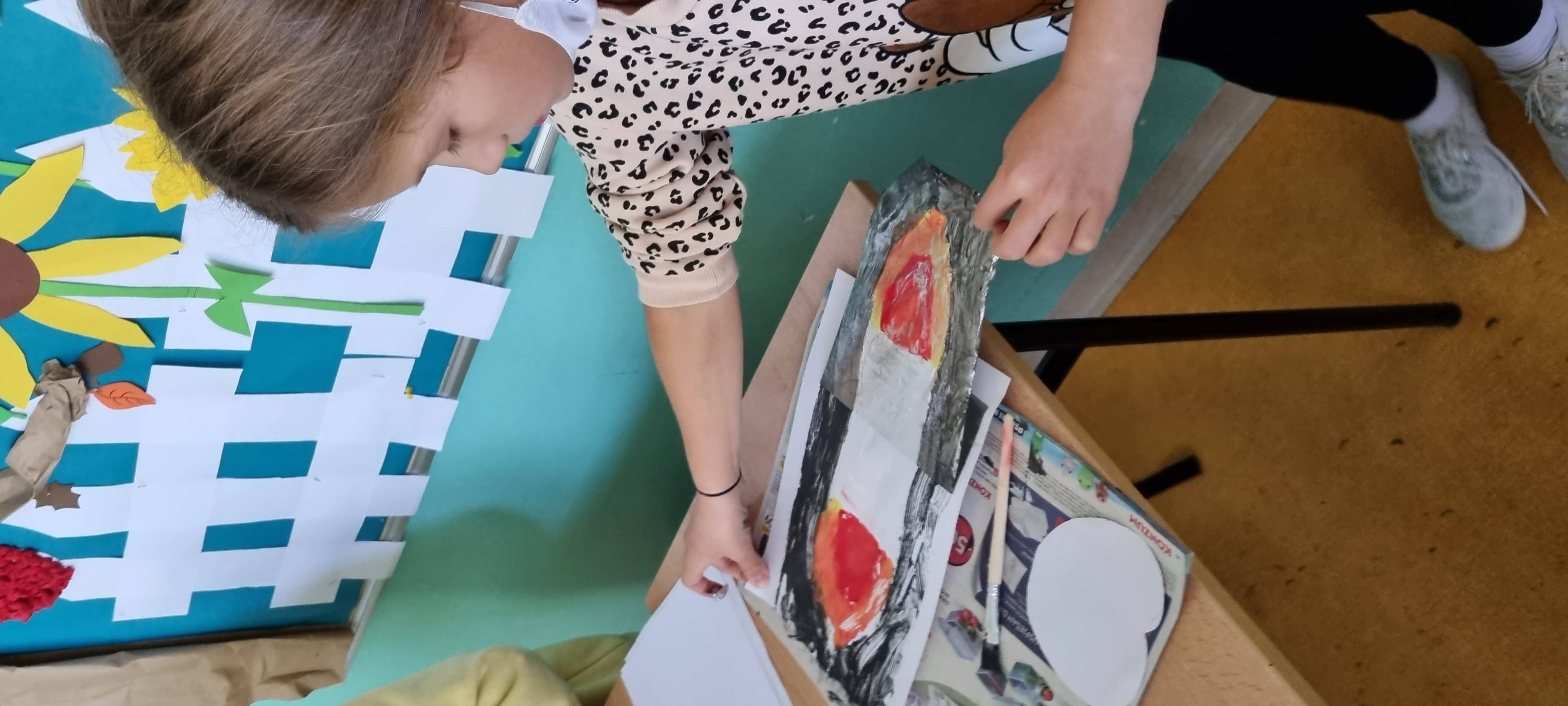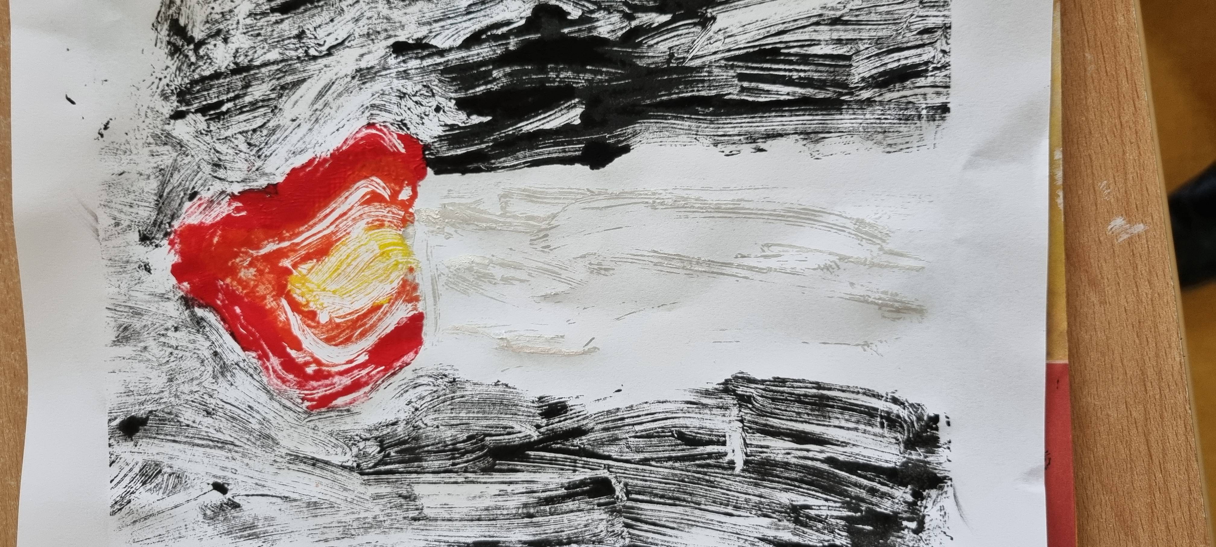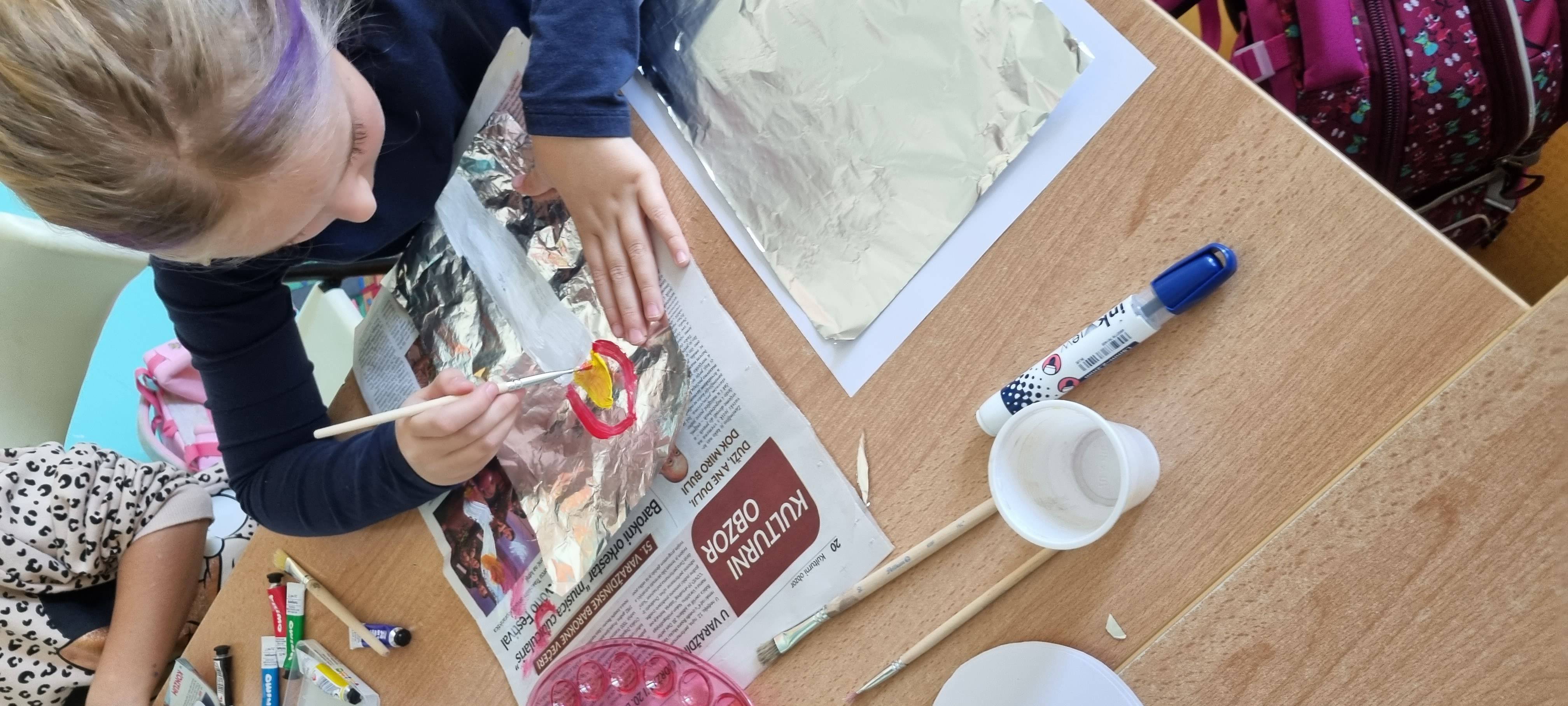 Likovna aktivnost - Upaljena svijeća - otisak (tempera, aluminijska folija), kontrast boja toplo - hladno.