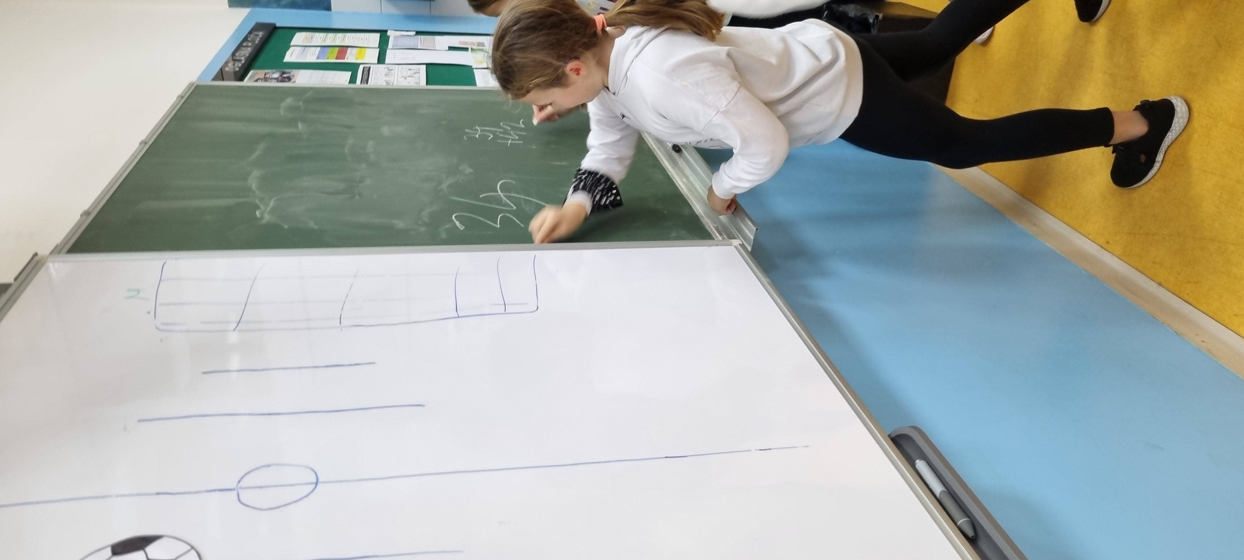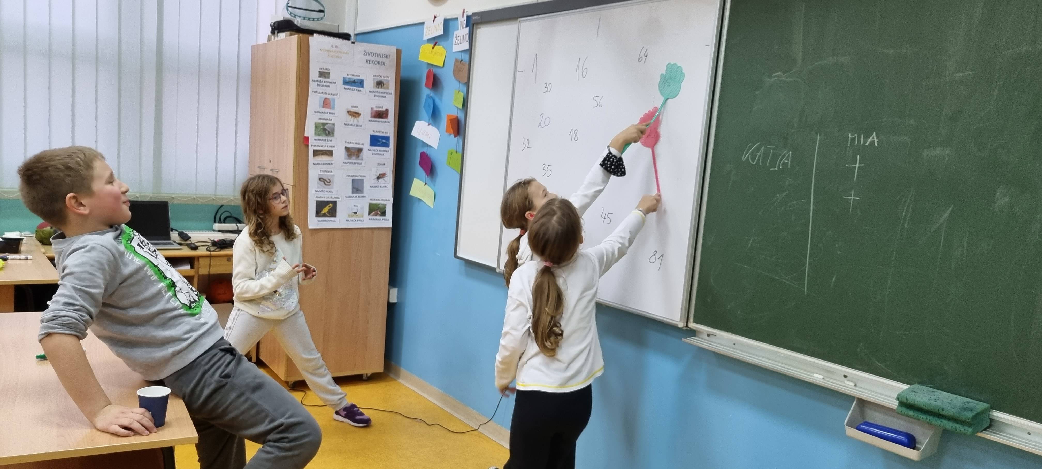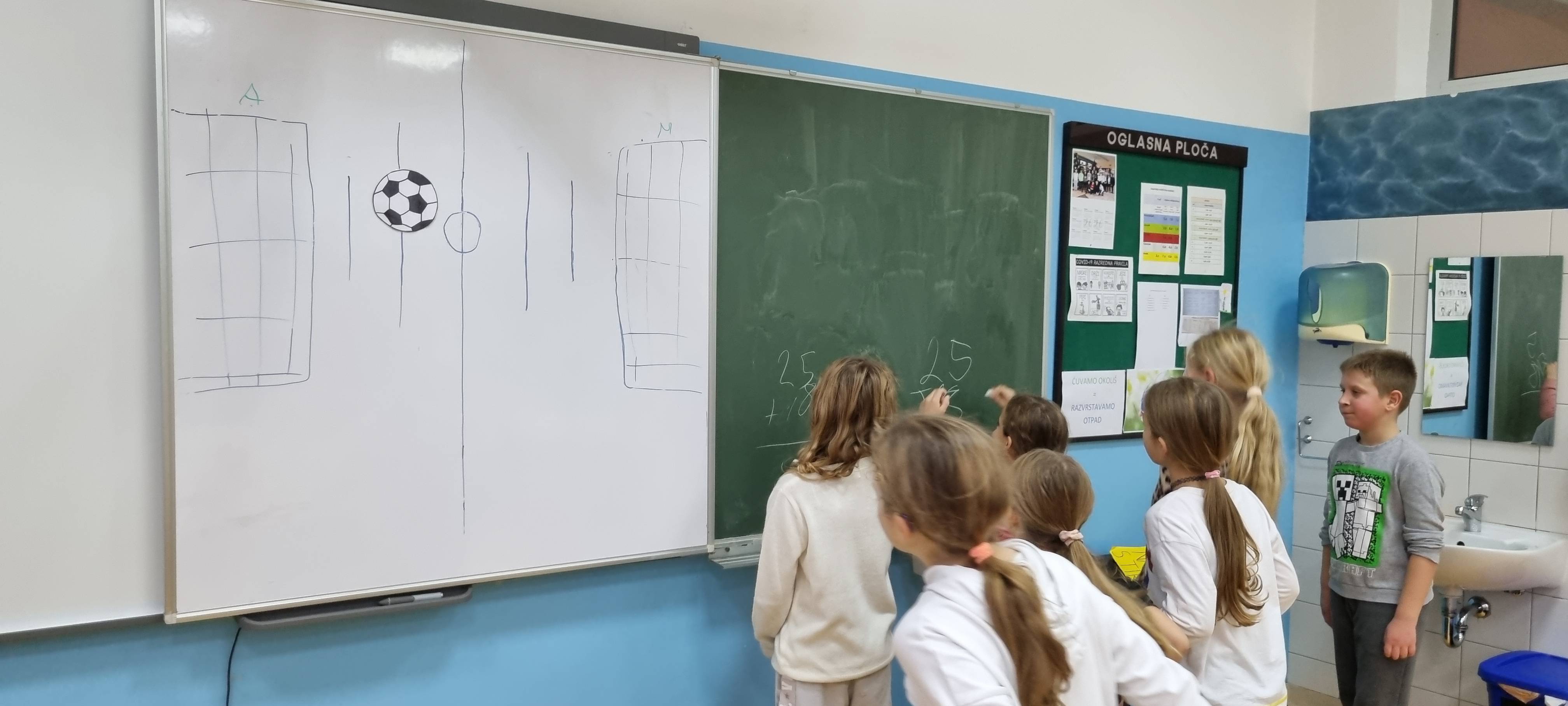 Igrali smo matematički nogomet i muhomlat, te usput vježbali pisano zbrajanje i ponovili tablicu množenja.