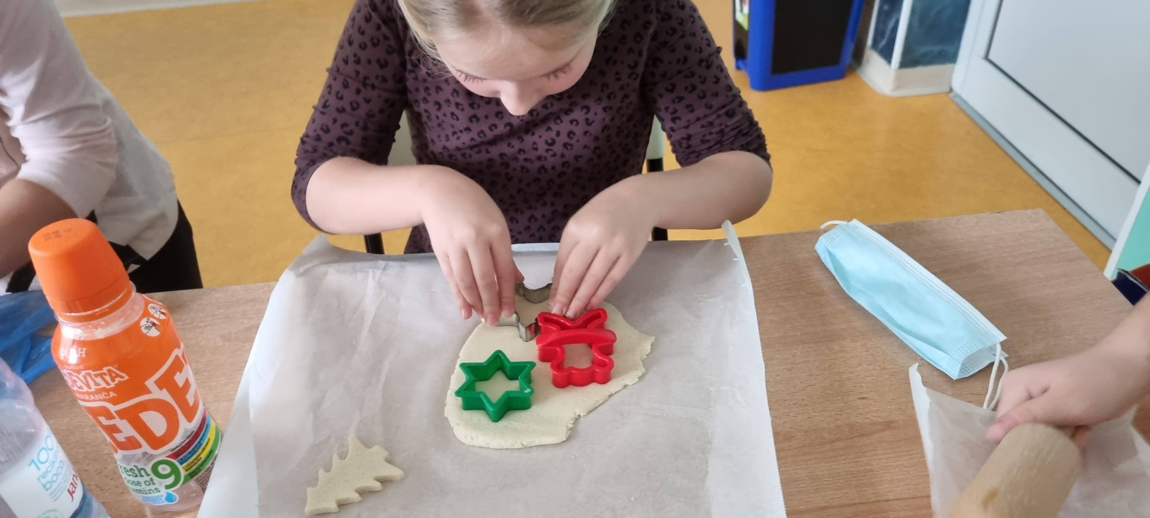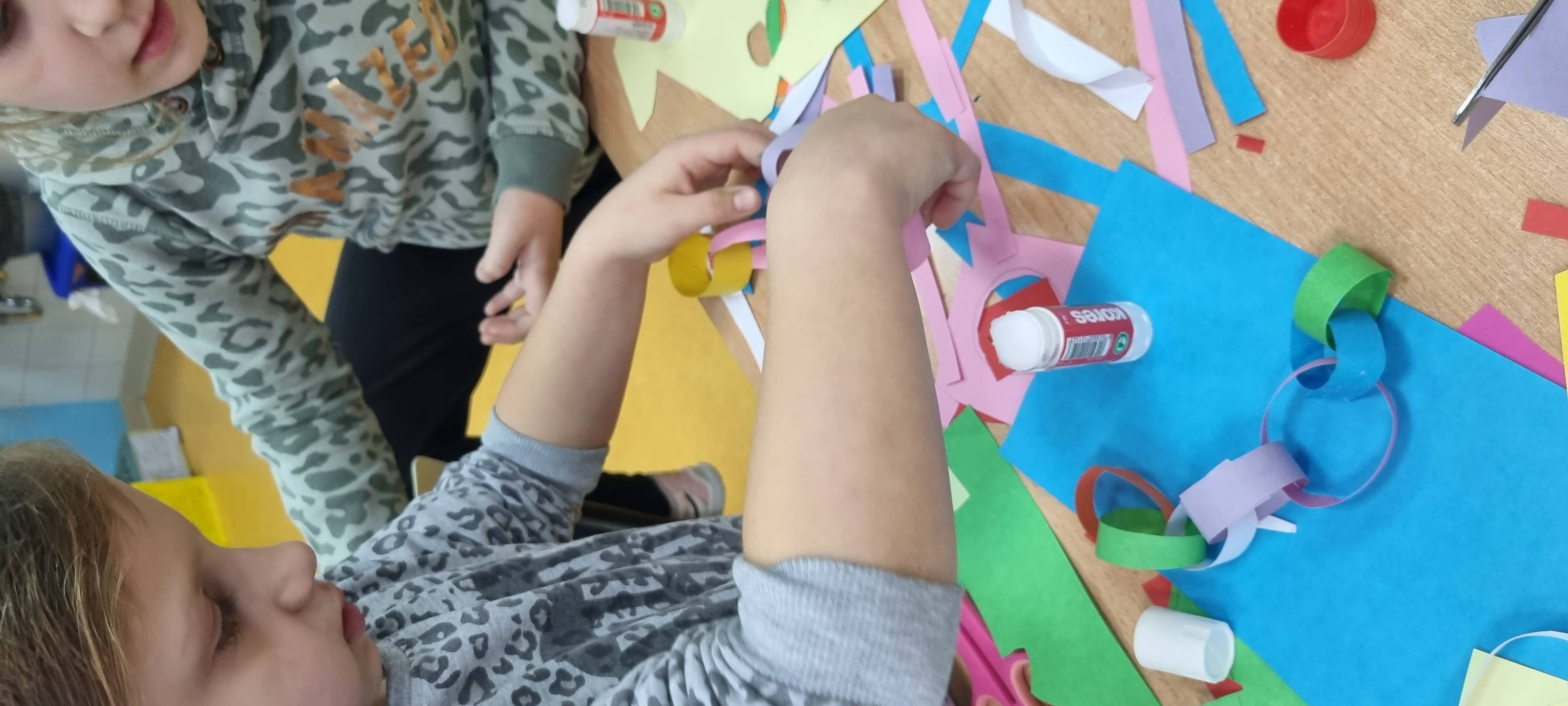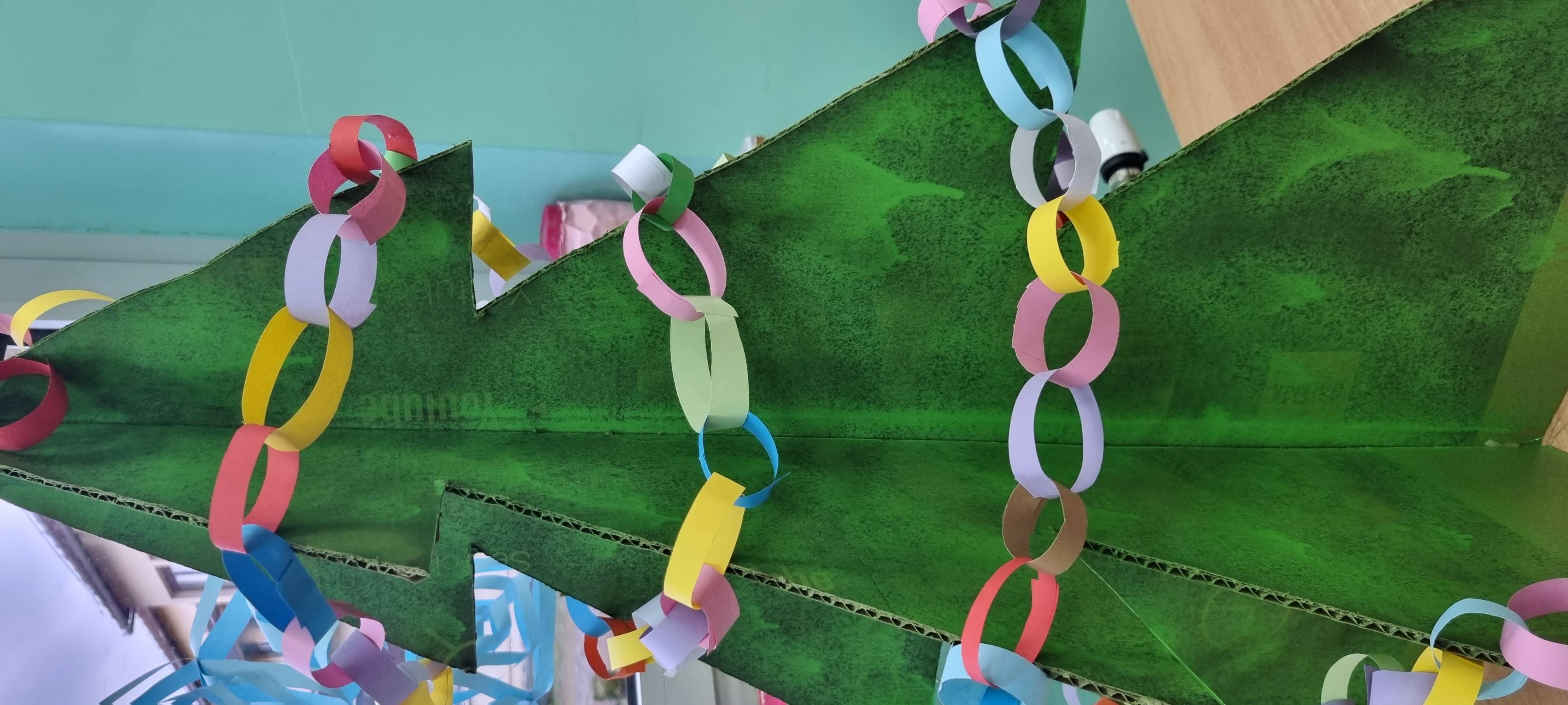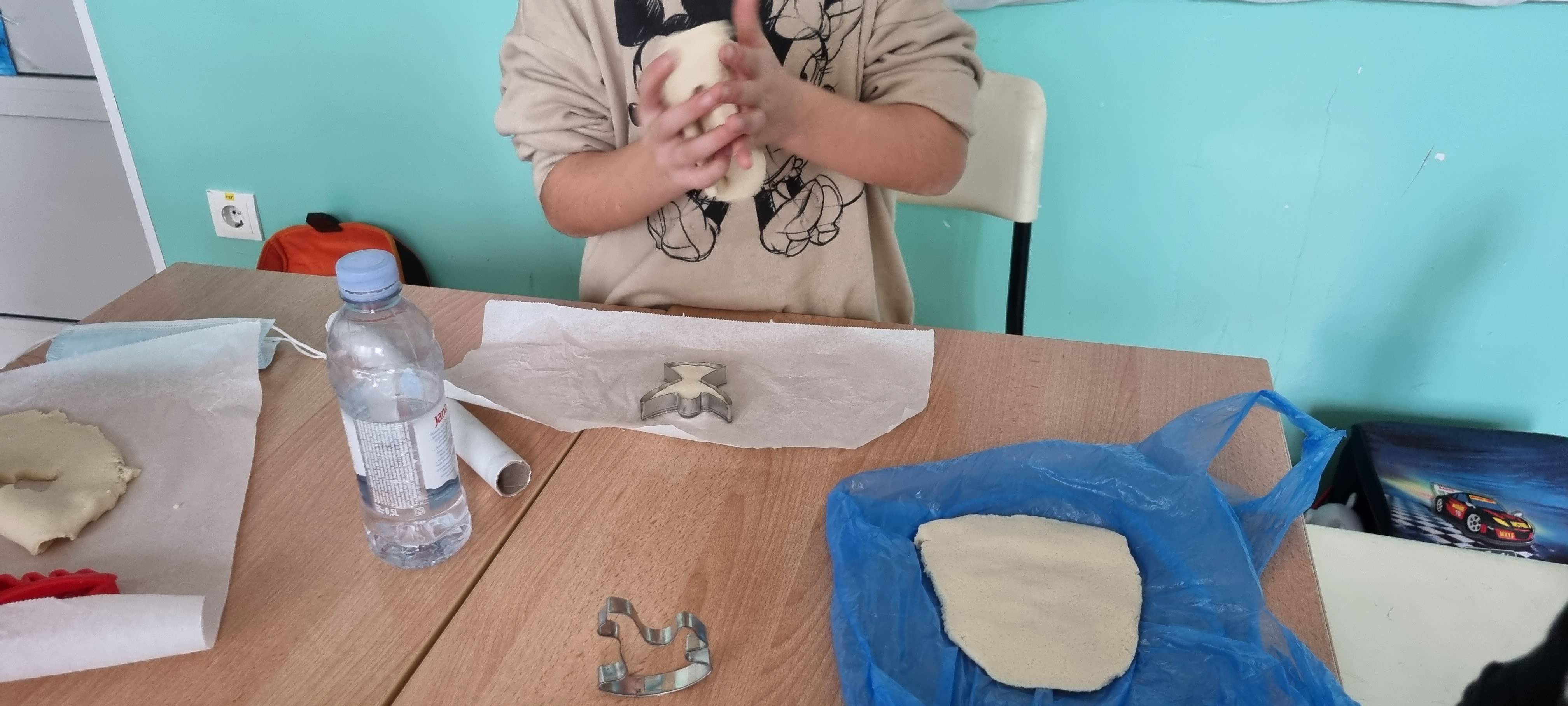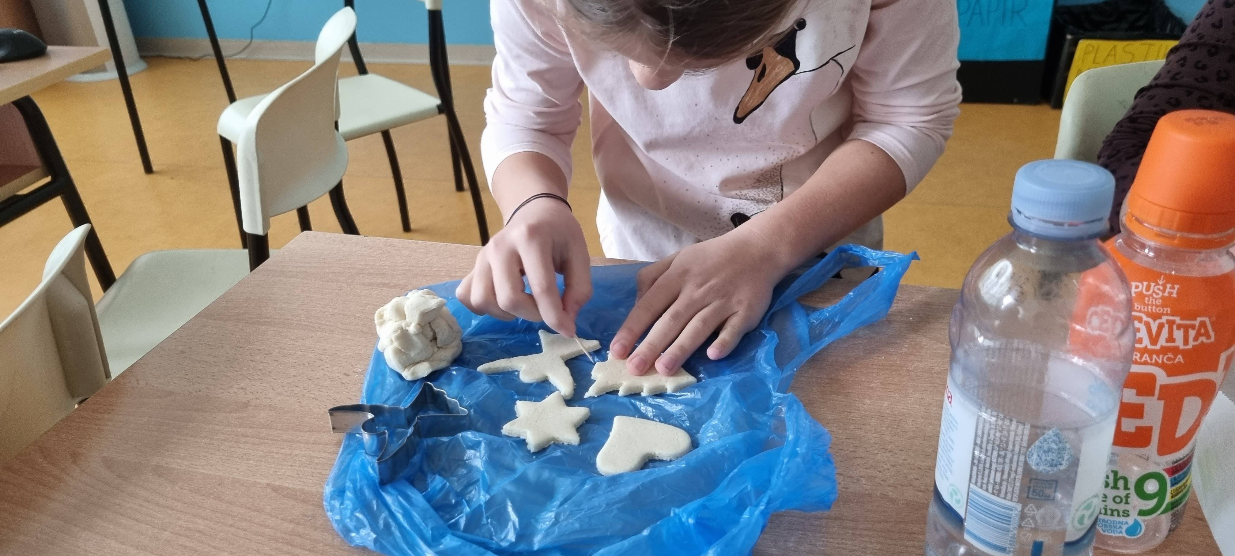 Marljivo smo izrađivali različite ukrase kojima smo okitili bor - šareni lanci od kolaž papira, ukrasi od tijesta koje smo izrađivali uz pomoć kalupa sa božićnim motivima.