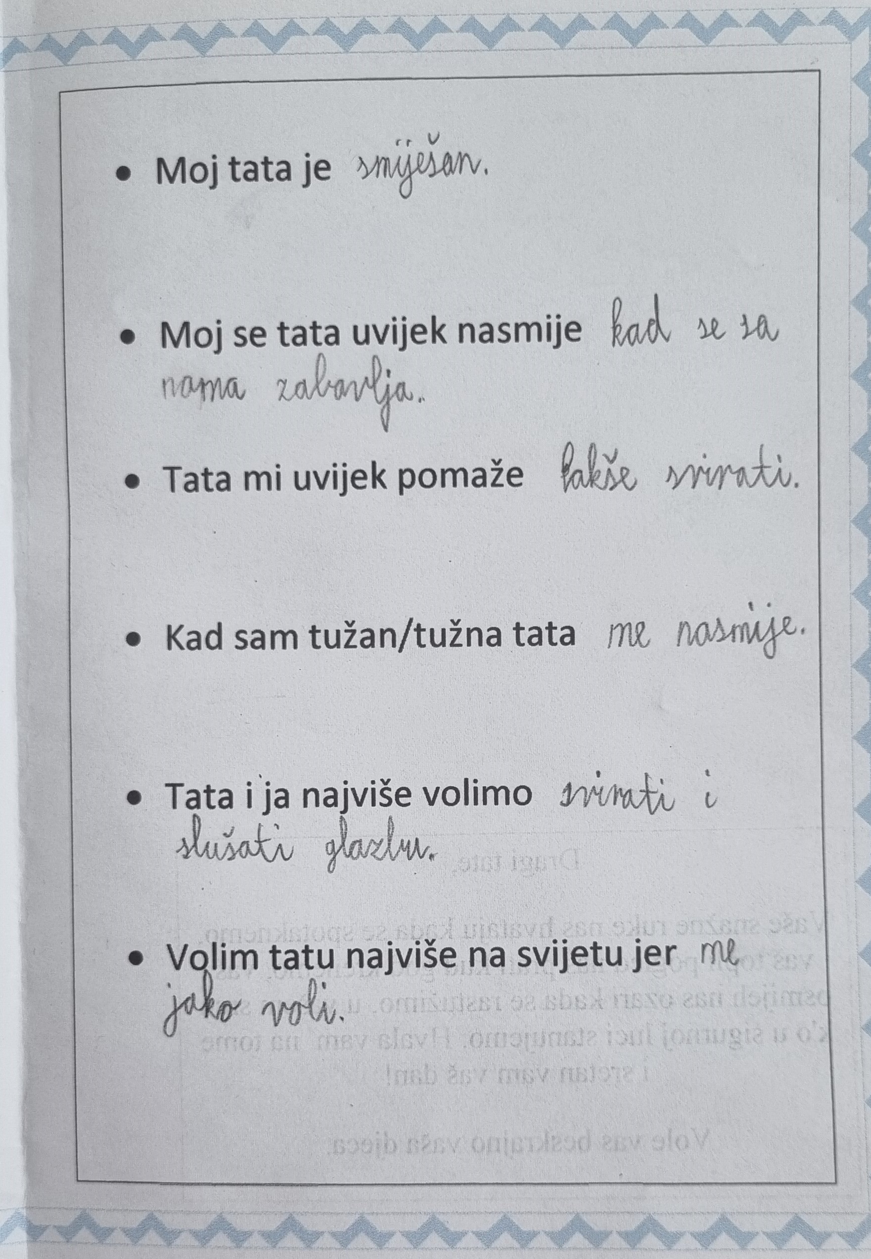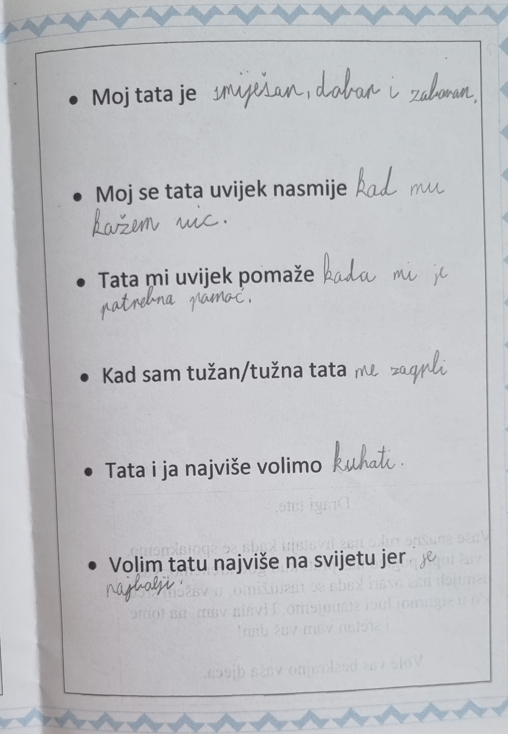 Pjevali smo pjesme "Tata, kupi mi...", "Kad je tata tu...", recitirali...