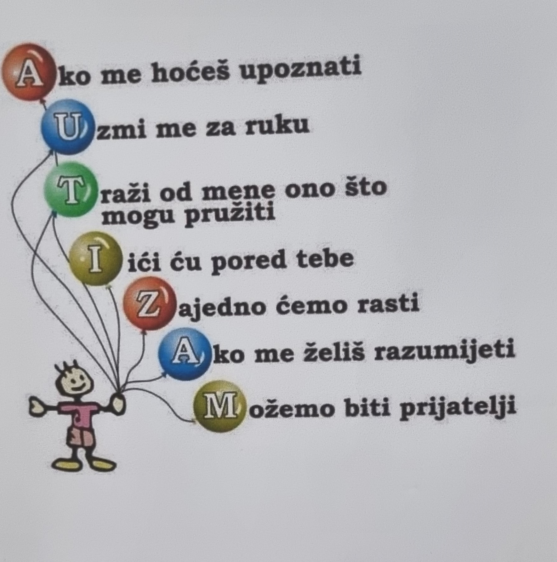 Naučili smo da autizam nije bolest i ne liječi se lijekovima. Autizam je drugačiji način zamjećivanja i obrade informacija iz okoline. Autizam je drugačiji način sporazumijevanja. Ako je netko drugačiji ne znači da mu zbog toga ne treba prijatelj i lijepa riječ.