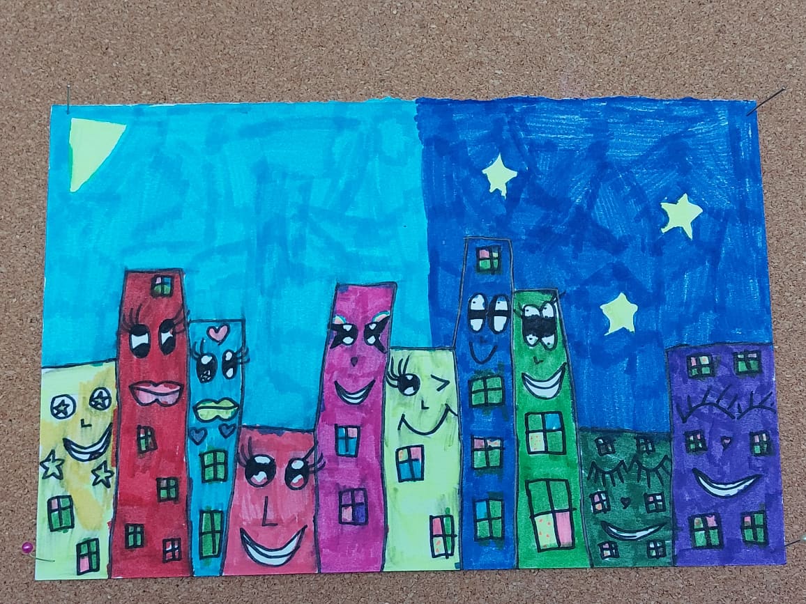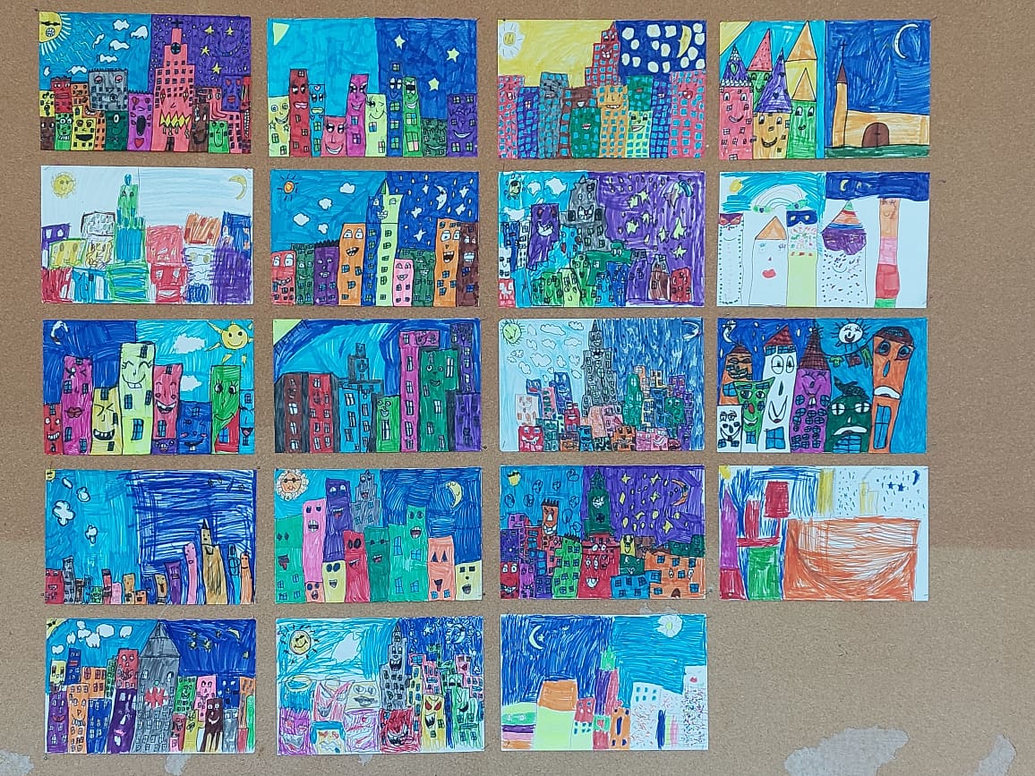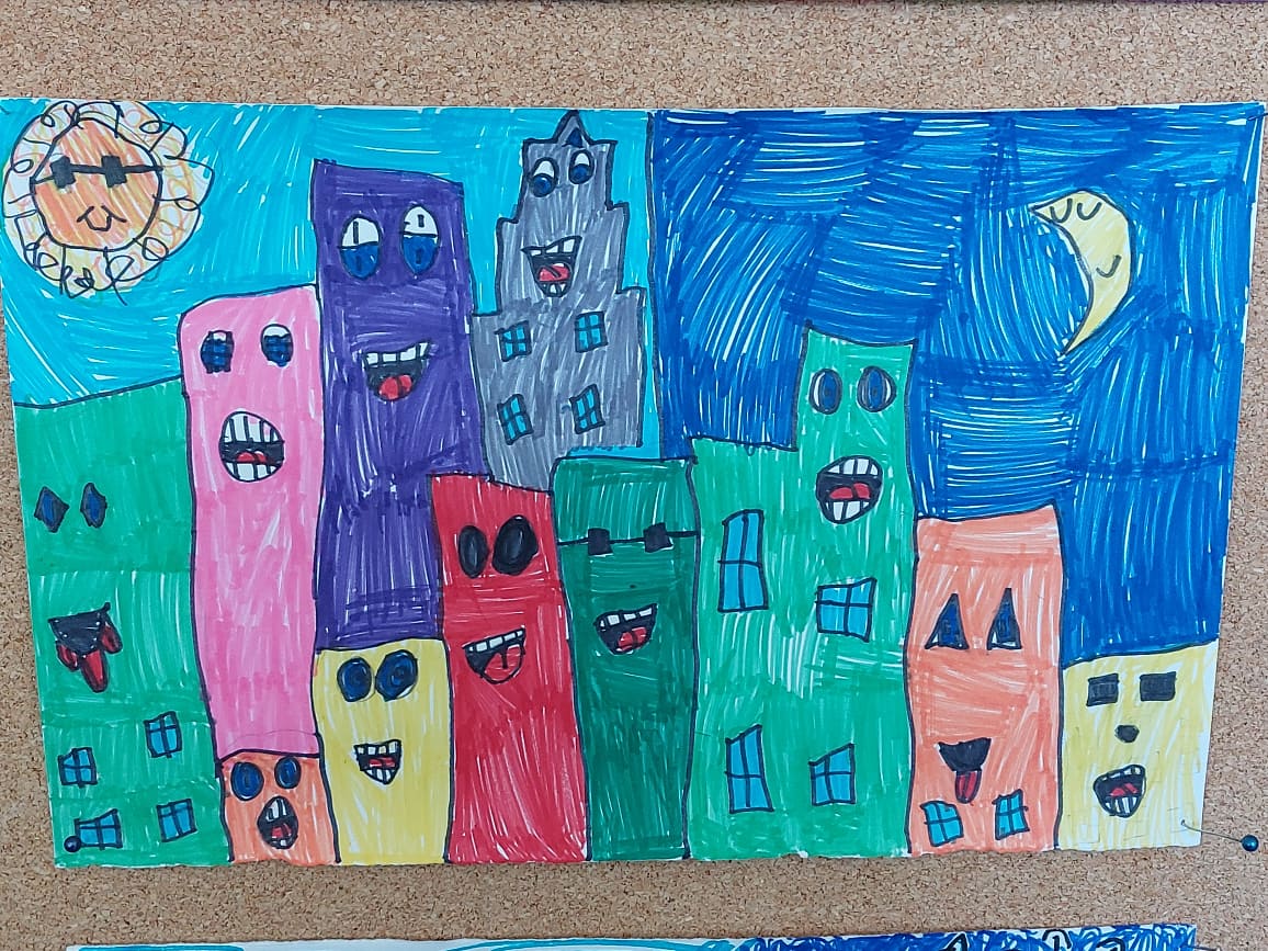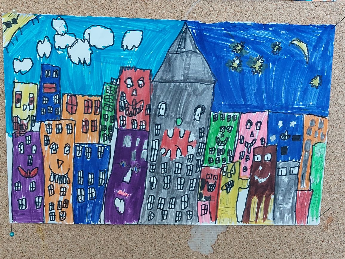 Upravo jedan takav veseli gradski pejzaž crtali su i boravkaši. Bilo im je jako zanimljivo te su s veseljem odradili ovaj zadatak!