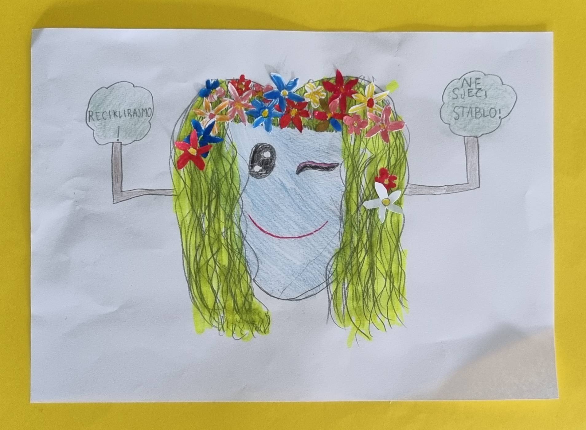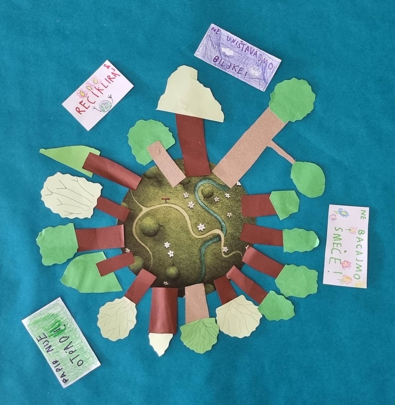 Nakon radionice recikliranja papira učenici su napisali nekoliko eko poruka kojima smo ukrasili razredni pano.