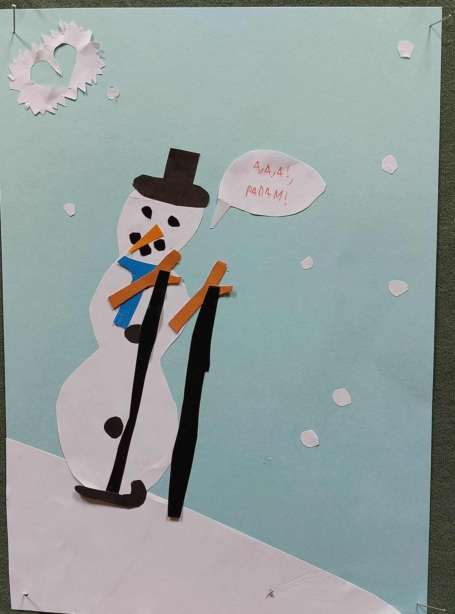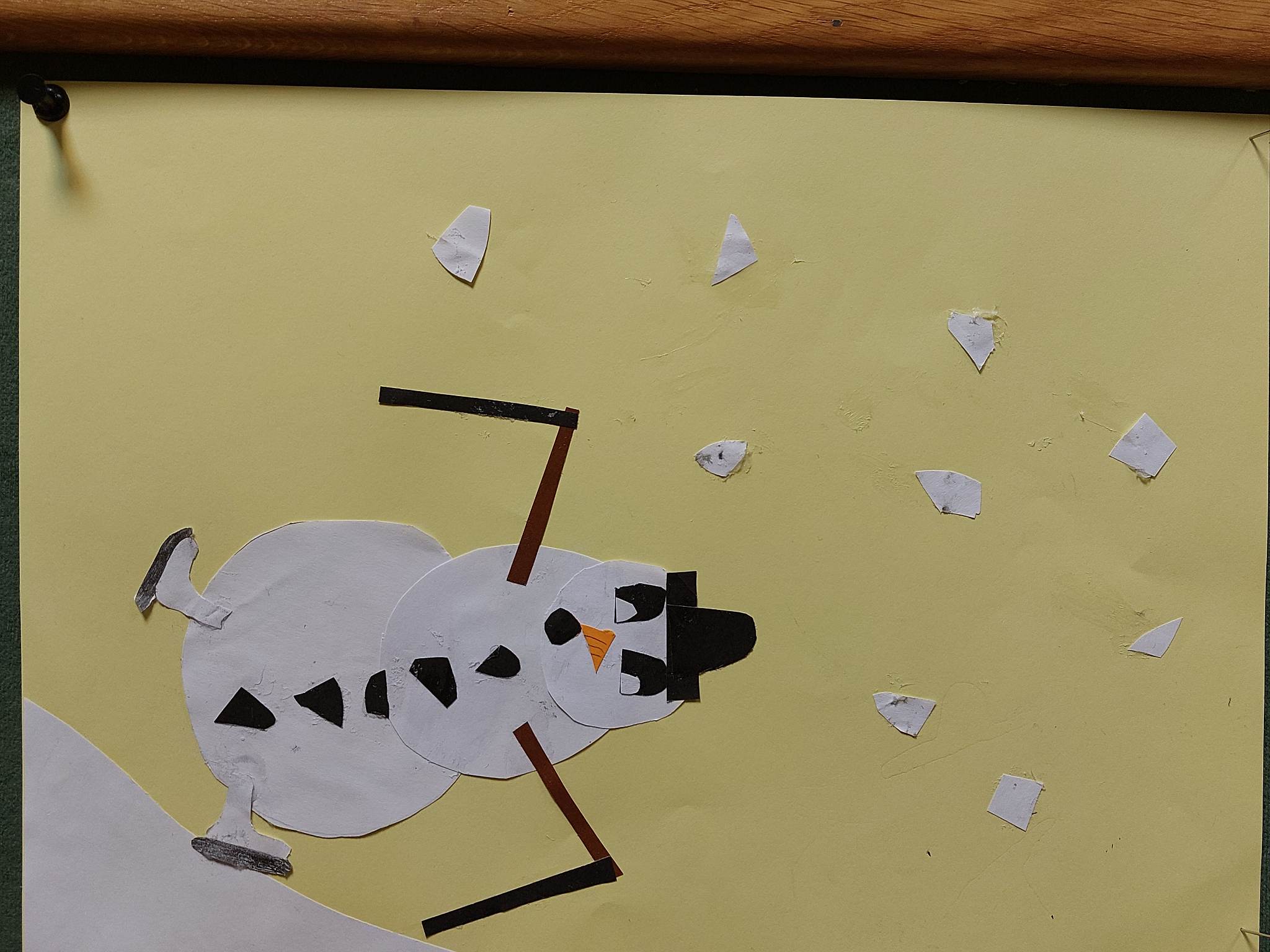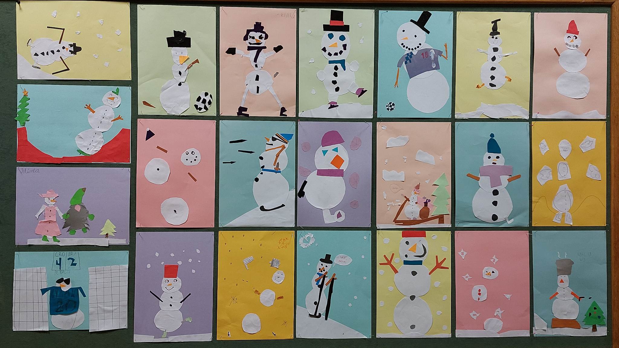 S obzirom na to da taj dan snijega nije bilo, odlučili smo upotrijebiti svoju maštu te od kolaža izraditi različite neobične snjegoviće. Izradili smo snjegoviće nogometaše, skatere, klizače, nespretne snjegoviće, one koji padaju i mnoge druge.
