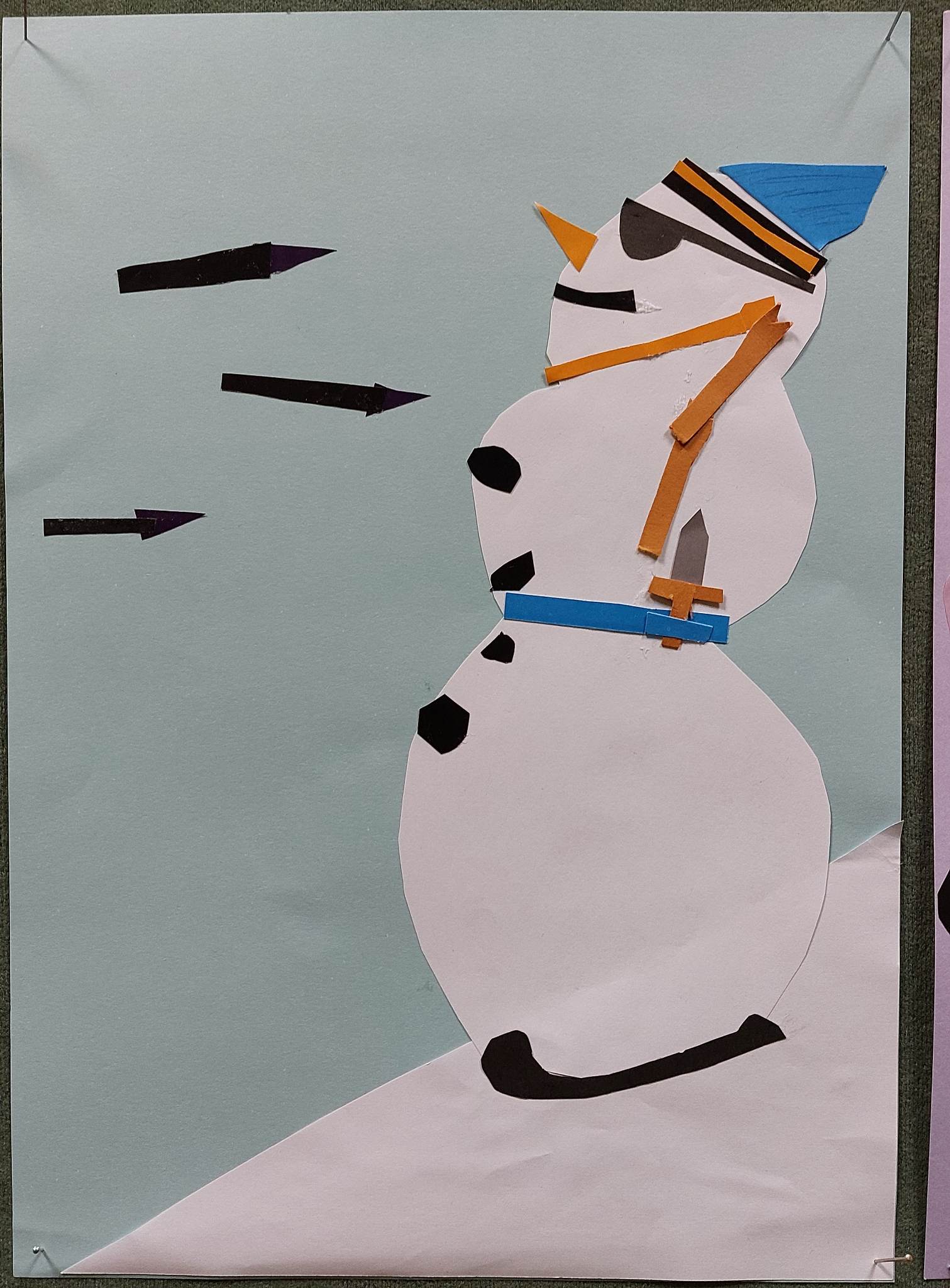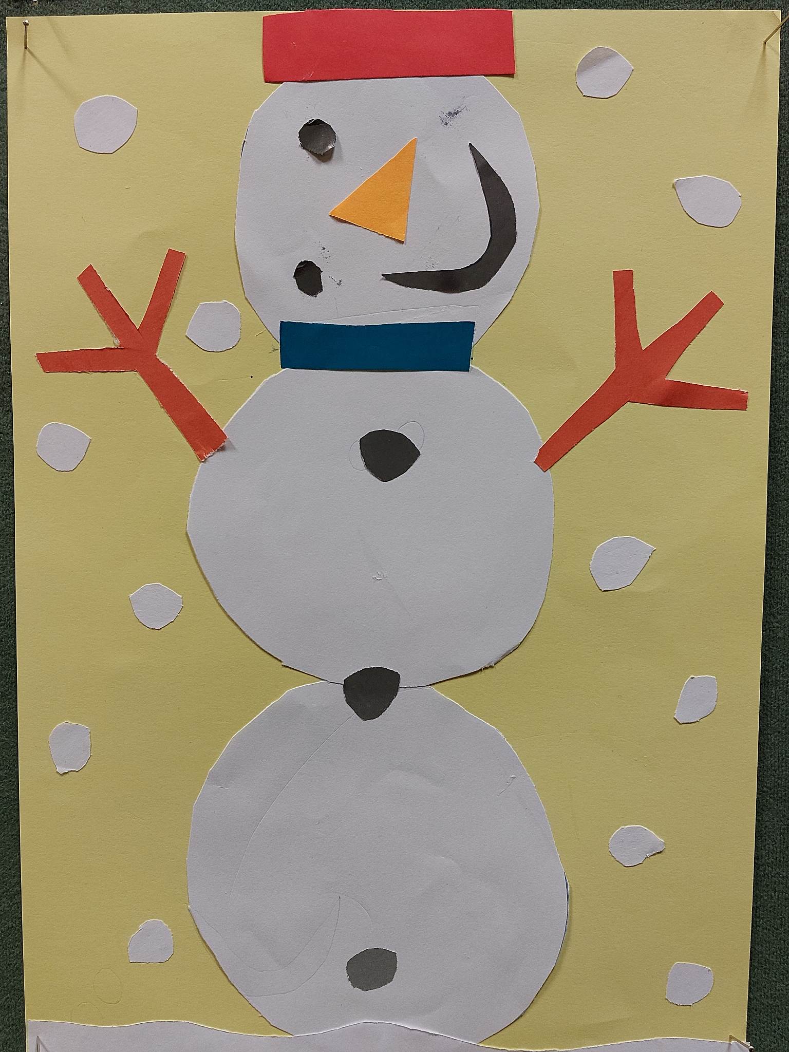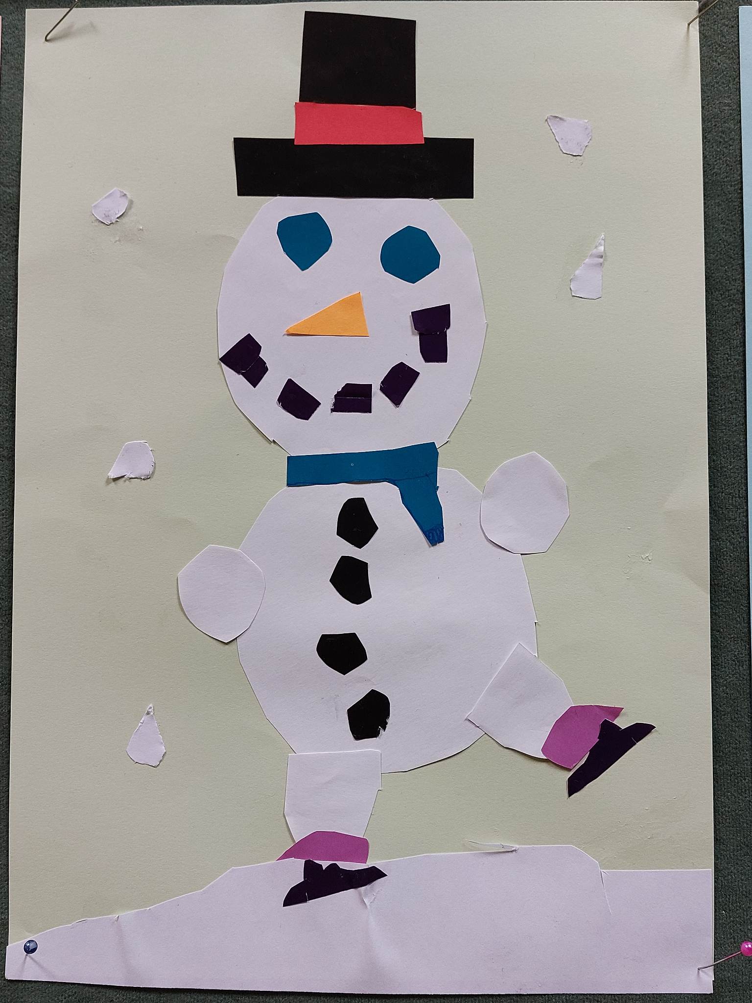 S obzirom na to da taj dan snijega nije bilo, odlučili smo upotrijebiti svoju maštu te od kolaža izraditi različite neobične snjegoviće. Izradili smo snjegoviće nogometaše, skatere, klizače, nespretne snjegoviće, one koji padaju i mnoge druge.