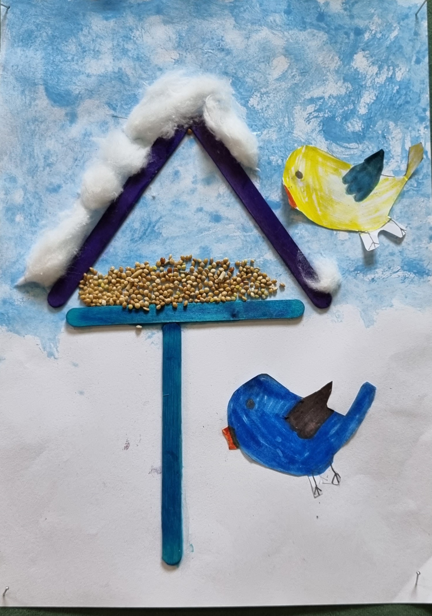 Likovna radionica: izrada hranilišta za ptice (drveni štapići, vata, vodena boja, sjemenke)
