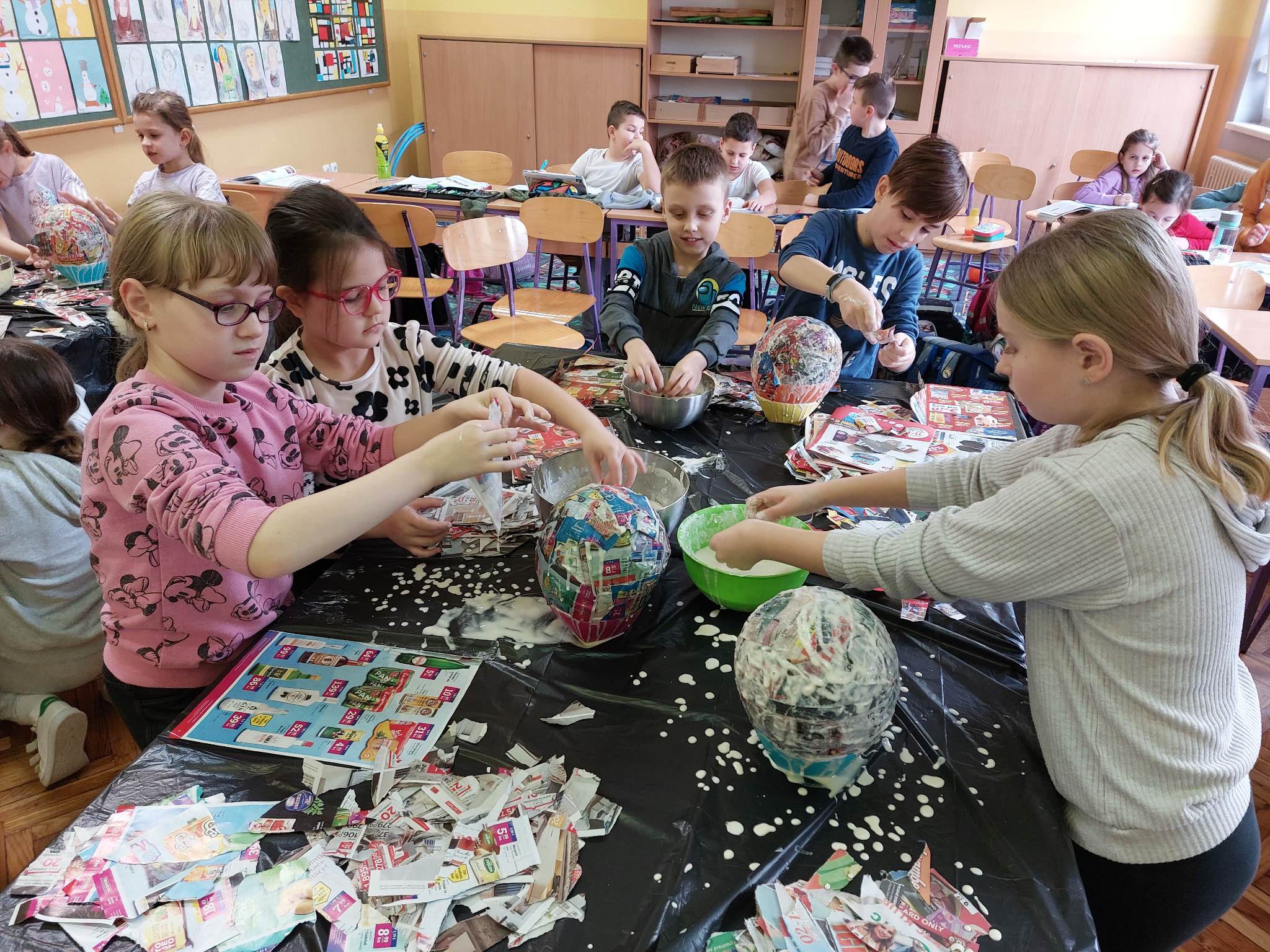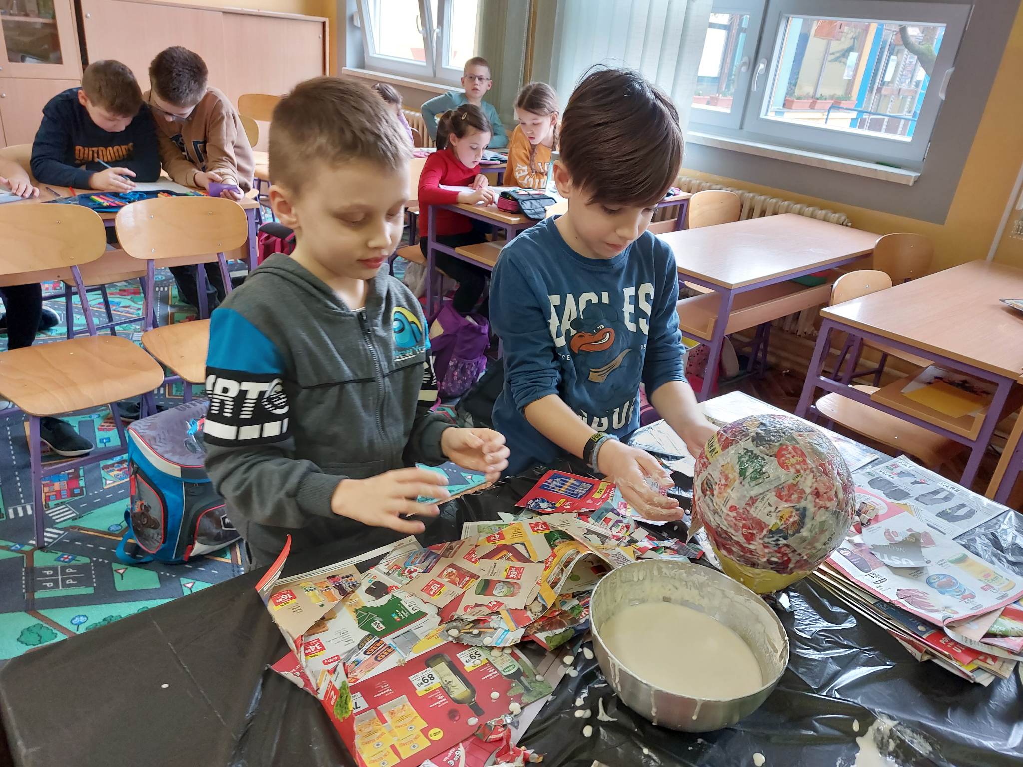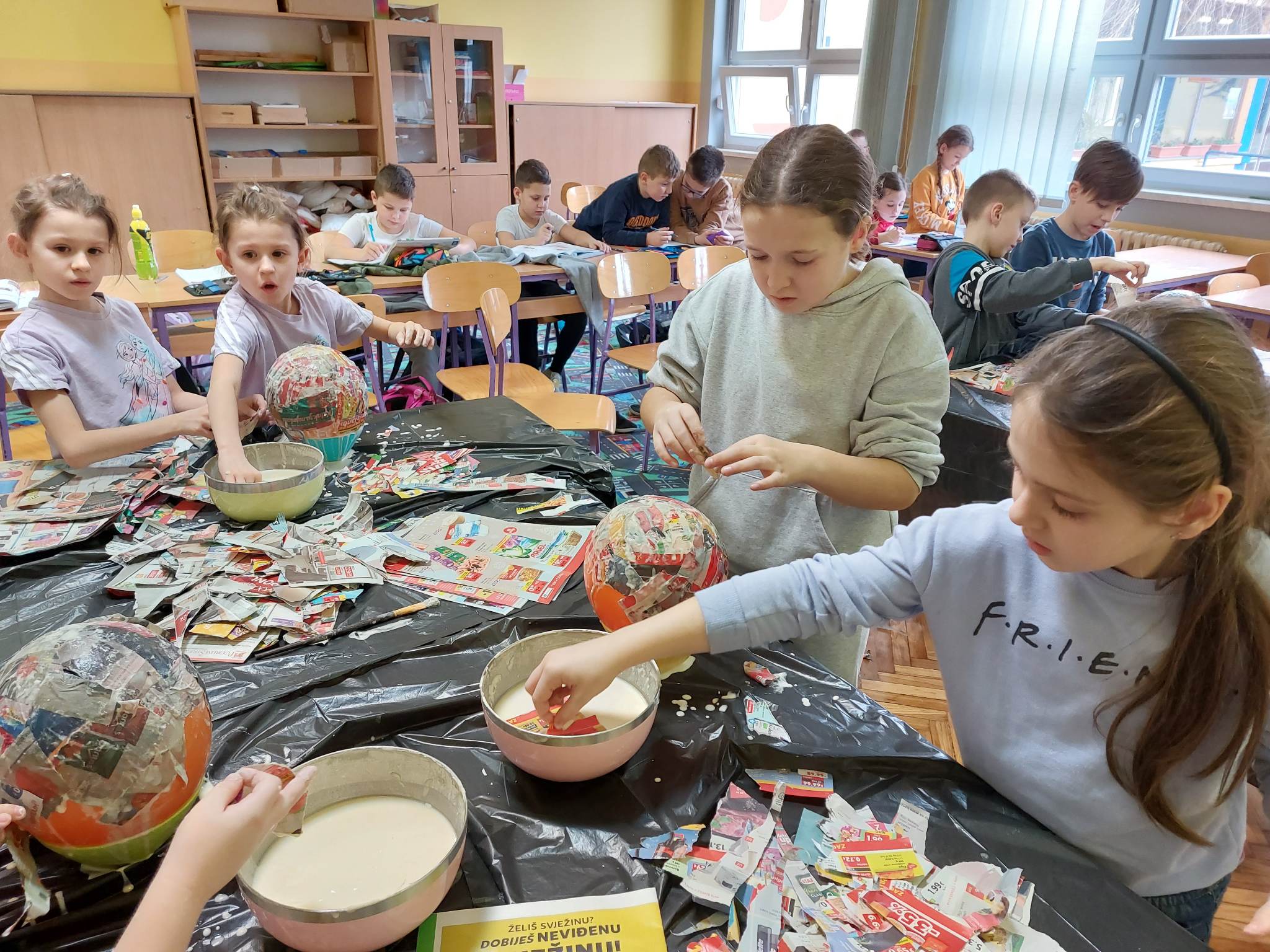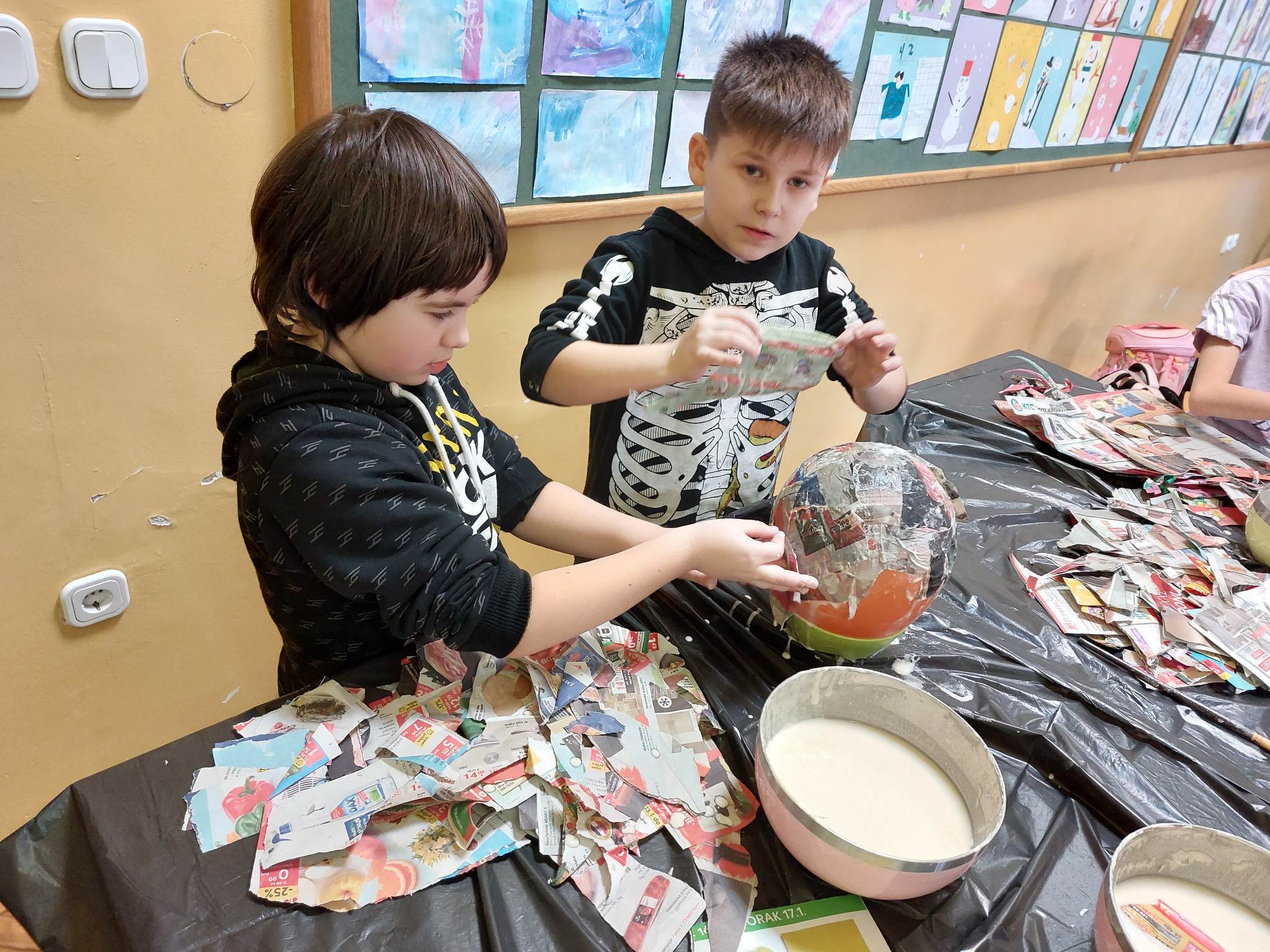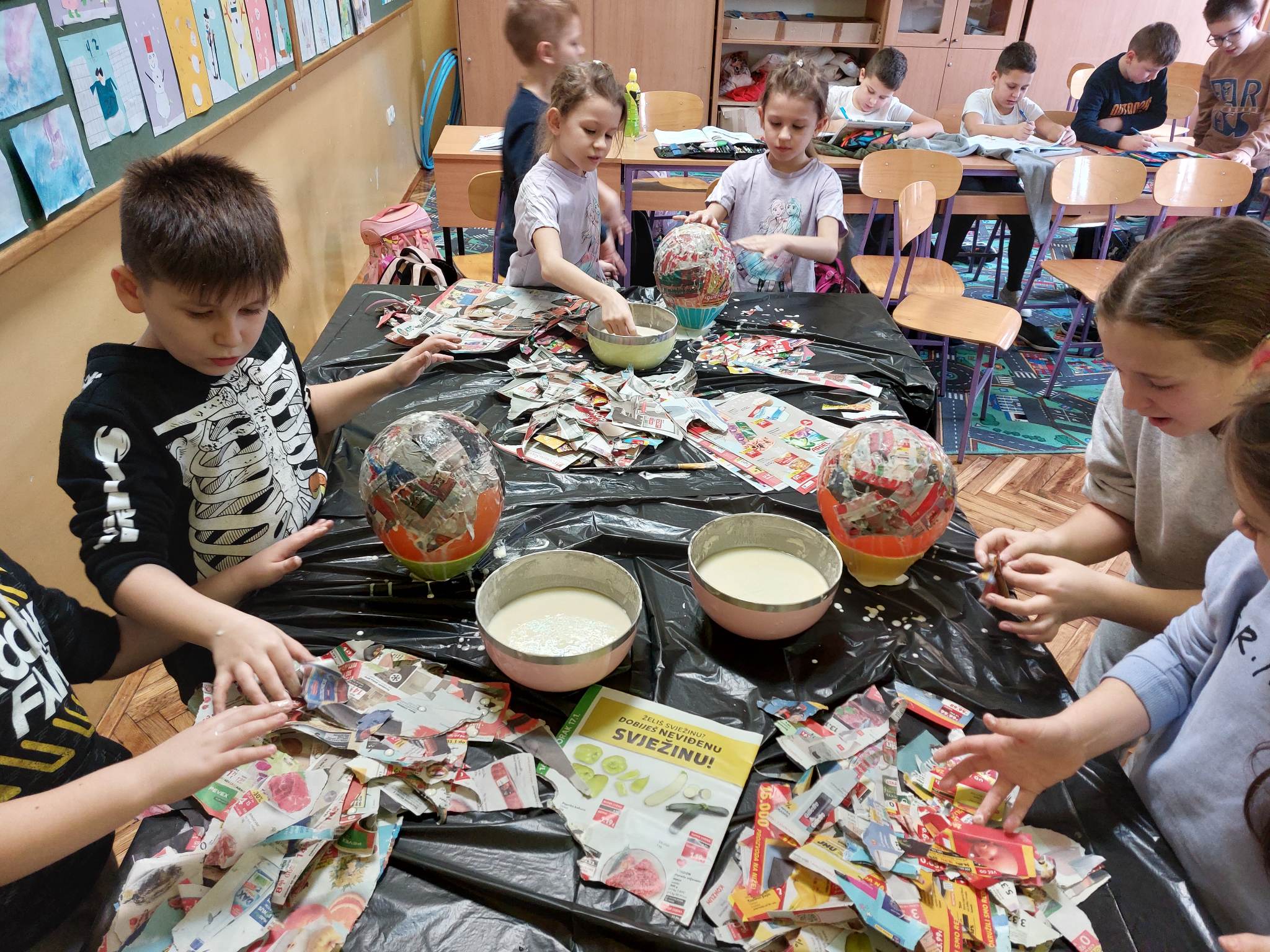 Napravili smo smjesu i napuhali balone. Naučili smo novu tehniku - kaširanje - koja nam se jako svidjela! Ostavili smo radove da se suše tjedan dana.