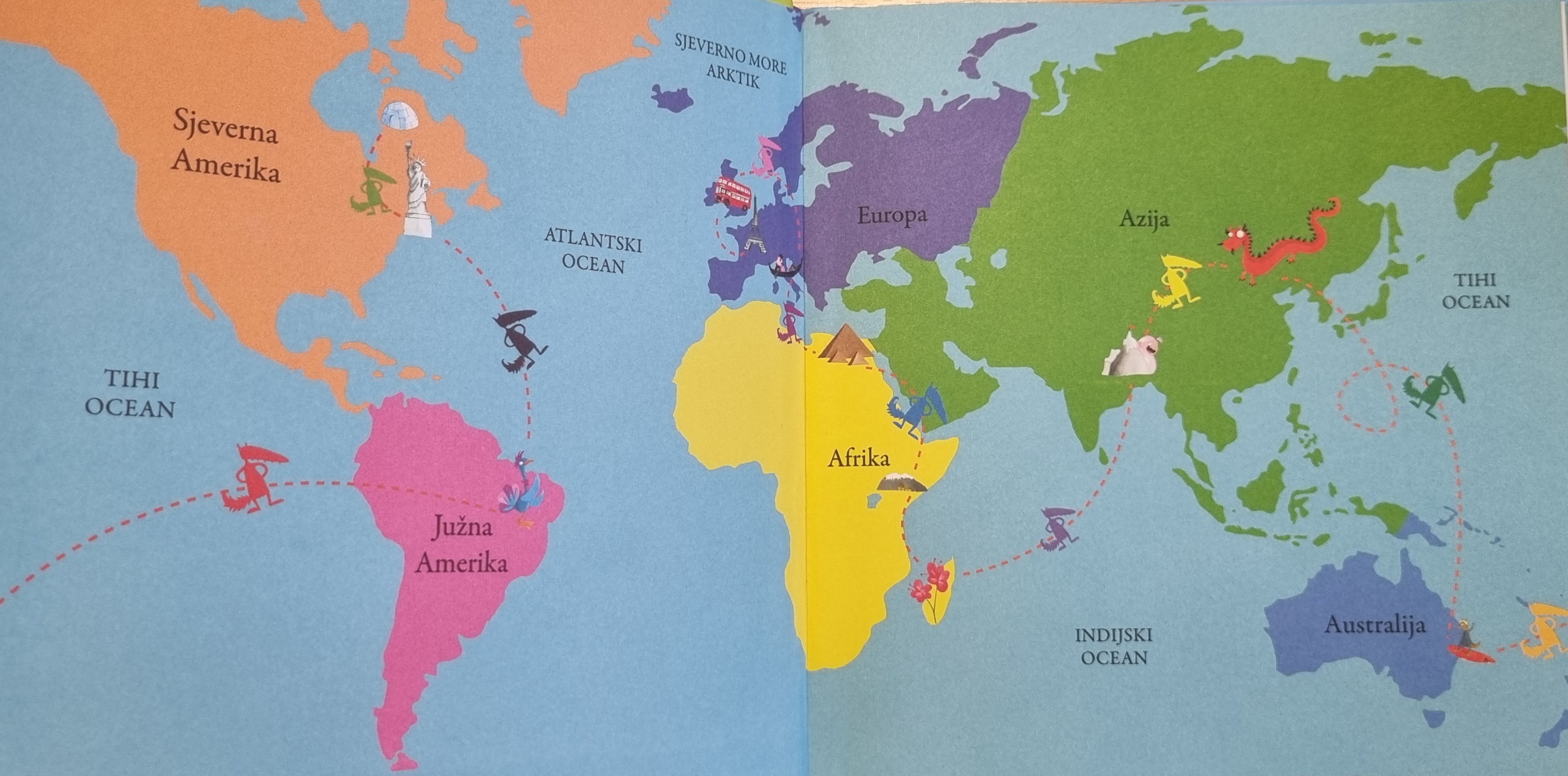 Odlučili smo se pridružiti putovanju jednog vuka koji se odlučio upustiti u avanturu po svijetu. S ruksakom na leđima ode on u Italiju, Španjolsku, Englesku, Francusku, Australiju i još mnoge druge zemlje. Na putu je upoznao mnoge znamenitosti, običaje i zanimljivosti vezane za pojedine države. Uz ovu prekrasnu knjigu VUK KOJI JE HTIO OBIĆI SVIJET autora Orianne Lallemand i Éléonore Thuillier koju nam je donijela i pročitala naša Helena ponovili smo najvažnije o državama koje smo upoznali u sklopu eTwinning projekta "Kistom po svijetu 2".