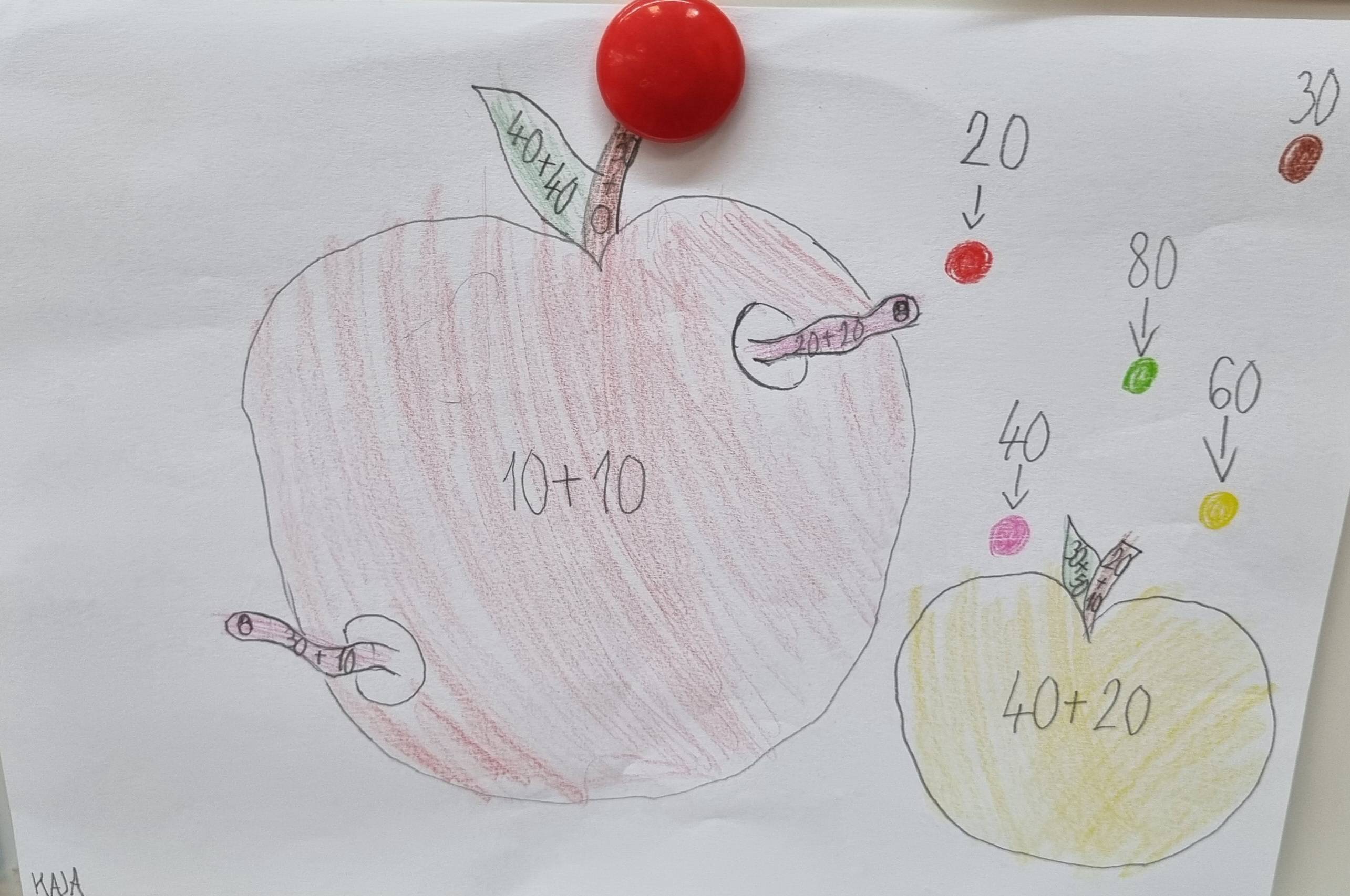 Spojili smo jabuke i matematiku te dobili zabavne bojanke sa zadacima, a potom i ponovili zbrajanje i oduzimanje desetica do 100. Svaki je učenik dobio zadatak izraditi bojanku sa zadacima na temu Dana jabuka, koju je zatim rješavao drugi učenik.