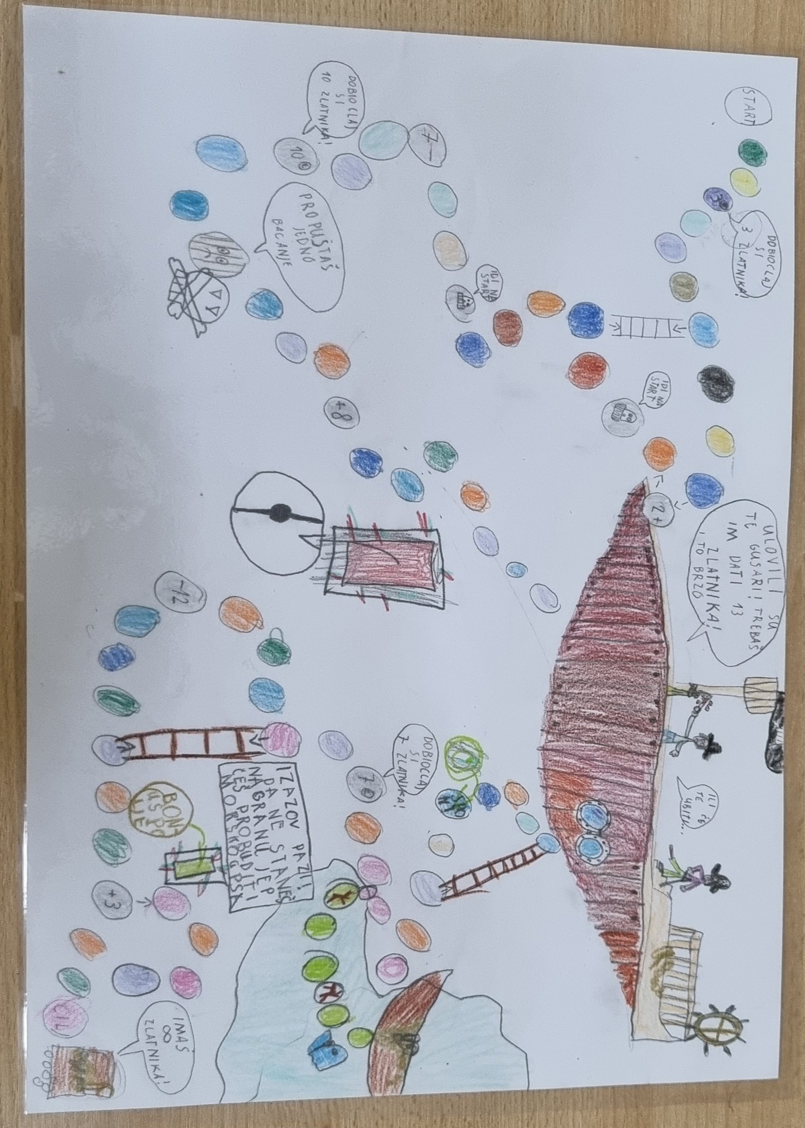 Budući da se u boravku u slobodno vrijeme volimo igrati društvenim igrama, odlučili smo izraditi vlastite. Mašte i kreativnosti nam nije nedostajalo tako su se tu našle teme s gusarima, vitezovima, princezama, minecraf i dr. Trebalo je naravno izmisliti pravila i igre su mogle početi!