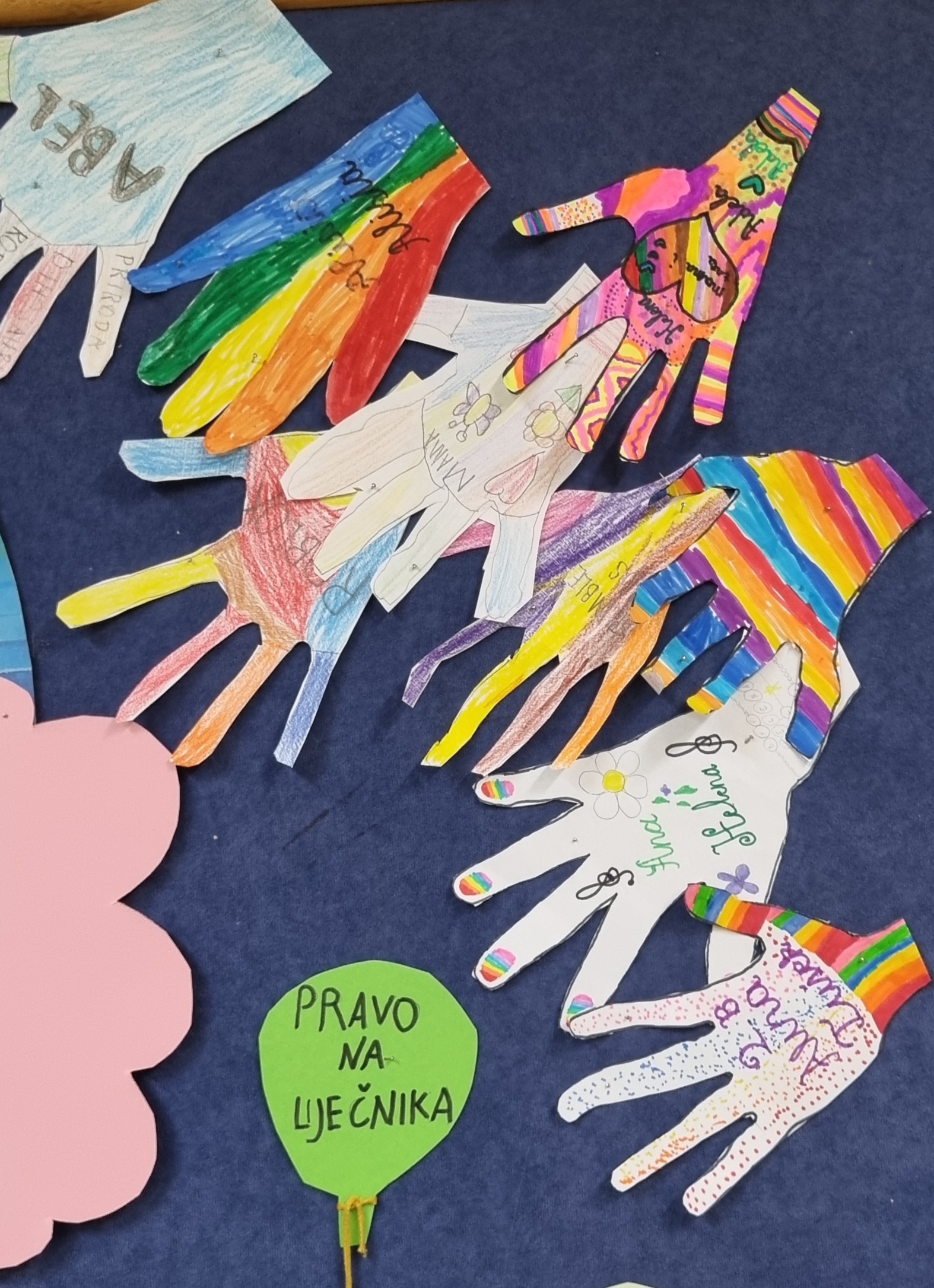 U dječjem tjednu obilježili smo Međunarodni dan dječjih prava motivirani crtanim filmom „ Prava djece s Ruby i Jackom“. Osim razgovora i igre „Kotač dječjih prava“ uredili smo i razredni pano.
