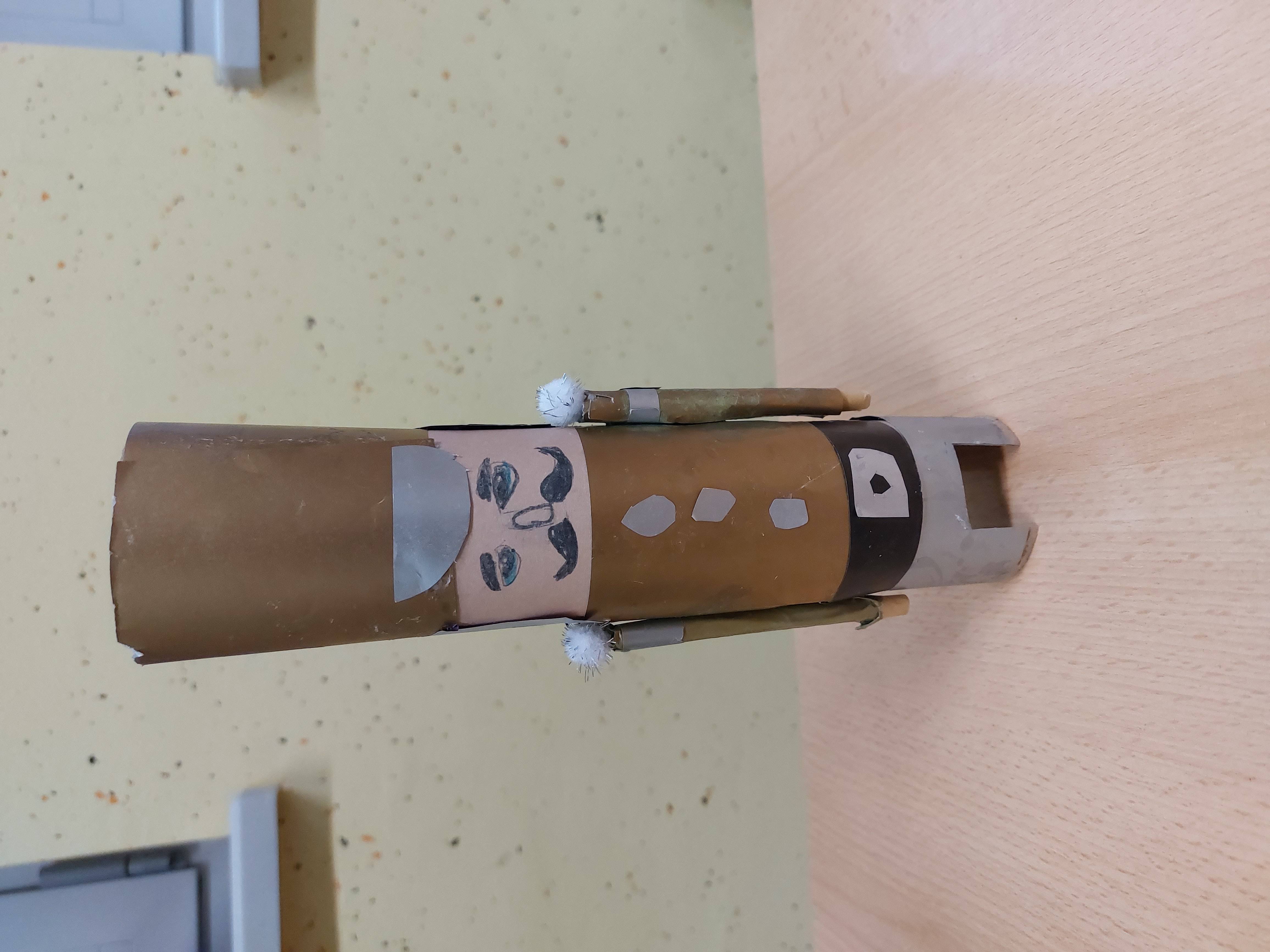 Materijal i pribor: rolice od papirnatih ručnika, kolaž papir, crni flomaster i ostali ukrasi
