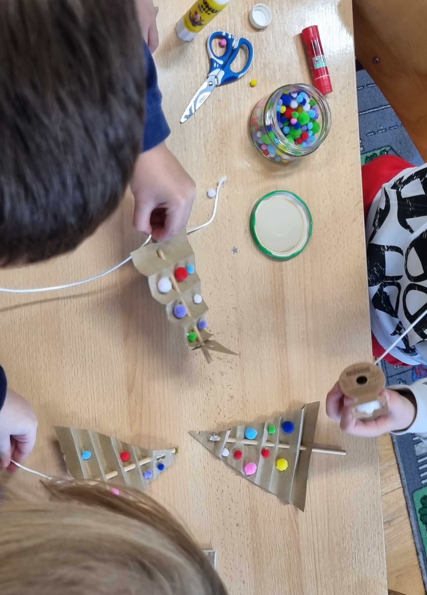 Likovna radionica: Borić (papir, slamka, zvjezdice, pomponi u boji, vrpca)