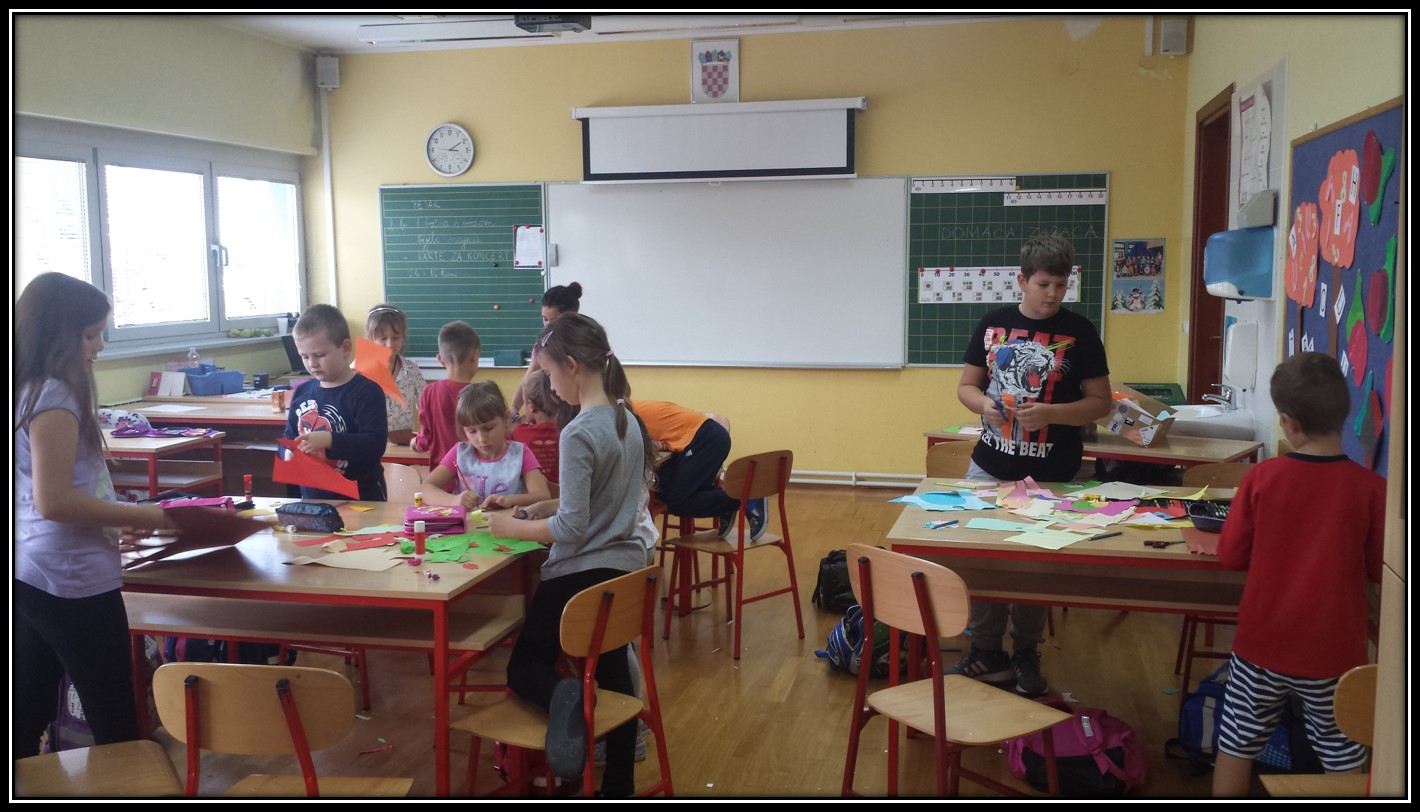 Ove školske godine grupu produženog boravka čine učenici prvih, trećih i četvrtih razreda. Novi su se prijatelji vrlo brzo upoznali pa se tako svi zajedno igraju, druže, međusobno pomažu i povjeravaju. Učenici također marljivo uče i pišu zadaće nakon čega brže bolje, kada im vrijeme dopusti, jure na školsko dvorište i igralište. Kada pada kiša igraju se i natječu u školskoj dvorani ili učionici, ali se i jako trude radeći sve i svašta u grupnim radionicama. U mjesecu rujnu izradili su sove od kolaža, jesenski mozaik, jesensko stablo, obilježili su Svjetski dan prašuma i mora, zaželjeli dobrodošlicu jeseni, uživali gledajući crtane filmove i čitajući dječje knjige, časopise i enciklopedije, igrali društvene igre te se družili i zabavljali na školskom dvorištu i u školskoj dvorani. Kako je sve to izgledalo pogledajte u galeriji.