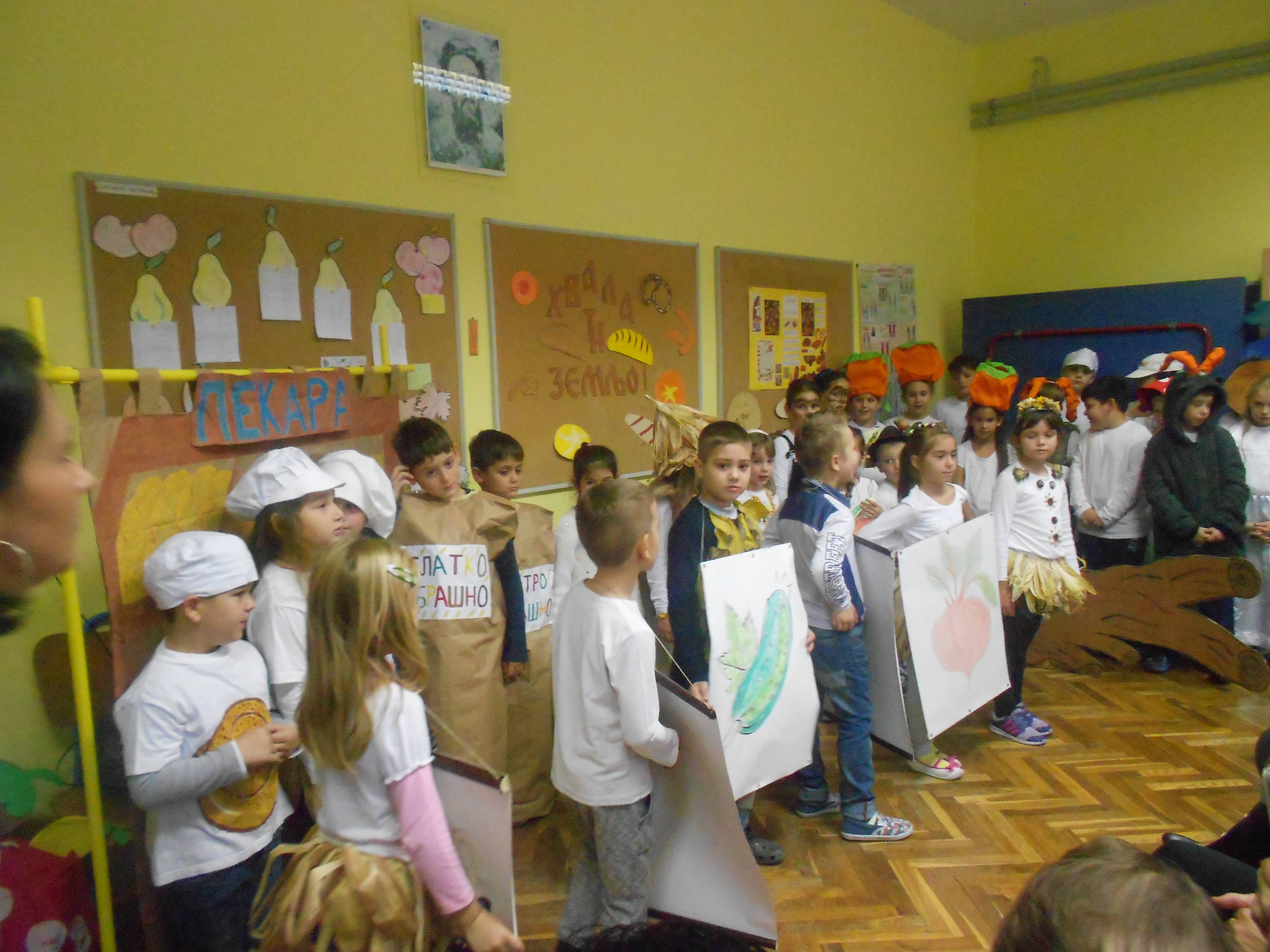 Svake godine jedan dan posvetimo plodovima zemlje srećni što u njima uživamo. Ova proslava bila je lepa i svečana. Toga jutra se školom širio neodoljivi miris peciva koja su s mnogo ljubavi ispekle naše majke i bake. Učiteljice i učenici nižih razreda pripremili su priredbu kojom su ulepšali ovaj svečani dan, a učenici viših razreda učestvovali su u radionicama osmišljenim na temu hleba, jeseni i njenih plodova. Posle smo se svi počastili pasuljem i izloženim pekarskim proizvodima.