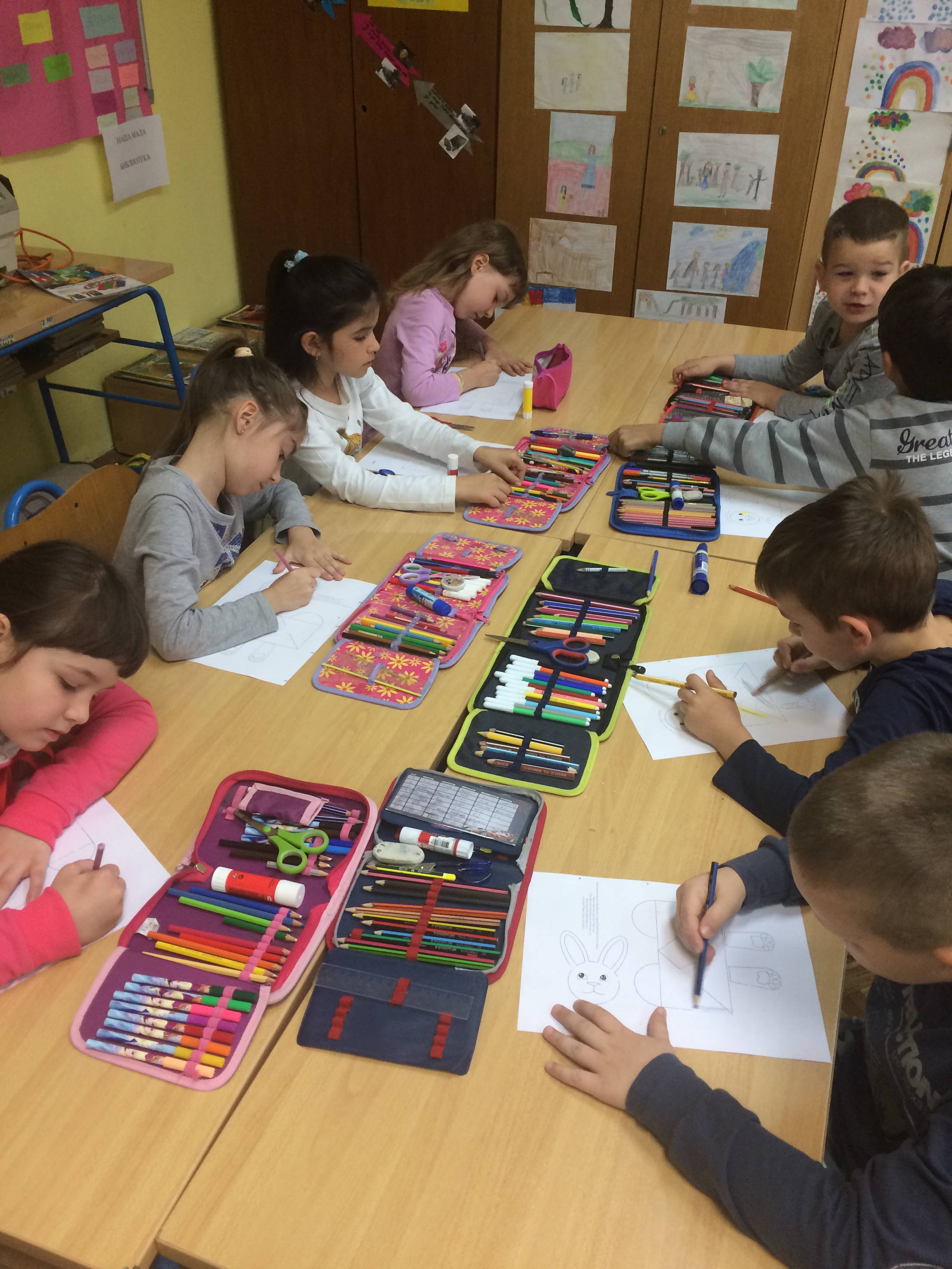 Učiteljice prvog i drugog razreda sa bibliotekarkom udružile su snage i sa učenicima održale radionicu izrađivanja obeleživača strana sa veselim vaskršnjim motivima. Vesli zeko i veslo pile krasiće dečije knjige te našim najmlađim učenicima pomoći da u svakom času nastave da čitaju tamo gde su stali.