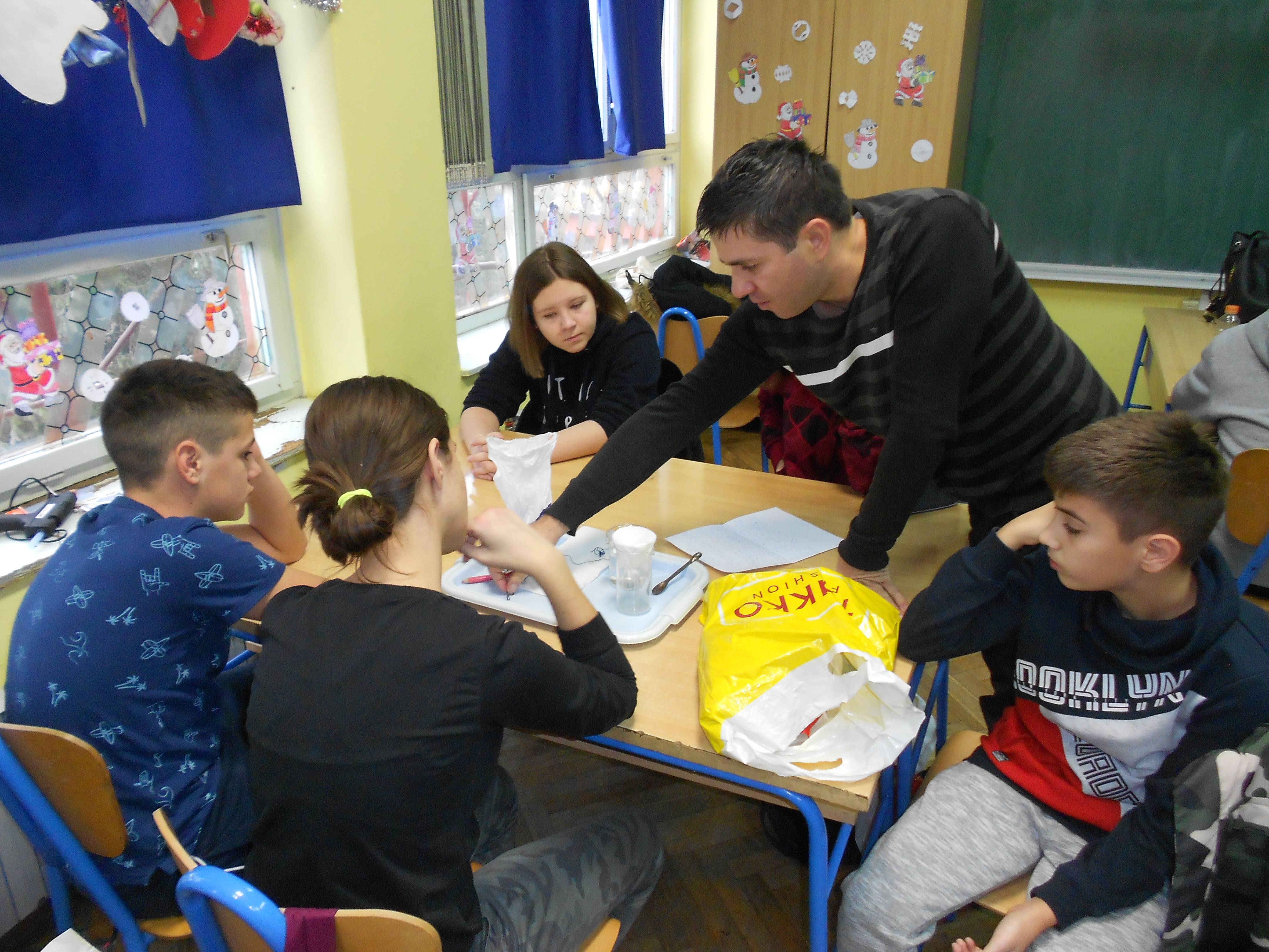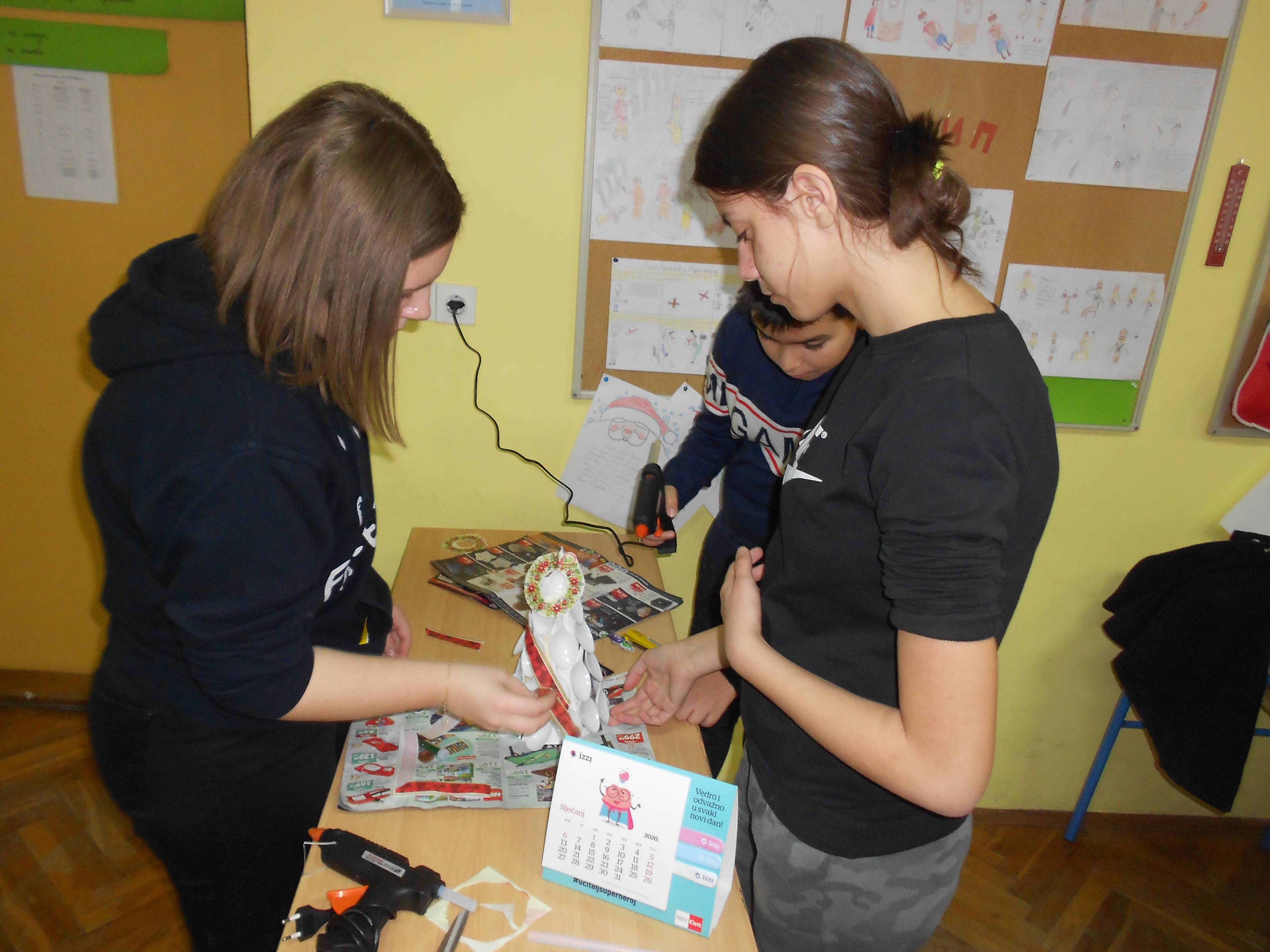 Učenici predmetne nastave bili su podeljeni u dve grupe. Učenici 5. i 6. razreda su sa svojim nastavnicima bojali folije i teglice zimskim motivima, izrađivali ramove za slike sa božićnim motivima te ukrašavali kugle od stiropora tako što su ih bojali akrilnim bojama i dekupaž tehnikom. Na kraju su sve začinili pisanjem božićnih čestitki i plesom. Učenici 7. i 8. razreda bili su podeljeni u 3 grupe tako da svi učenici prođu kroz sve 3 grupe. U prvoj grupi su pravili eksperiment kristalizaciju, u drugoj su pomoću micro:bitova pravili lampice te od plastičnih kašika jelku. U trećoj su grupi pravili ukrase za jelku. Jedne su ukrase izrađivali od kugli stiropora dekupaž tehnikom, a druge su oblike, prethodno izrađene od smese gustina, sode bikarbone i vode, bojali akrilnim bojama i temperama.
