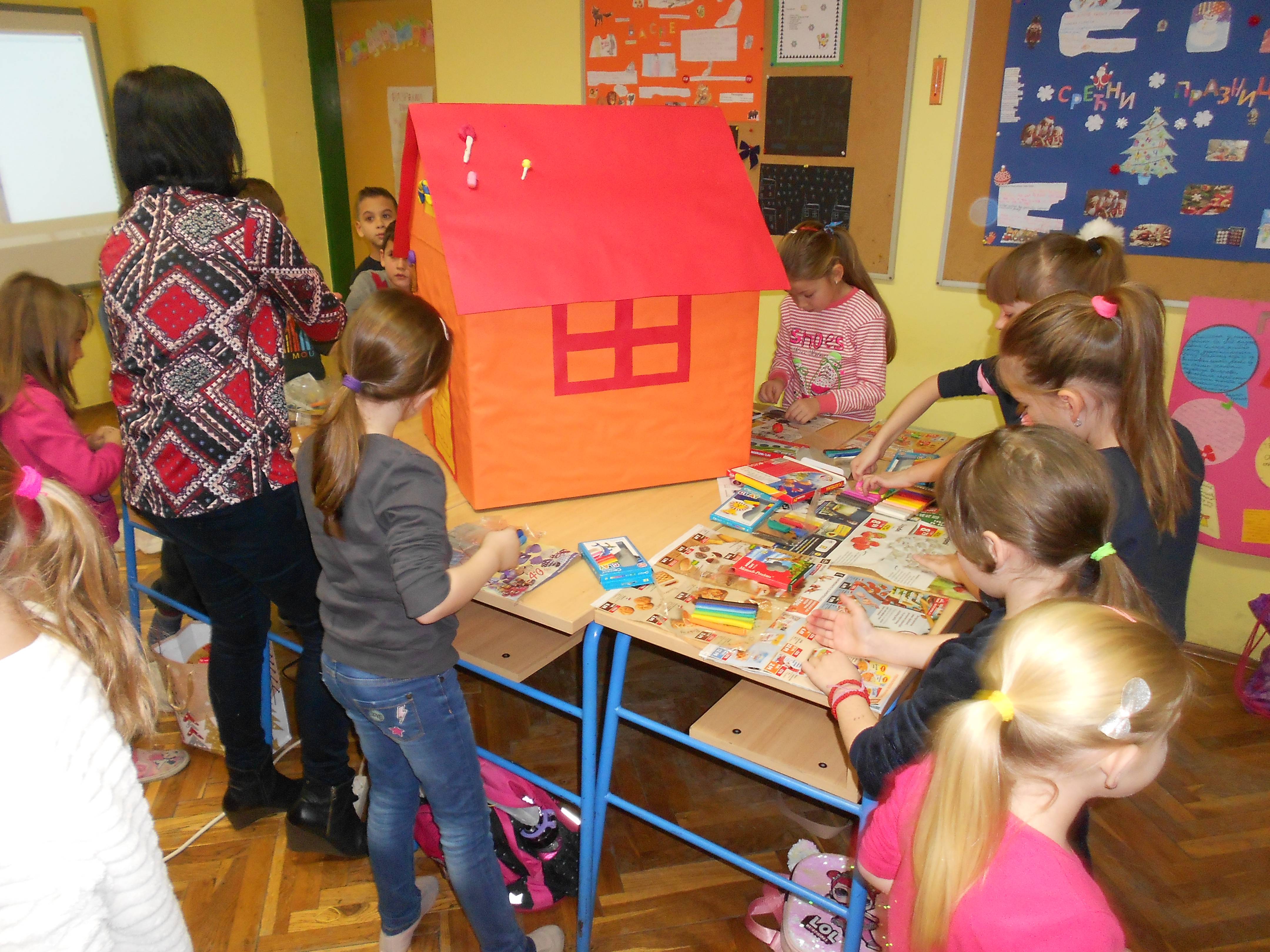 Svi učenici razredne nastave bili su u jednoj radionici. Učenici su nakon odslušanog dela audio-bajke Ivica i Marica ukrašavali veštičju kuću koju su učiteljice izradile kod kuće od kartonskih kutija. Sa slušanjem su stali kada su Ivica i Marica došli do neobične kućice u šumi. Zadatak je bio da svaki razred ukrasi svoje kućice slatkišima izrađenim od plastelina. Kada su kućice bile gotove, bajku su završili stvaralačkim prepričavanjem te su tako dodavali nove likove u bajku pa je bajka dobila sasvim drukčiji tok radnje. Naravno, srećan po Ivicu i Maricu. U drugom delu radionice učenici su pravili Sneška Belića od najlon kesa, novina i kolaža, a sve svoje radove izložili su u holu škole.