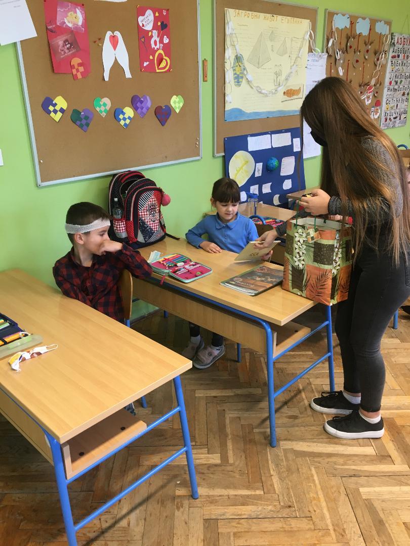 sakupila slikovnice za naše najmlađe učenike koji tek kreću u svet čitanja. Učenike 1. razreda posetila je bibliotekarka sa učenicom 6. razreda Nikolinom Krsmanović. Nikolina je svakom učeniku uručila slikovnicu, a zatim učenicima pročitala poruke koje su se nalazile u svakoj knjizi.