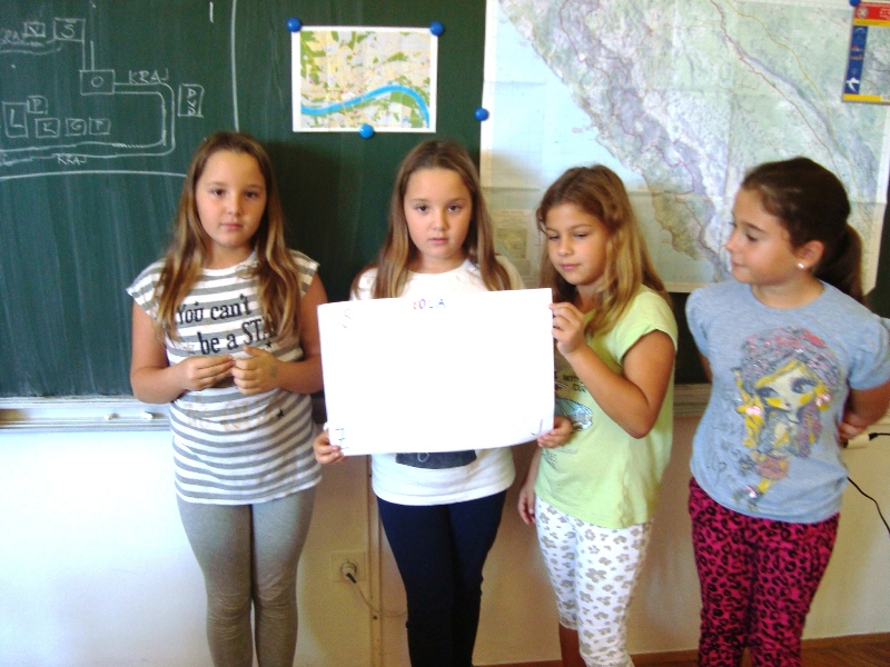 Što se tiče matematike, bilo je malo problema oko pisanja, ali snašli smo se ! Skupa smo sastavljali zadatke, a svi su bili na temu naše okoline ( ribe, kamenčići, gosti, hoteli… ) pa je i pismeno množenje izgledalo puno lakše, nego u razredu. Na kraju smo se i počastili i to graničarima na neobičnom terenu, ispred lučice!